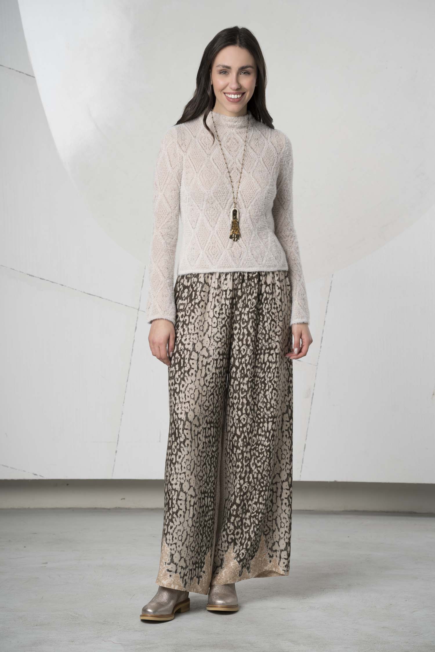 Diese stilvolle Freizeithose besticht durch ihren locker sitzenden Schnitt und das weite Bein, das für Bewegungsfreiheit und Komfort sorgt. Die angesagte Leopardenoptik verleiht jedem Look eine modische Note, während das angenehme Material hohen Tragekomfort garantiert. Ideal für entspannte Tage mit einem Hauch von Eleganz.