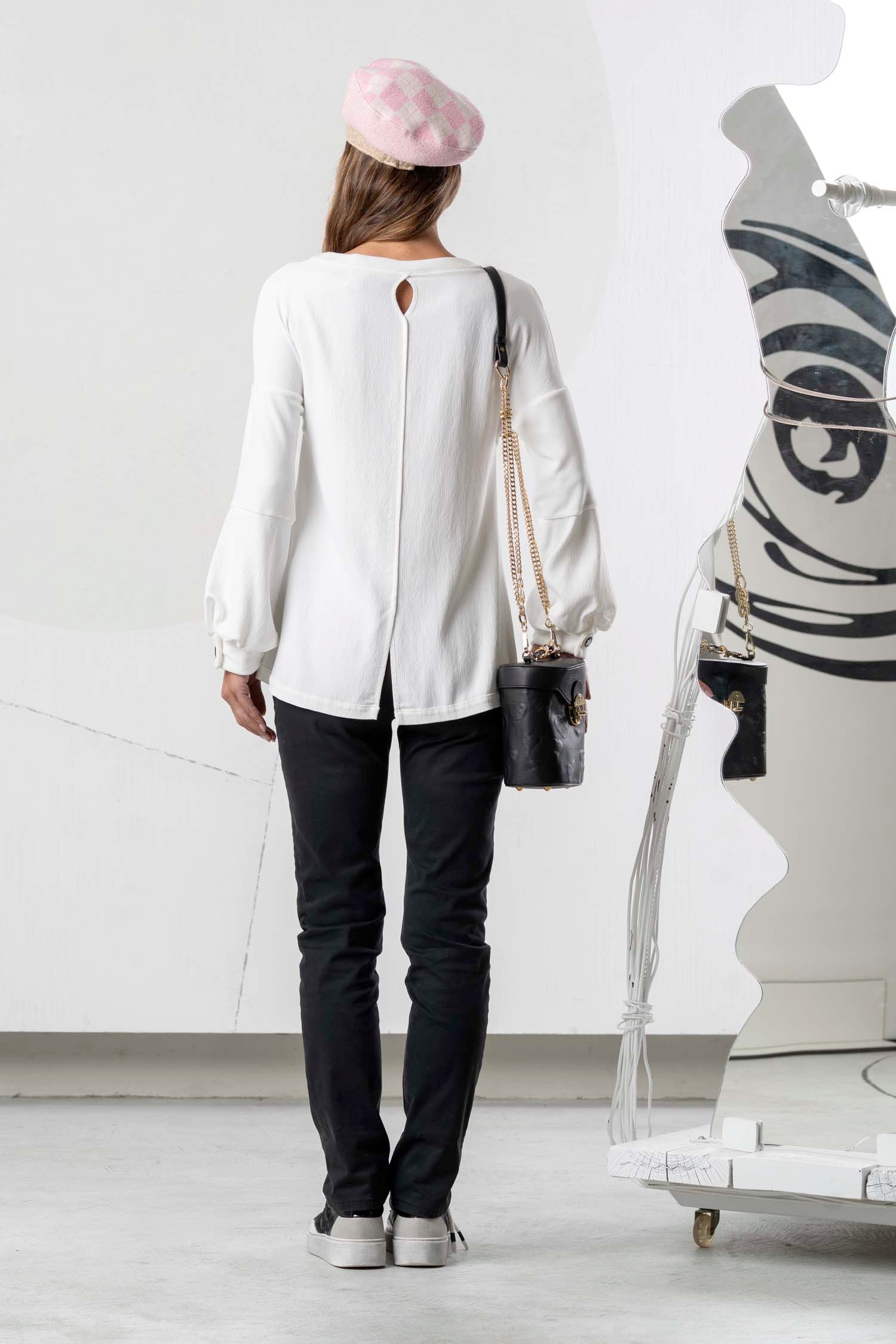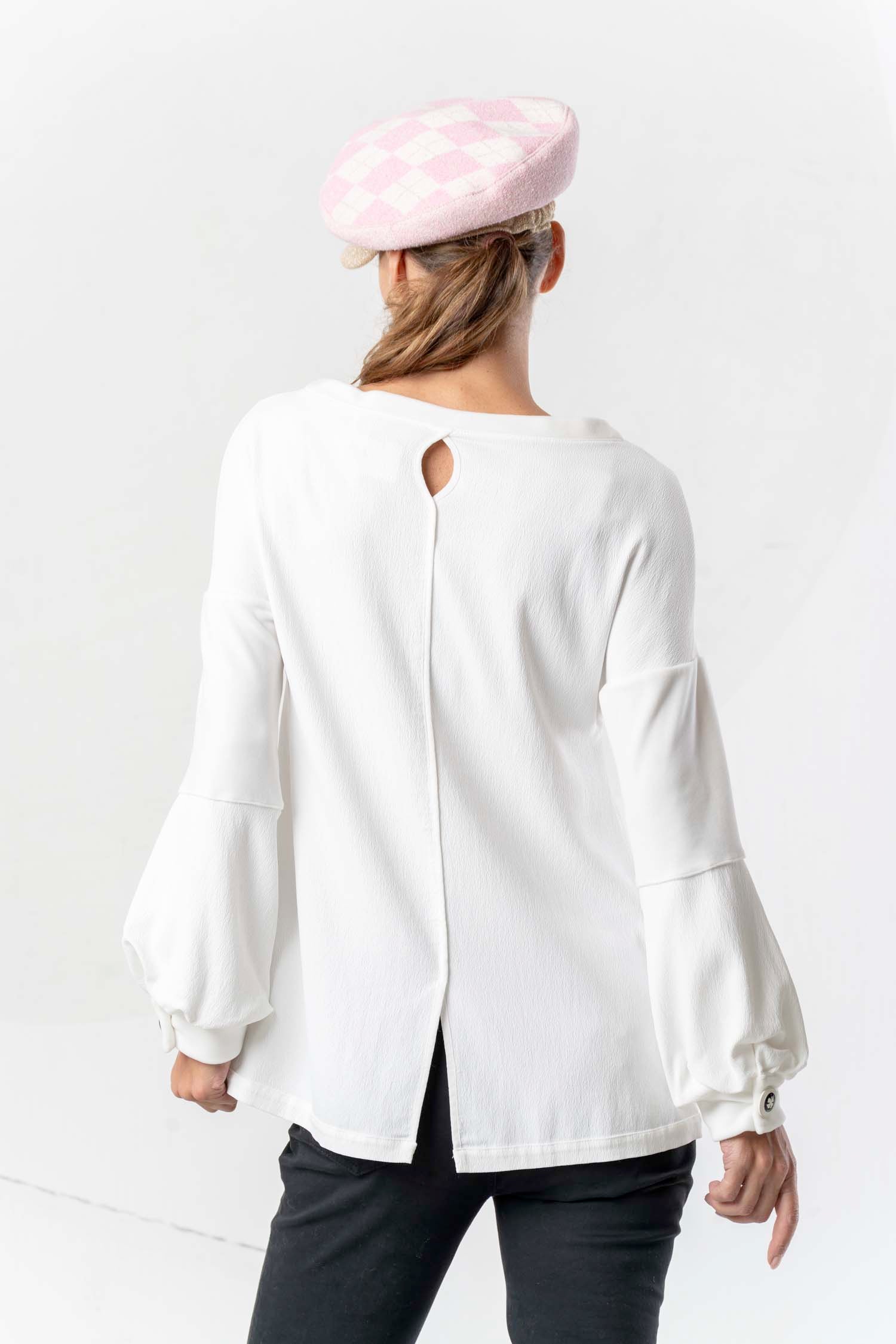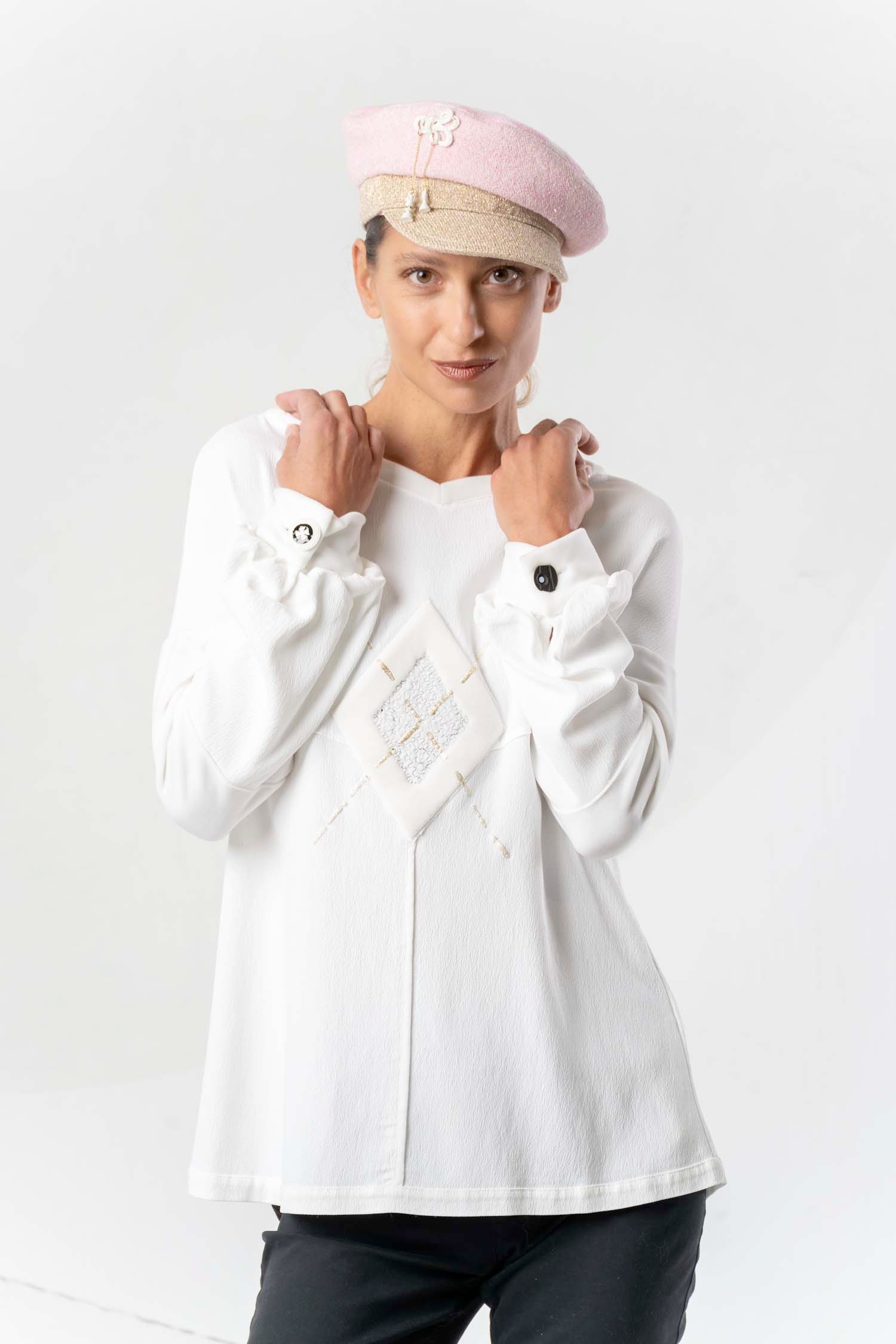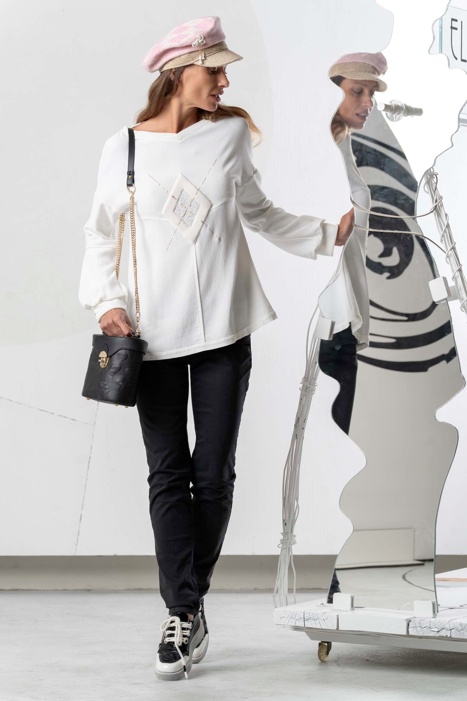 Diese elegante weiße/schwarze Bluse besticht durch raffinierte Stickereien und verleiht jedem Outfit eine stilvolle Note. Die vielfältigen Knopfdetails ermöglichen flexible Styling-Optionen – ob klassisch geschlossen oder lässig offen getragen. Das hochwertige Material schmiegt sich angenehm an und bietet den perfekten Mix aus Komfort und Eleganz. Ein zeitloses Piece, das sich mühelos von der Arbeit bis zum Dinner kombinieren lässt und Ihre Garderobe sofort aufwertet.