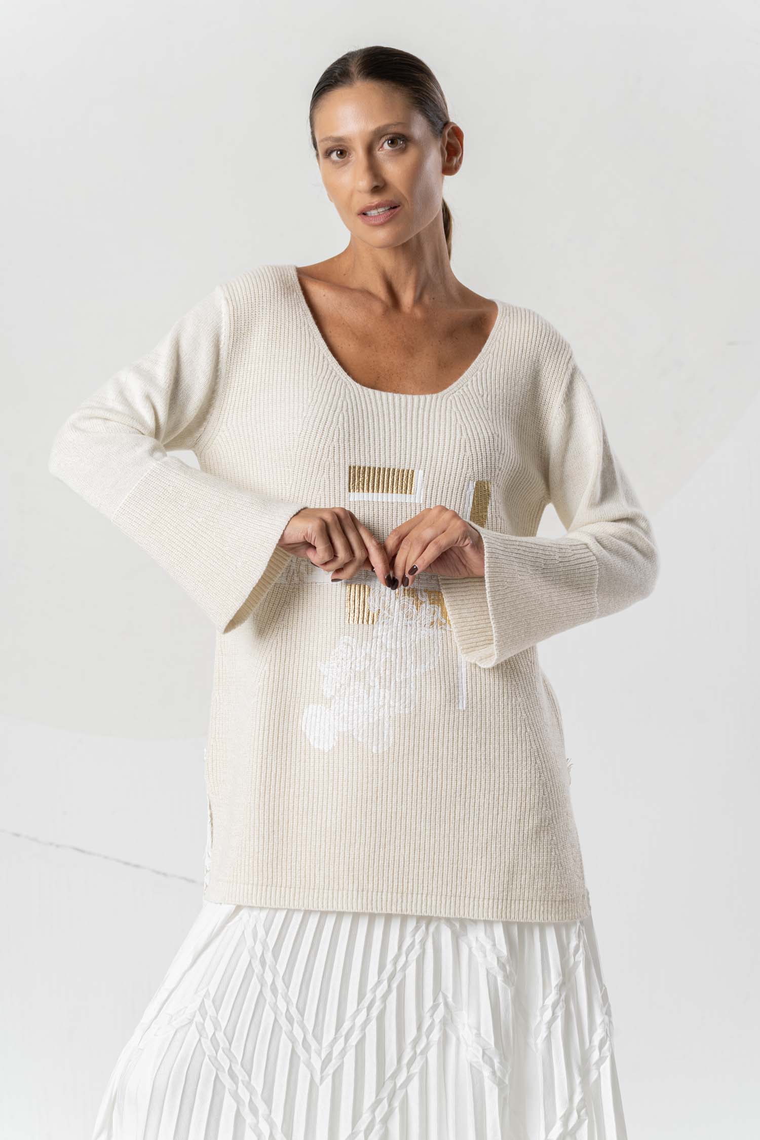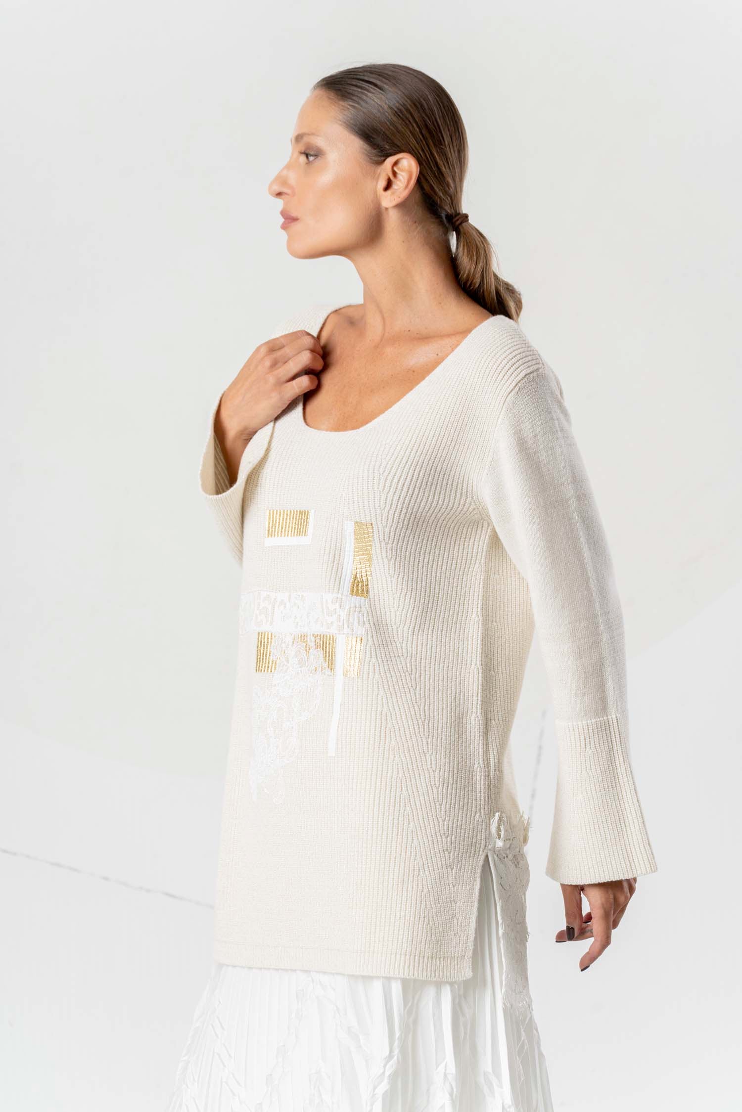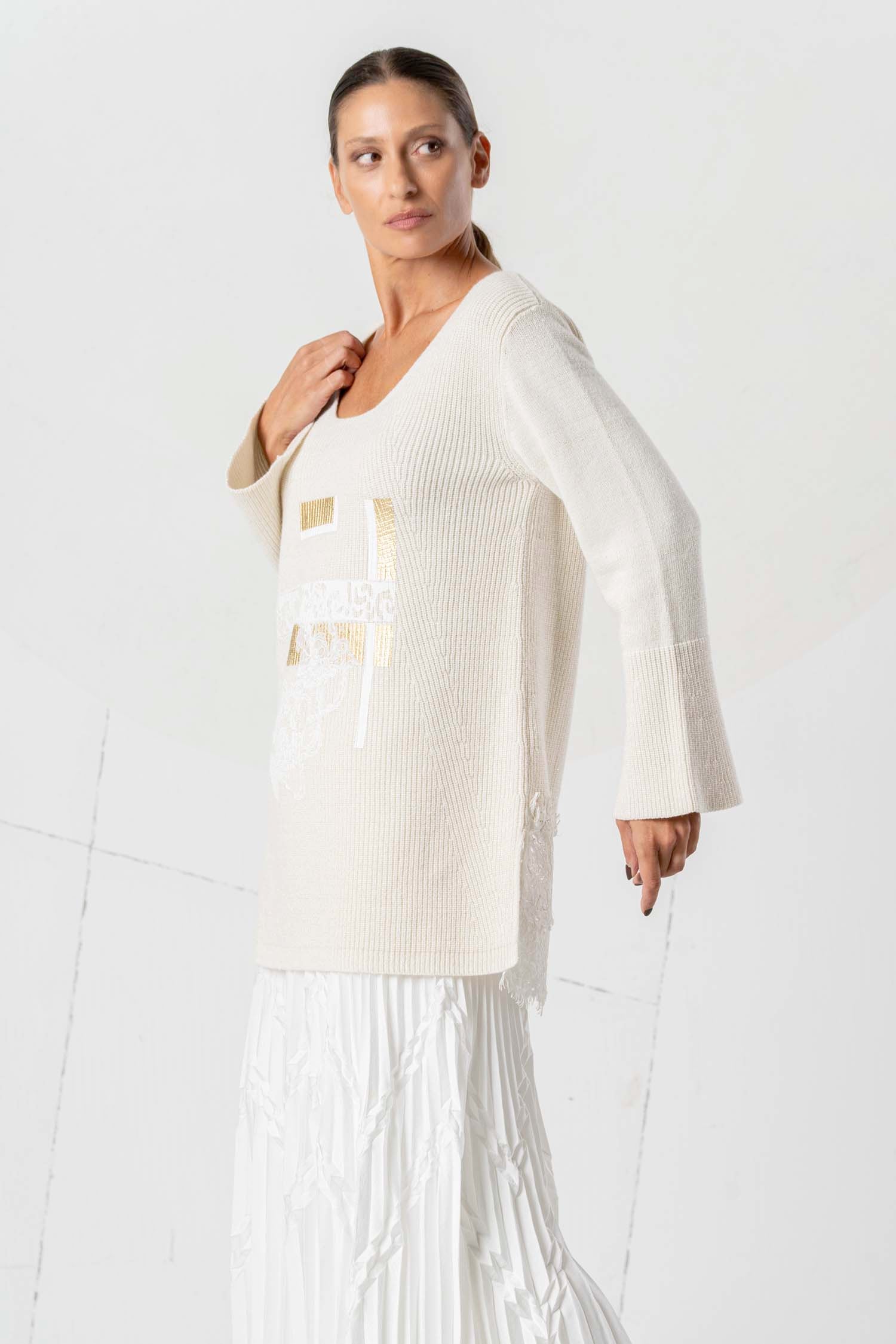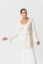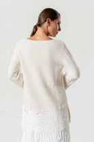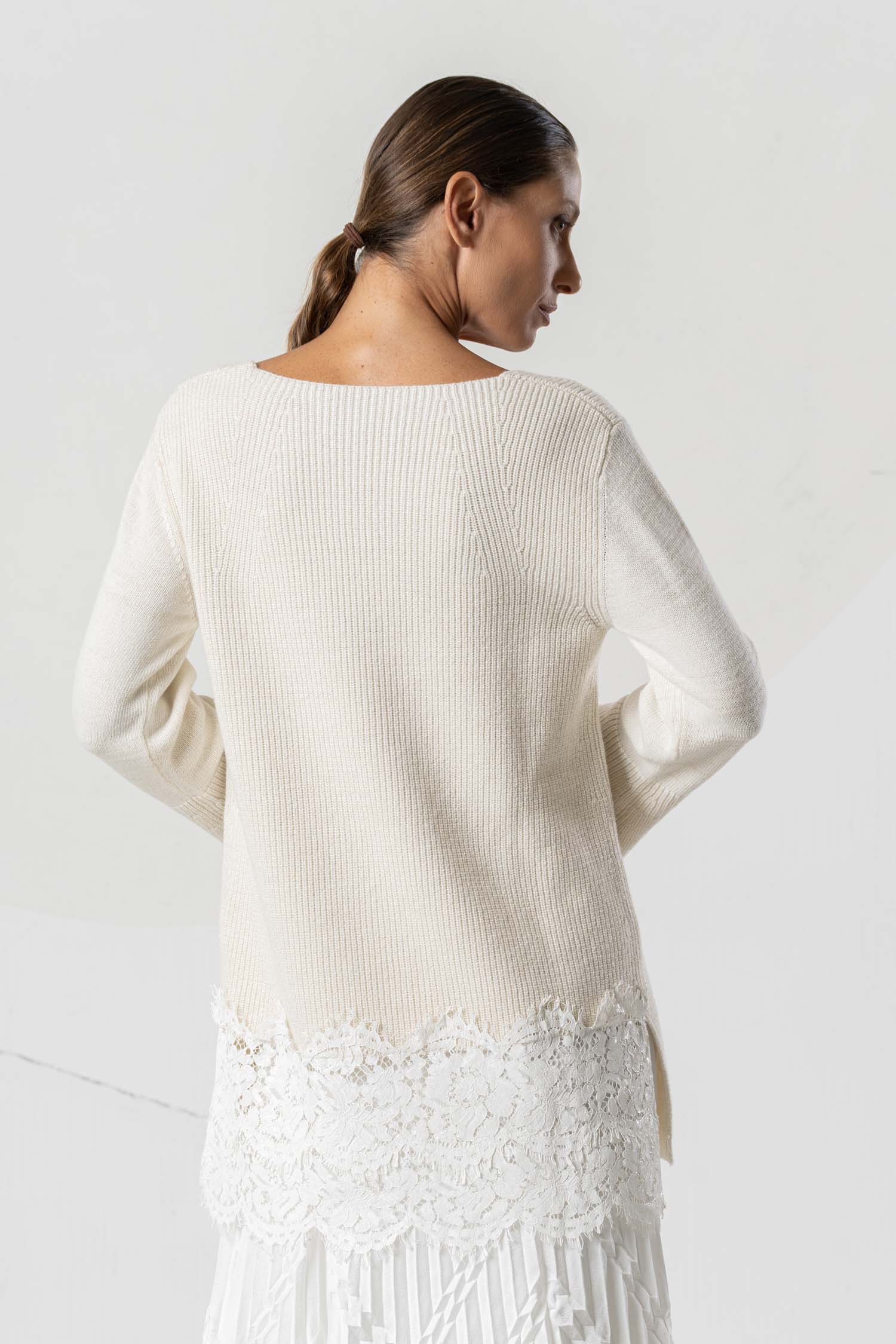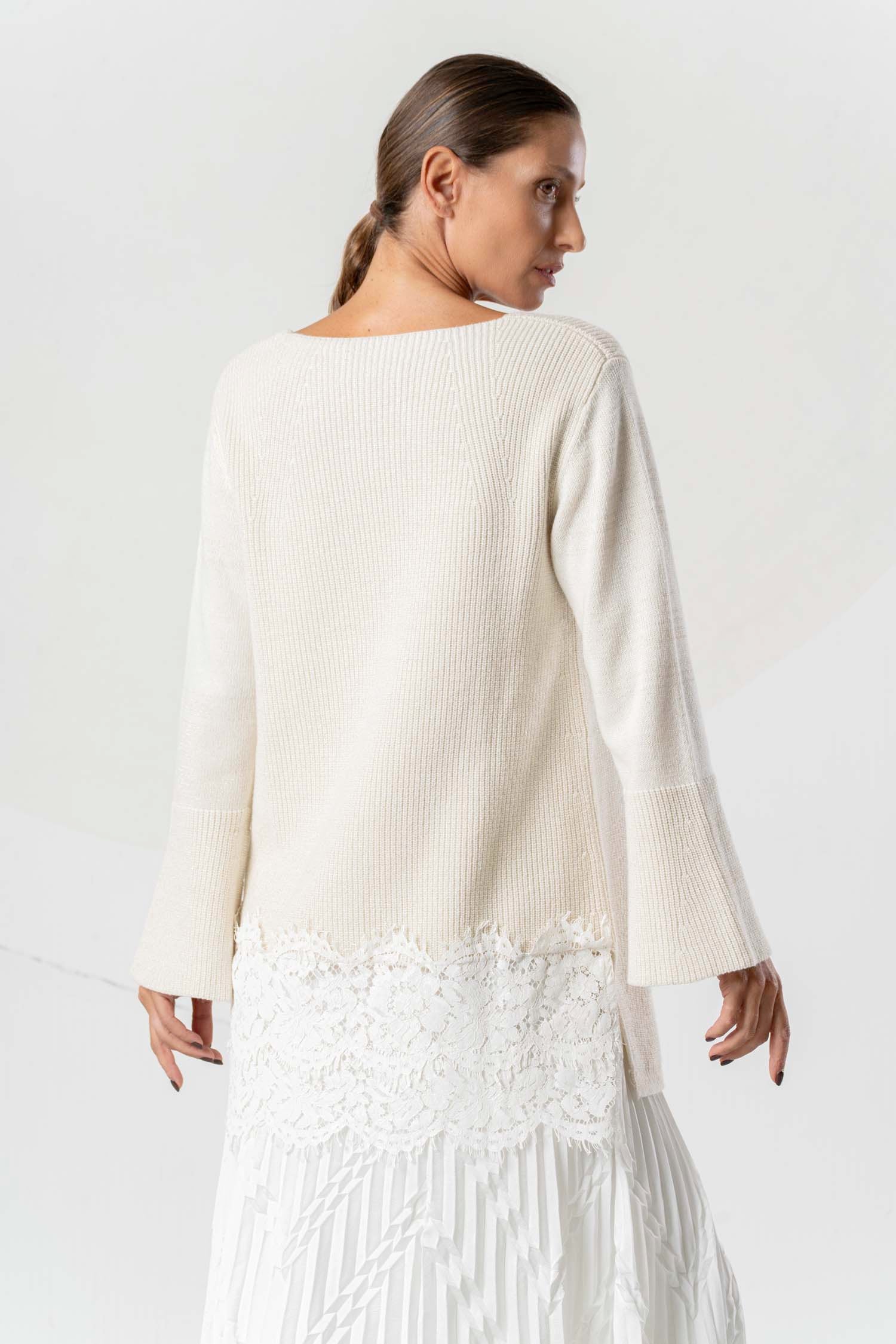 Dieser Oversize-Pullover aus hochwertiger Wolle bietet perfekten Tragekomfort und Wärme. Das zeitlose Design in den Farben Weiß und Schwarz wird durch edle Spitzendetails veredelt, die dem Kleidungsstück eine elegante Note verleihen. Ideal für stilbewusste Liebhaber moderner, gemütlicher Looks.