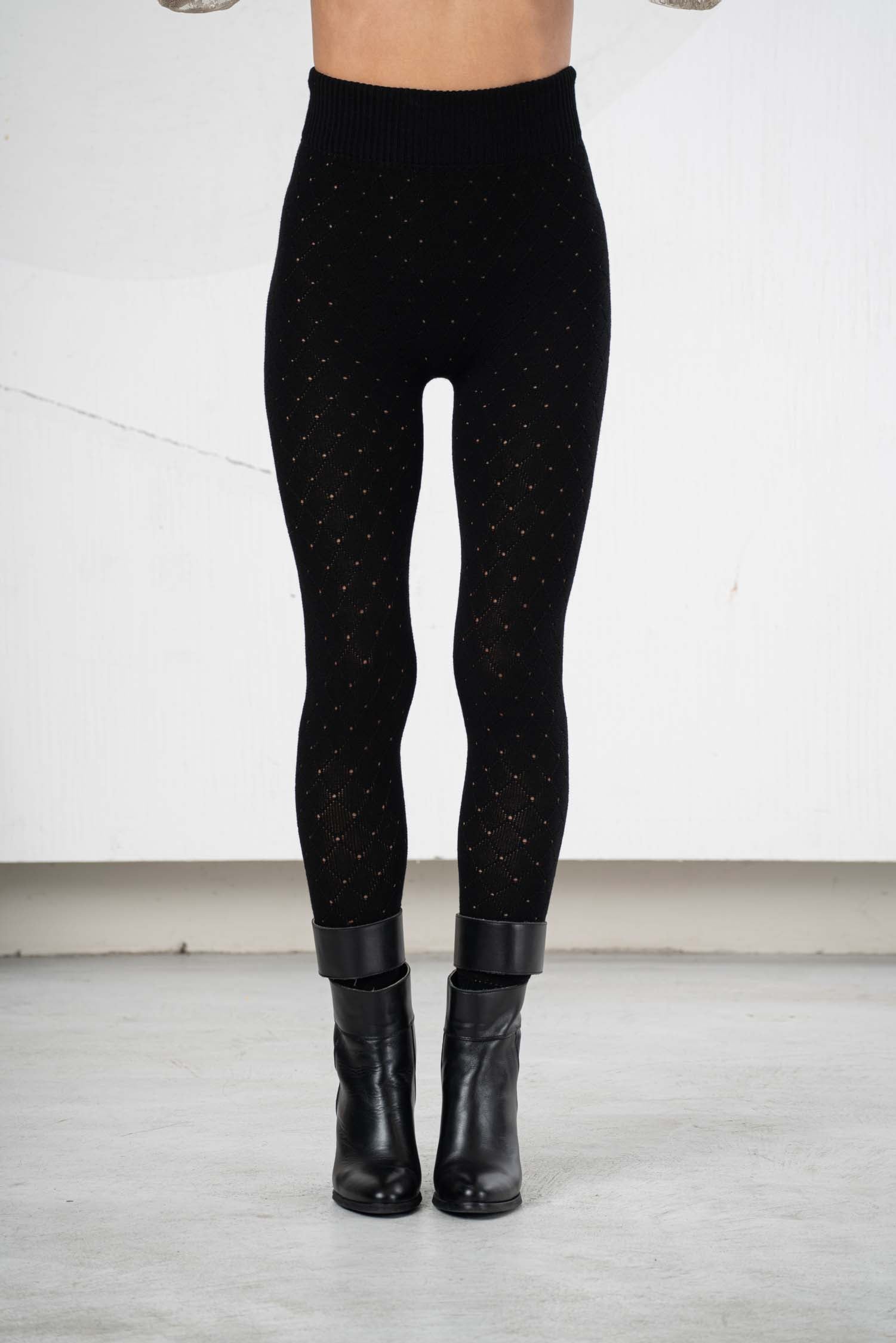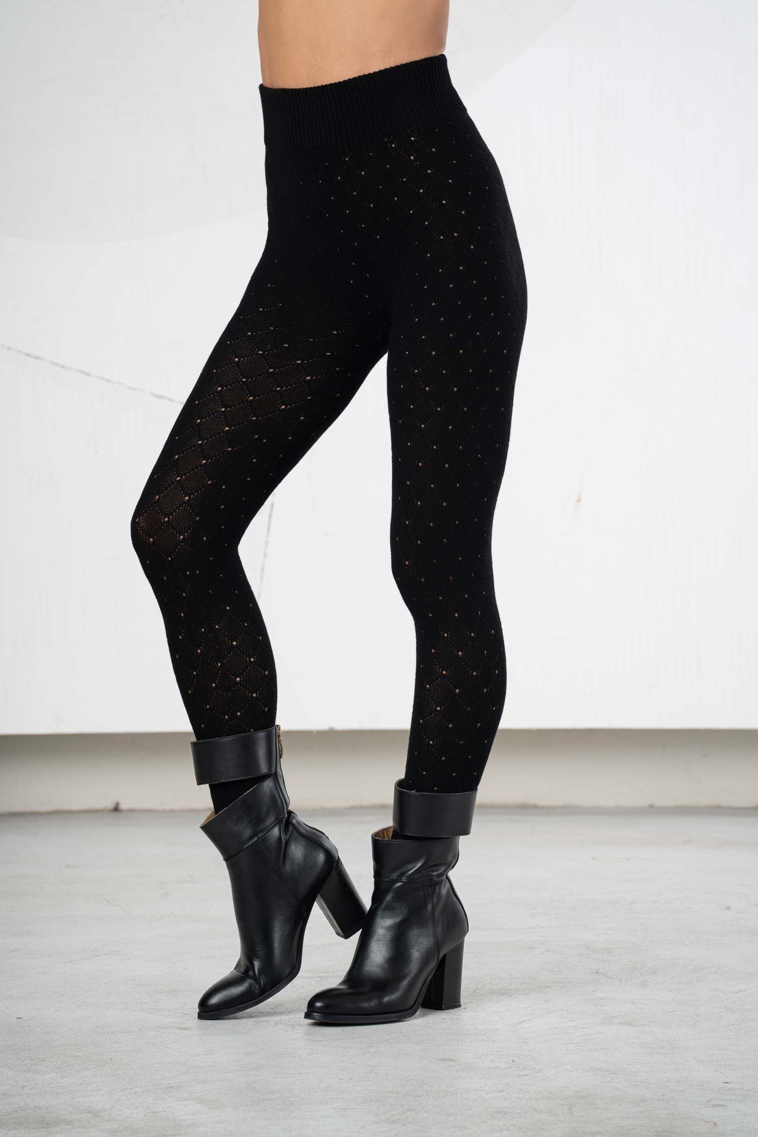 Die schwarze Strickleggings besticht durch ihr modernes Lochmuster, das einen stilvollen Akzent setzt. Ihr enger Schnitt sorgt für eine angesagte Silhouette und lässt sich vielseitig kombinieren – ideal für trendbewusste Fashionliebhaber, die zeitgemäßen Komfort schätzen. Die hochwertige Verarbeitung garantiert eine angenehme Passform und lange Haltbarkeit.