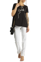 Erlebe den ultimativen Look mit dem DANIELA DALLAVALLE T-Shirt in schwarz+weiß! Die kurzen Ärmel und funkelnden Strasssteine verleihen dir einen glamourösen Touch. Wähle zwischen den Farben schwarz und weiß für deinen individuellen Style. Hol es dir jetzt und sei der Star des Tages!