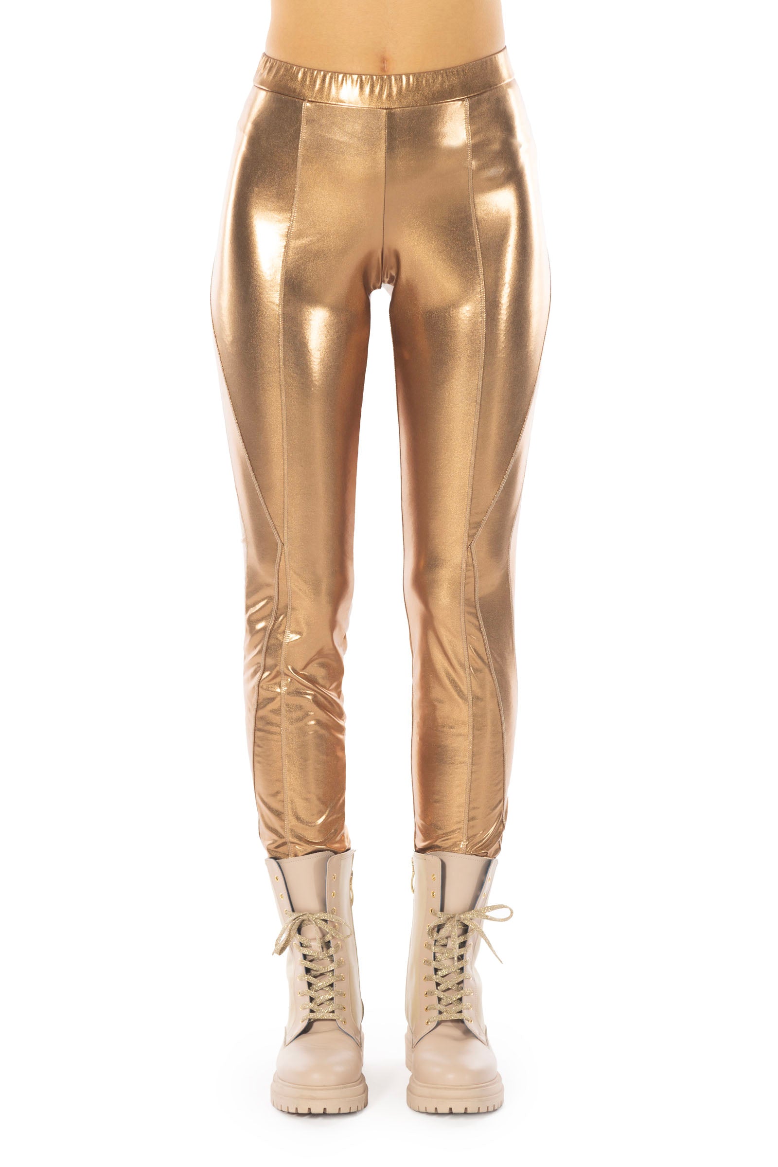 Erlebe extravagante Eleganz mit der ELISA CAVALETTI Leggings Sassofono! Ihre kupferfarbene, glänzende Oberfläche und der elastische Bund sorgen für einen unvergesslichen Look – einen echten Hingucker! Wirst du sie wagen?