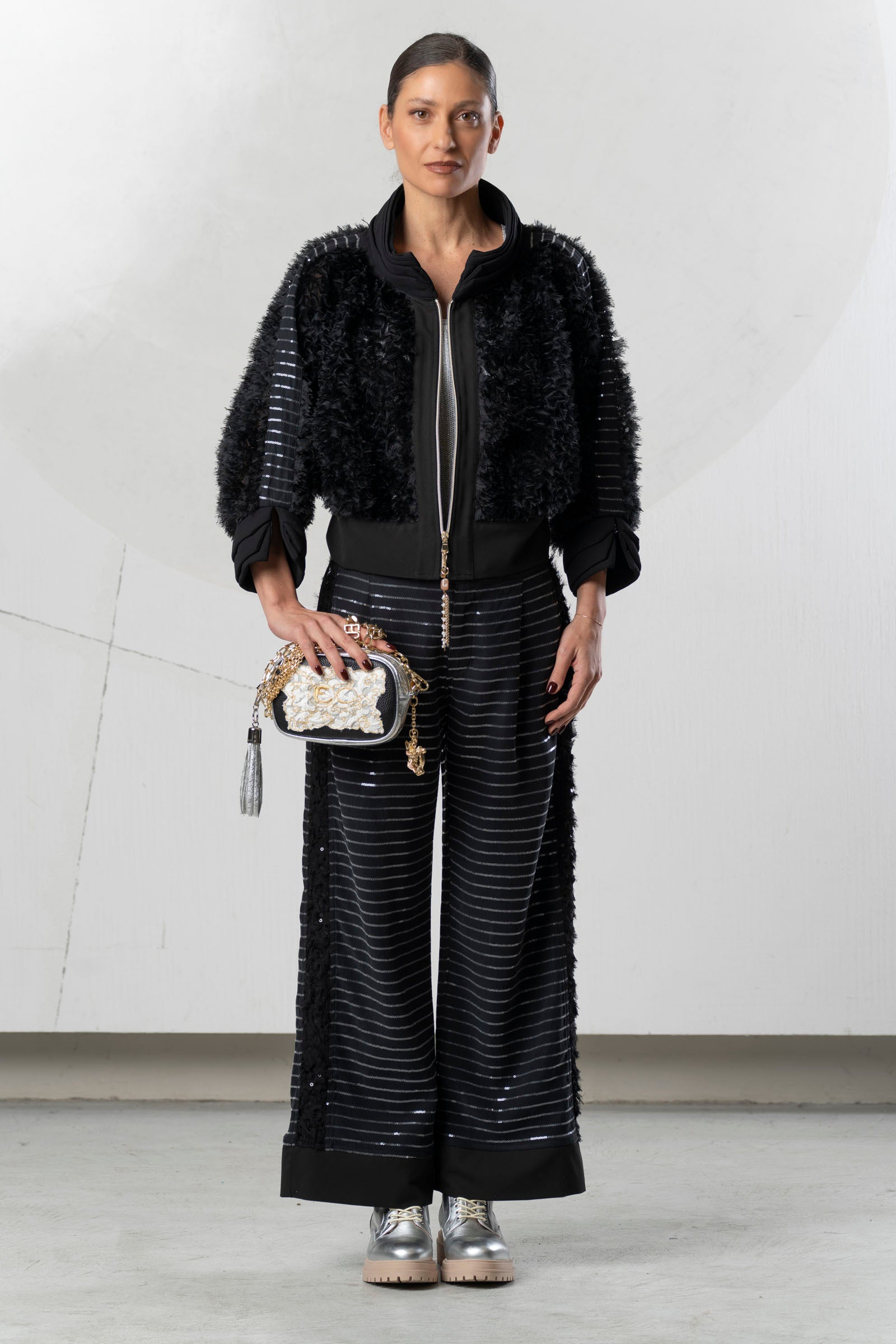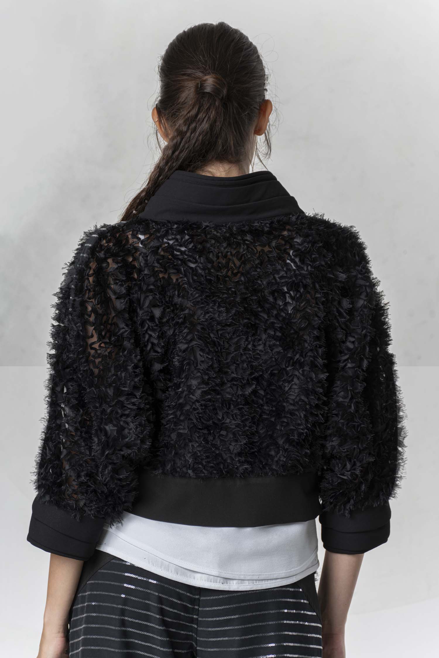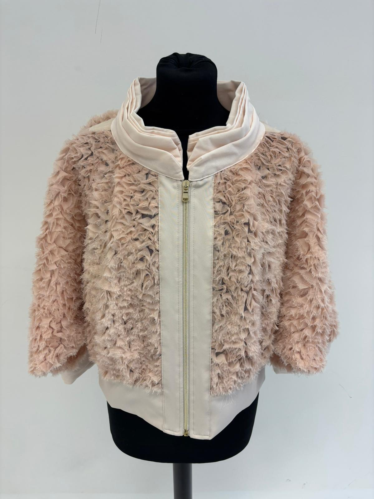 Diese stilvolle Jacke überzeugt mit einer edlen Struktur-Oberfläche und femininem Schnitt. Der durchgehende Reißverschluss und die feinen Details verleihen ihr eine elegante Note – ideal für besondere Anlässe oder als Highlight im Alltag.