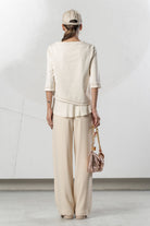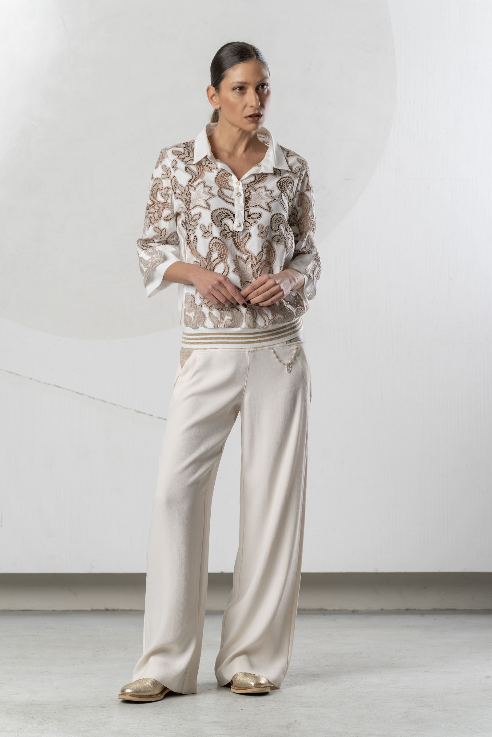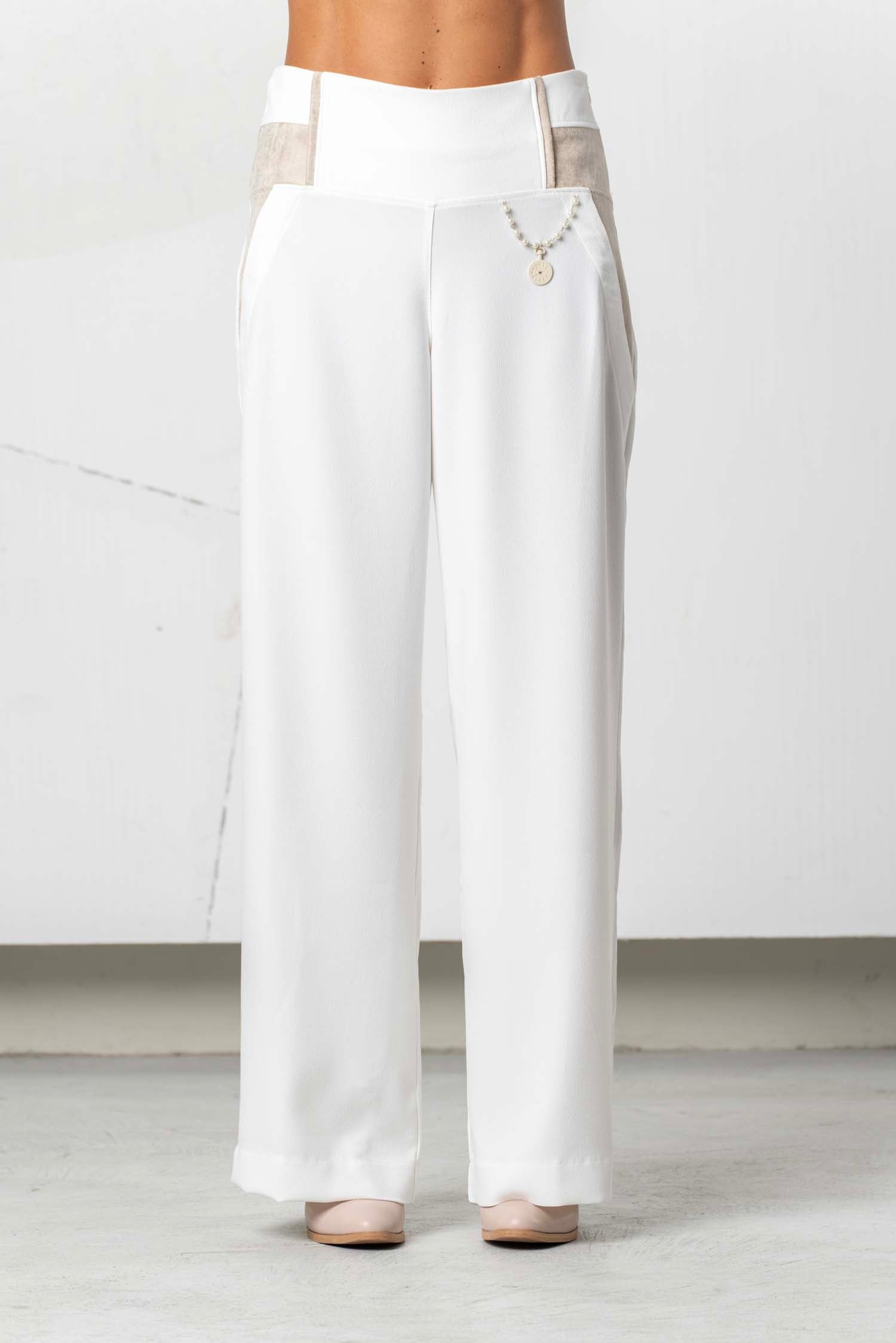 Diese fließende Hose überzeugt mit einer eleganten, weiten Silhouette und feinen dekorativen Details. Der komfortable Bund sorgt für eine angenehme Passform und hohen Tragekomfort. Vielseitig kombinierbar für stilvolle Looks – erhältlich in Weiß, Ivory, Beige und Schwarz.