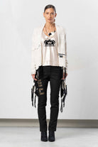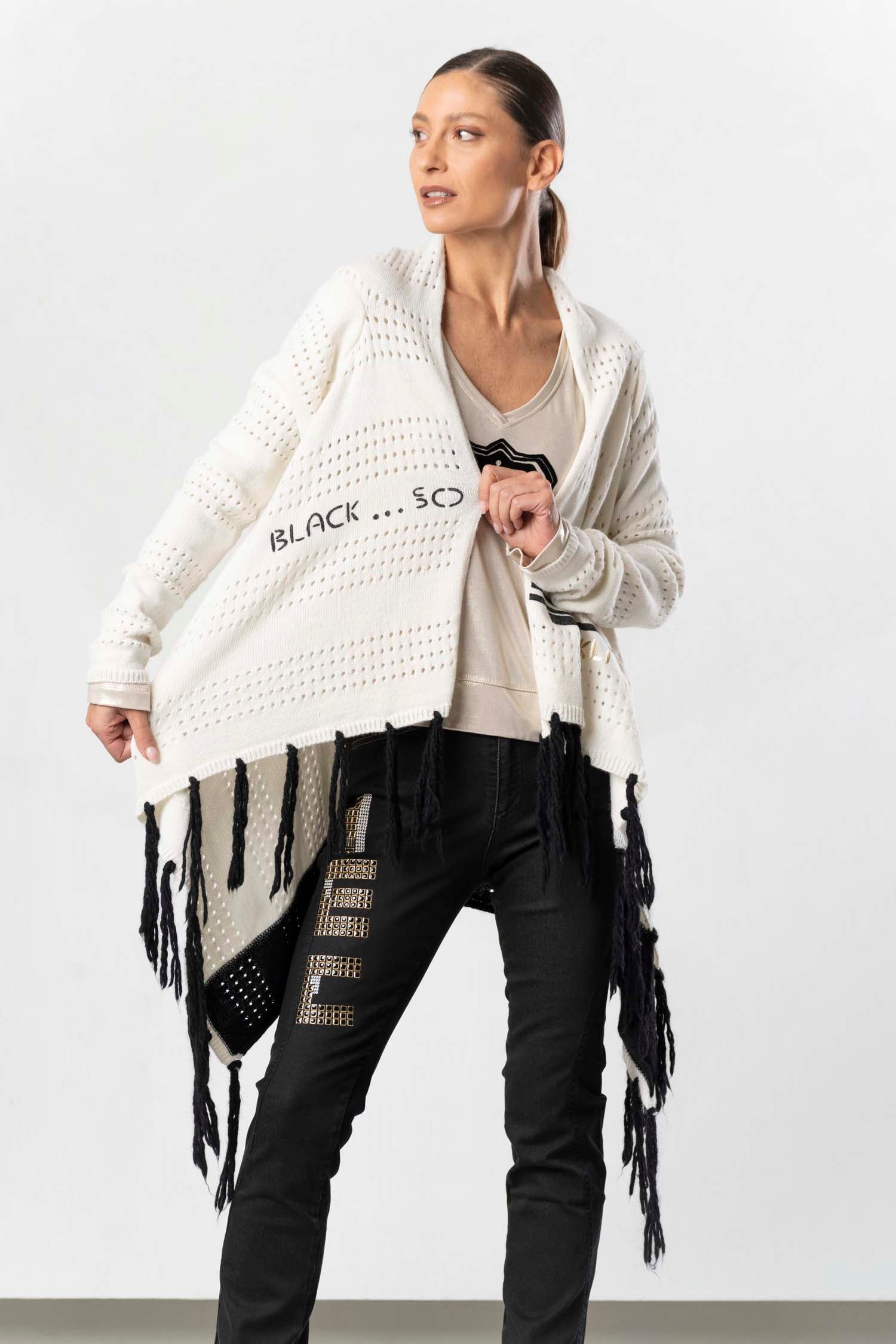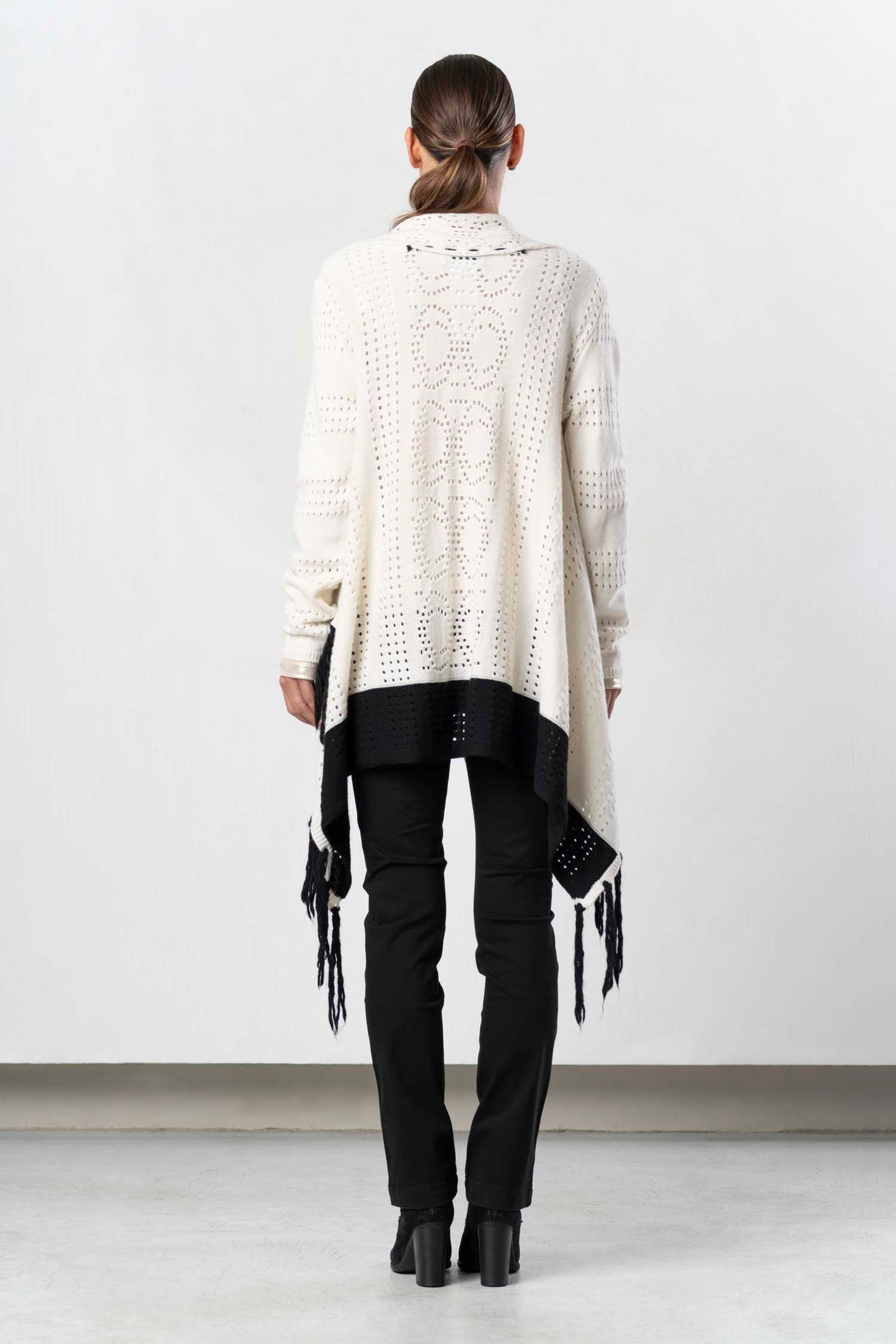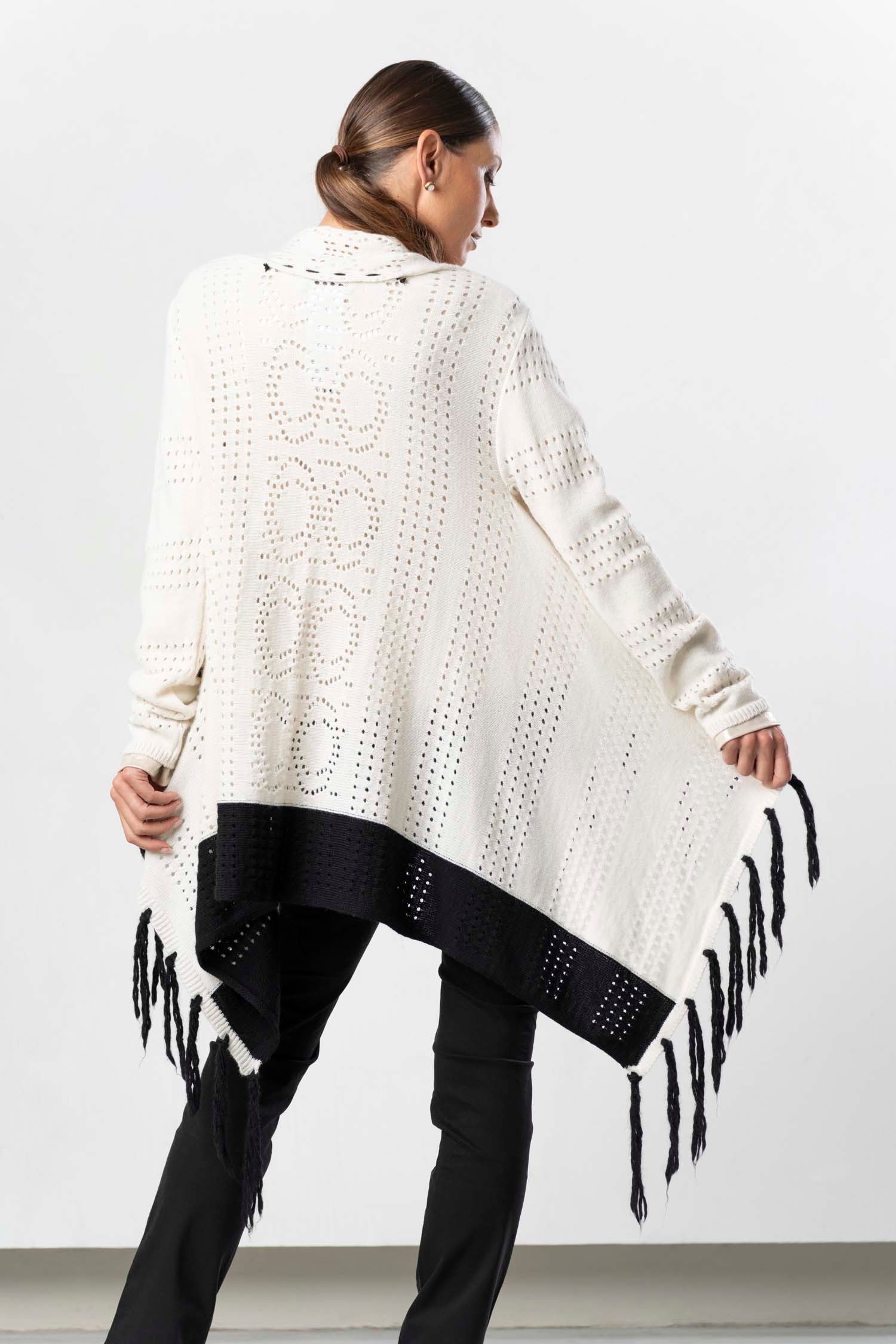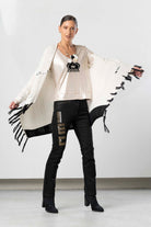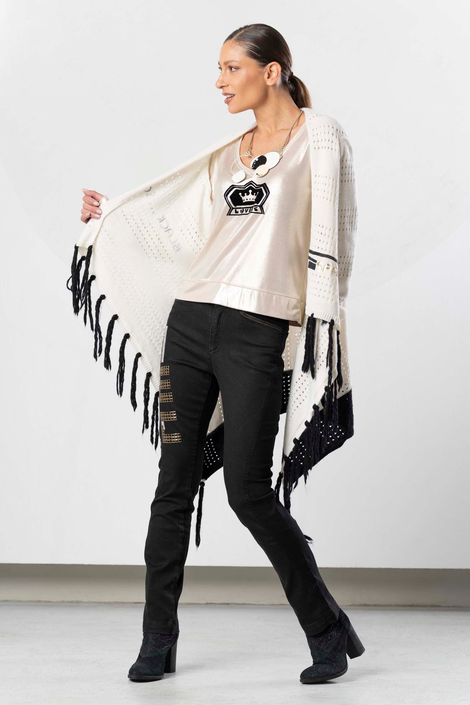 Die ELISA CAVALETTI Umhang/Poncho Incontro ist ein Must-Have für stilbewusste Fashionistas! Das cremefarbene Design wird durch schwarze Applikationen gekonnt akzentuiert und verleiht jedem Outfit eine edle Note. Perfekt für alle, die sich stilvoll von der Masse abheben wollen!