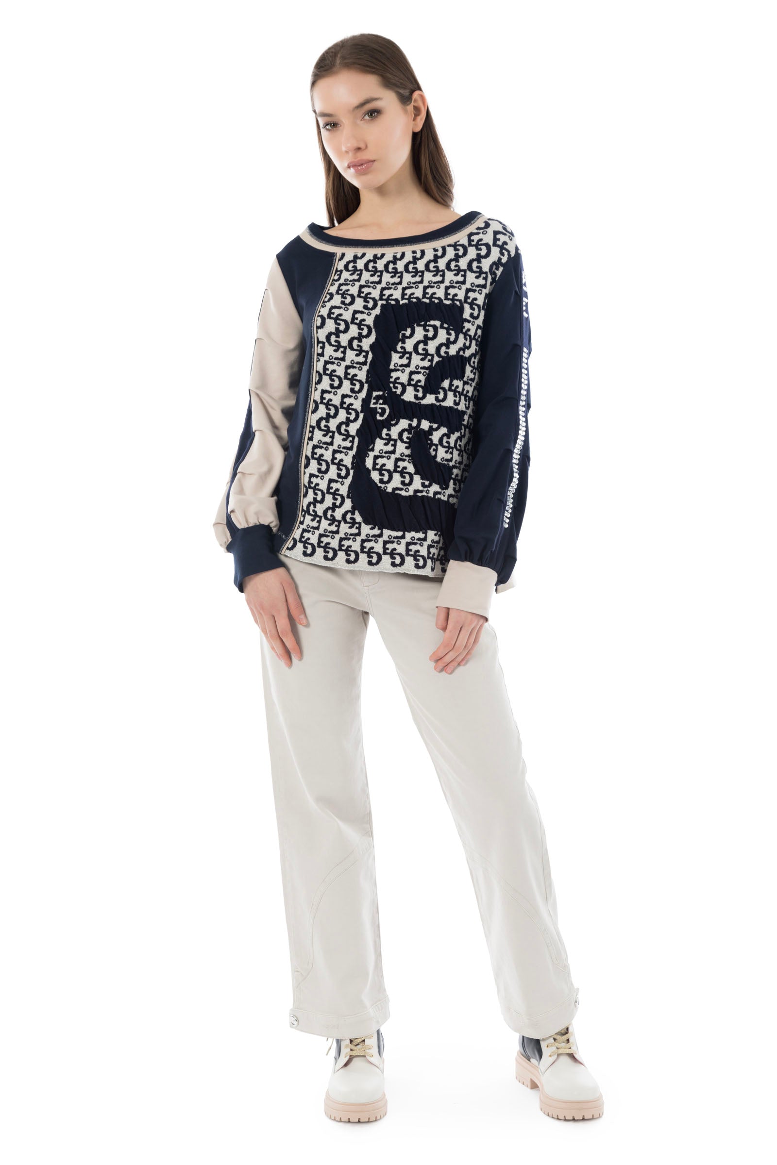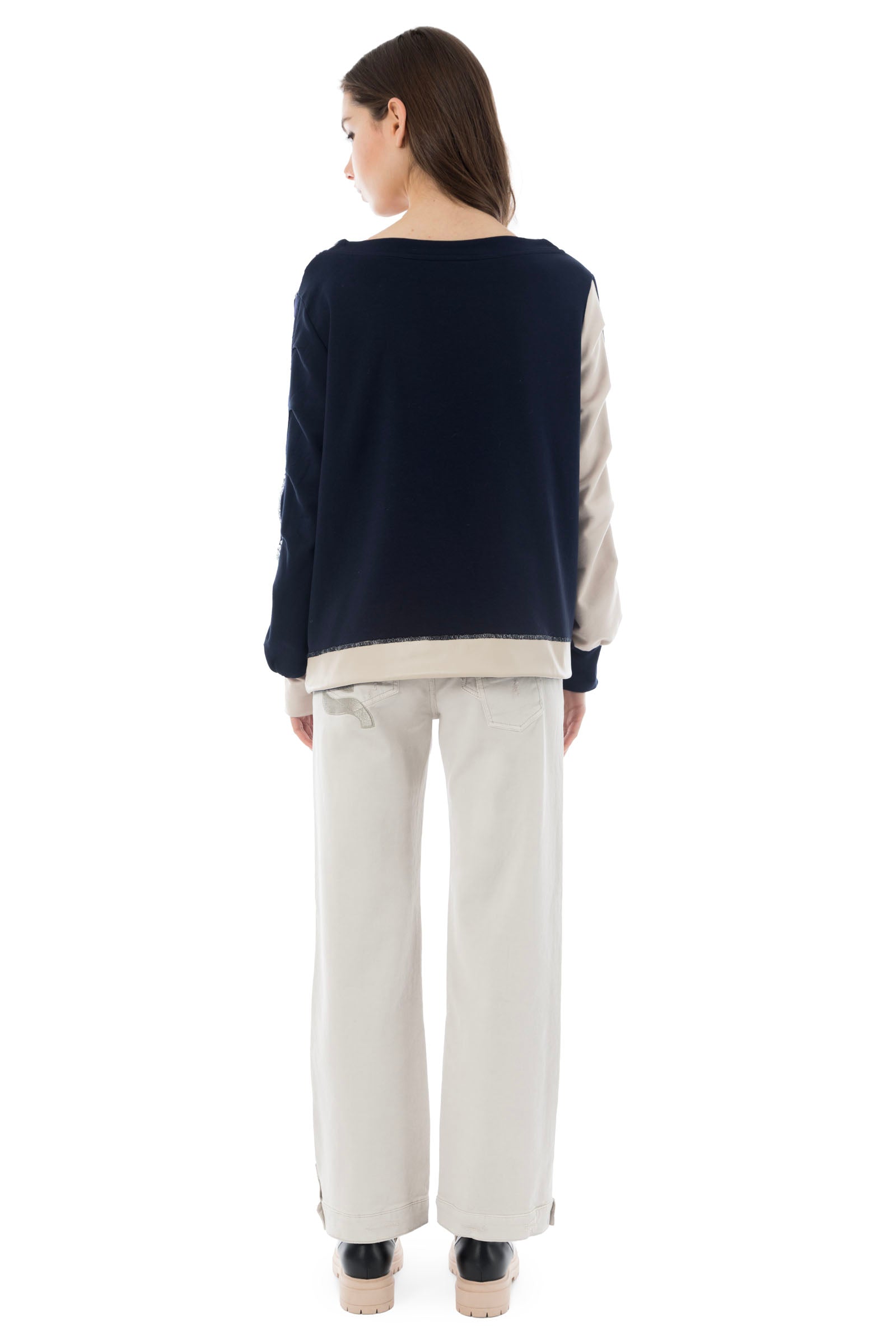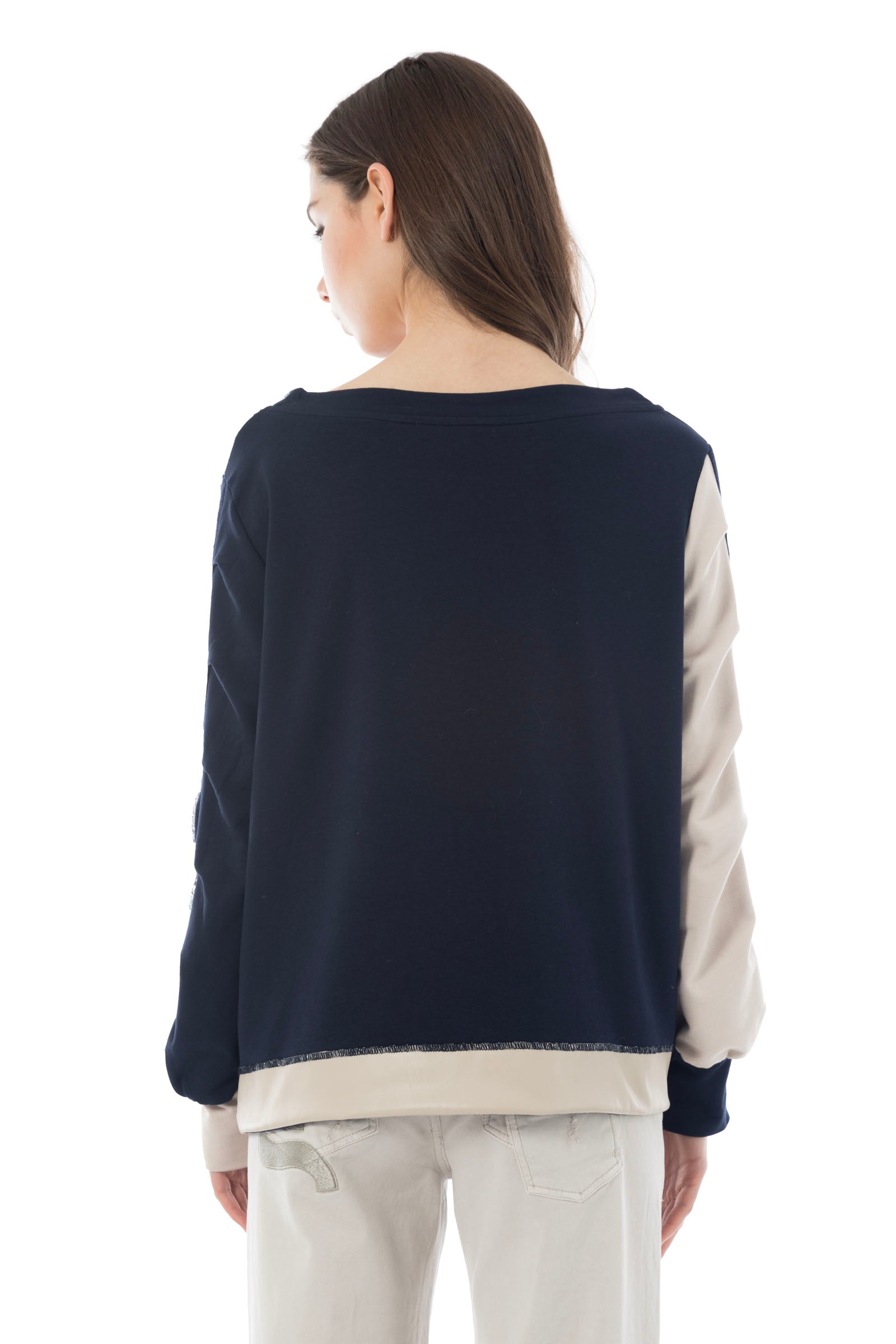 Der Pullover St. Logato ist ein elegantes und schlichtes Outfit-Element. Sein dunkelblaues Obermaterial wird durch cremefarbene Details ergänzt, die durch ein grafisches Motiv verstärkt werden. Er ist ein idealer Begleiter für jeden Anlass.