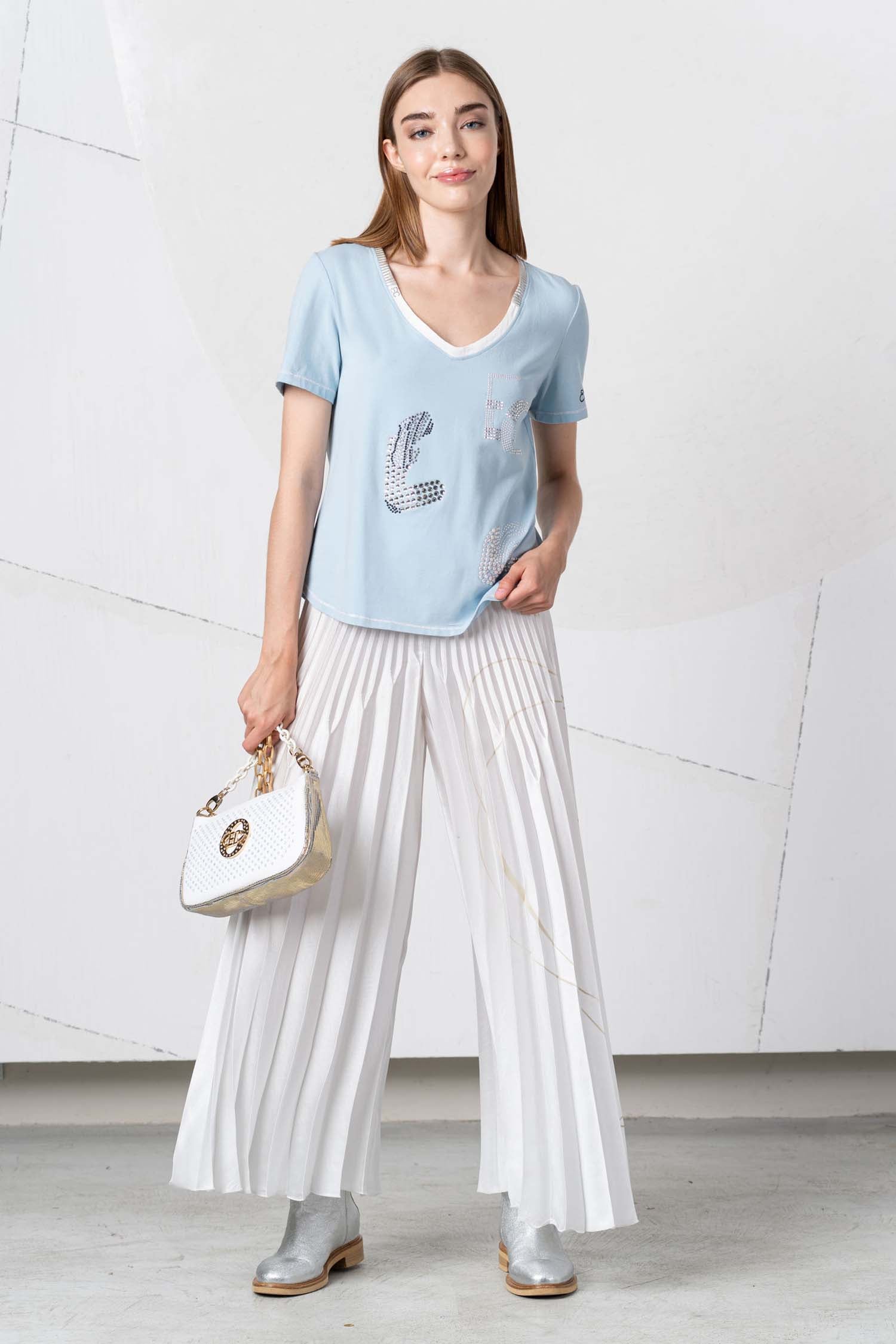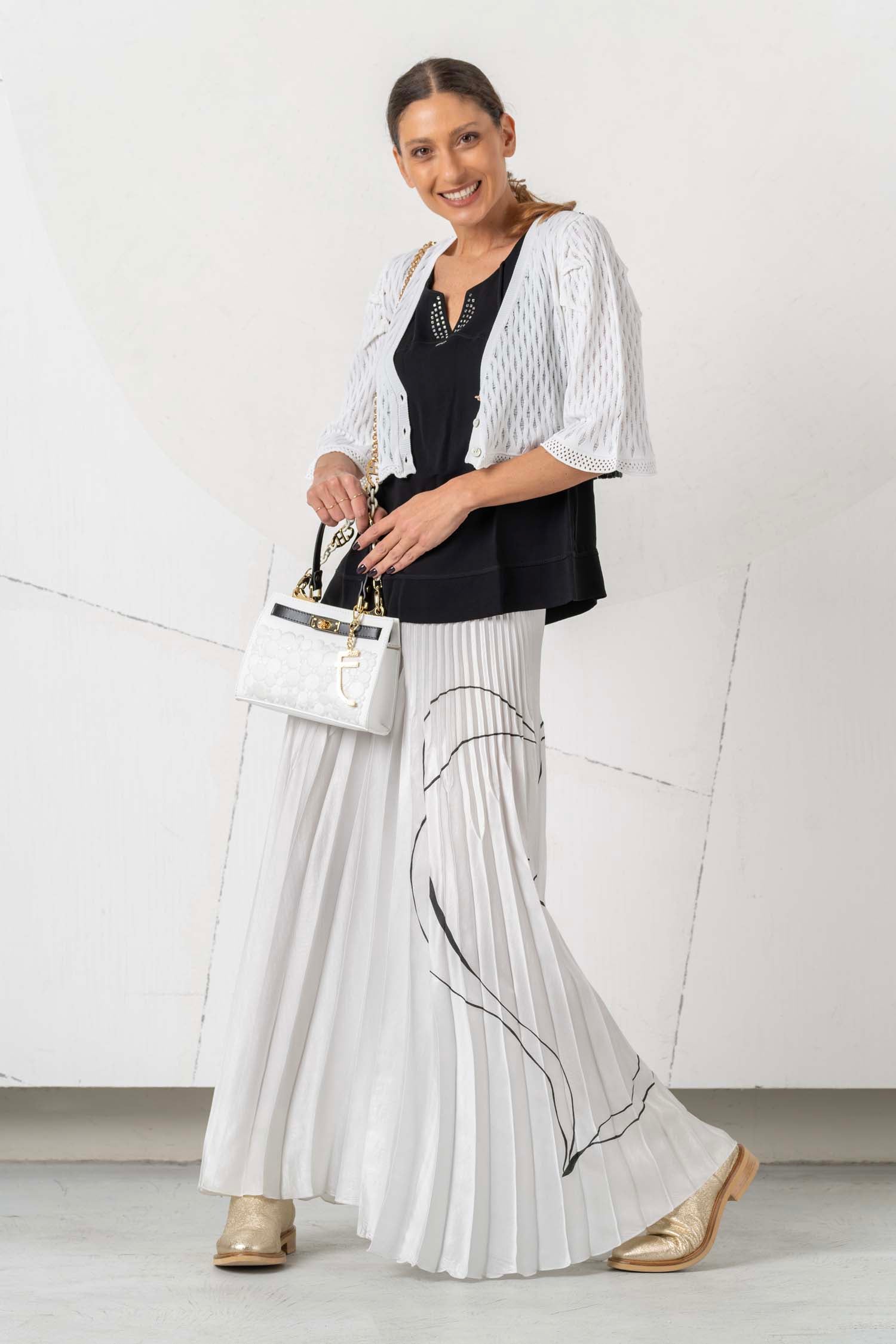 Entdecken Sie die perfekte Kombination aus Komfort und Eleganz mit der ELISA CAVALETTI Faltenhose. Die luftige Sommerhose in Weiß-Beige oder Weiß-Schwarz überzeugt mit einer femininen Faltenoptik und einem bequemen Gummizug. Lassen Sie sich von diesem Must-Have für die warmen Tage inspirieren!
