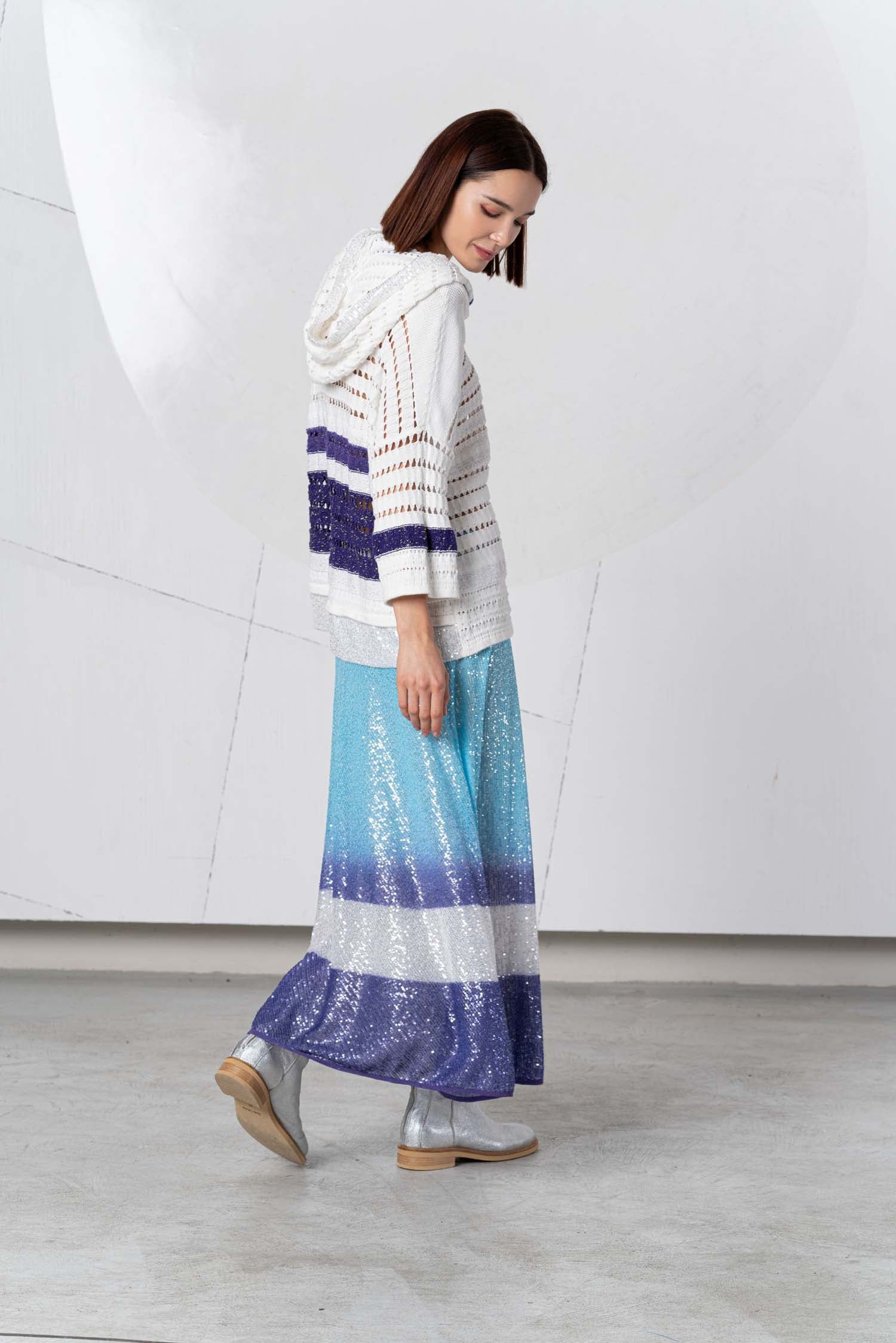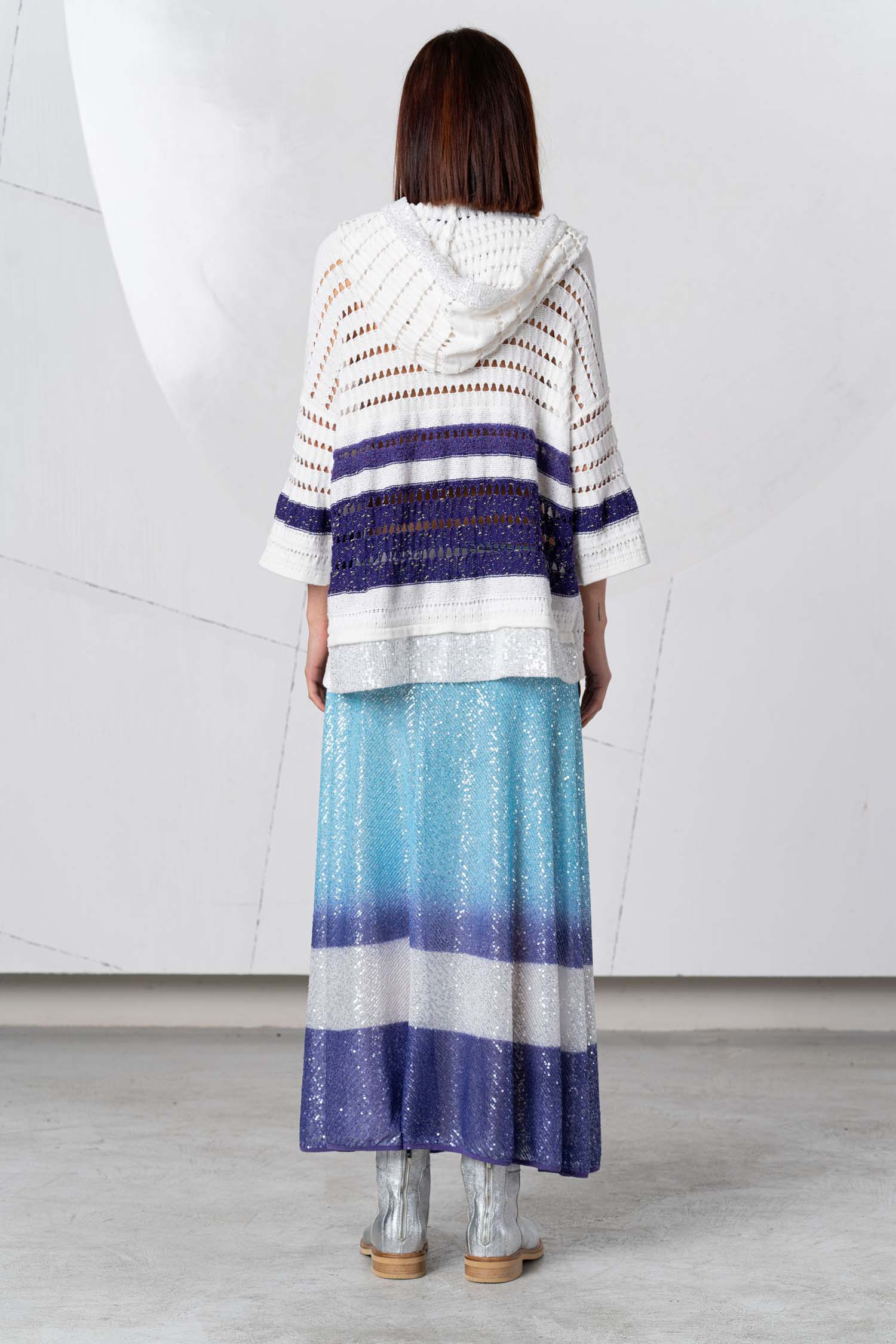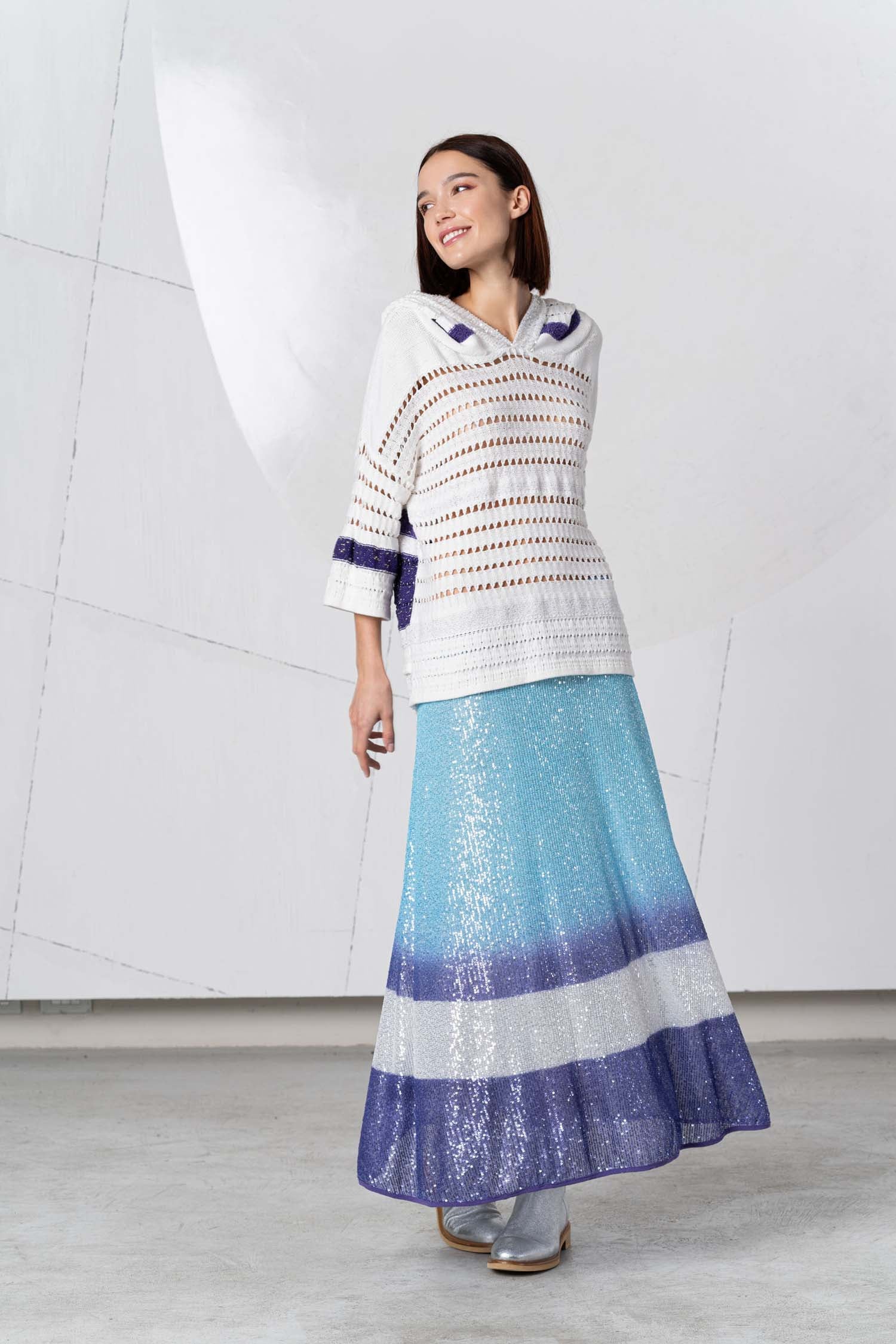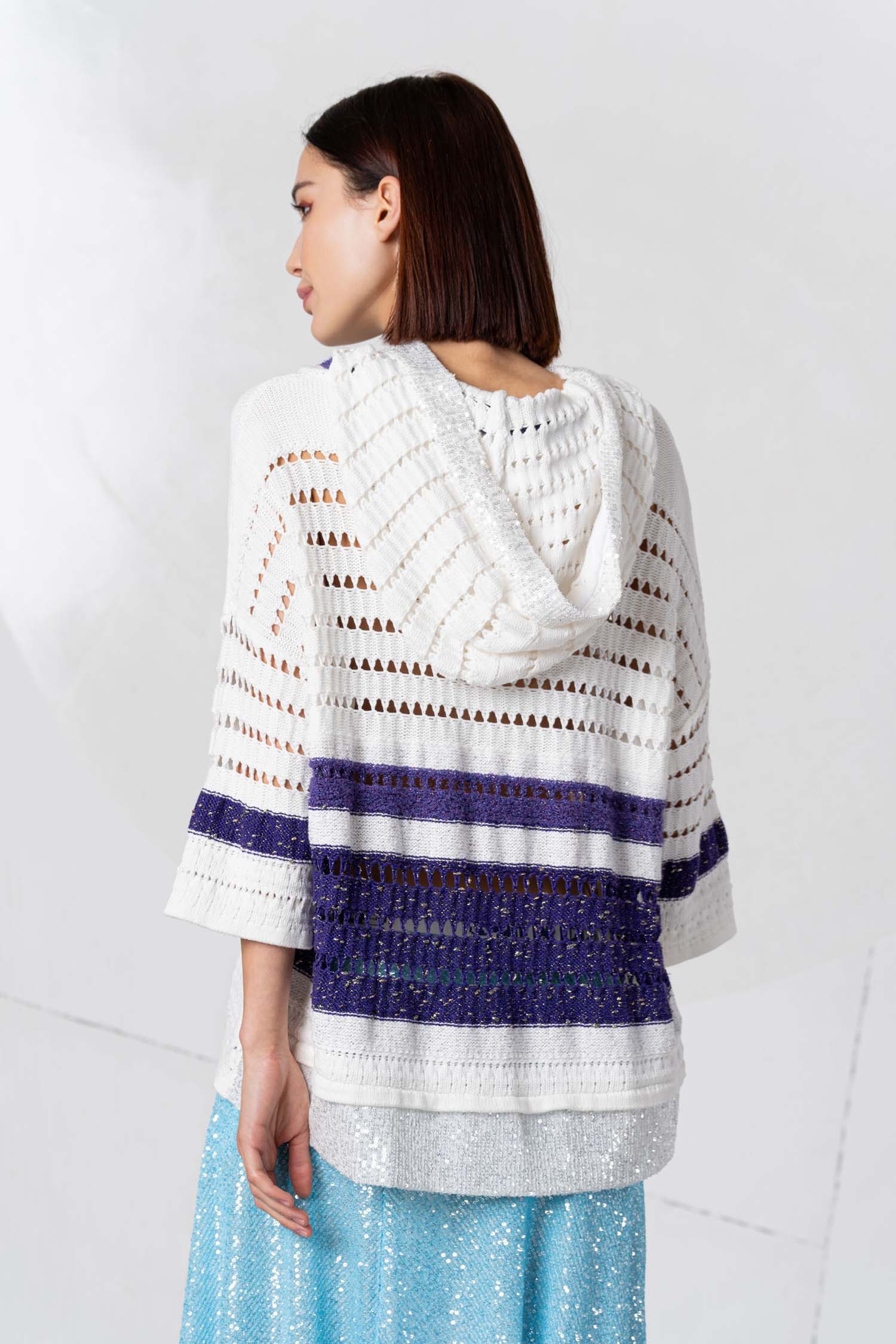 Begeistern Sie sich mit dem ELISA CAVALETTI Strickpullover mit Kapuze! Der weiße Pullover mit dem eleganten lila Muster und dem aufregenden Lochmuster verleiht Ihnen einen einzigartigen Look. Fühlen Sie sich elegant und stilvoll in diesem Pullover. Perfekt für den perfekten Tag!
