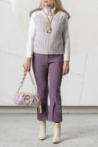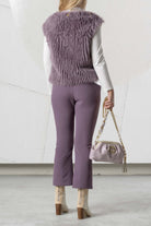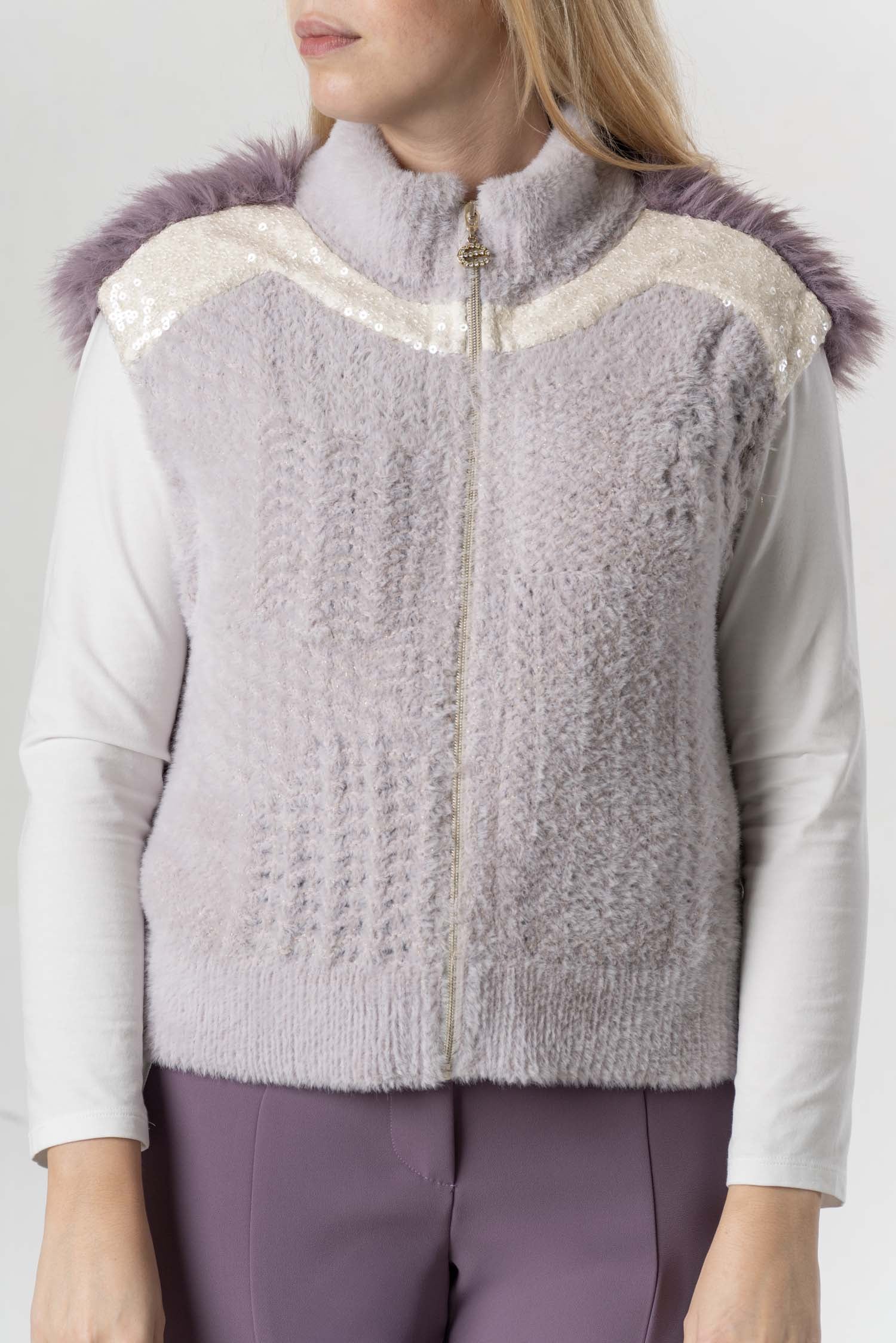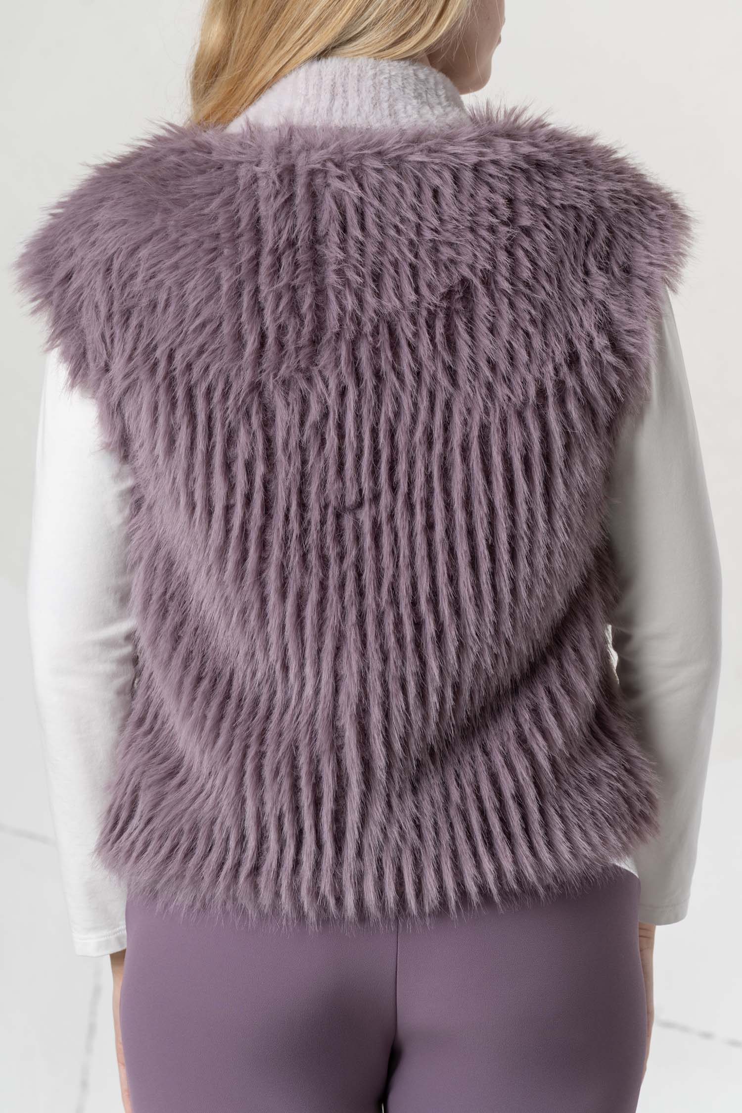 Diese stilvolle Weste besticht durch ihre extravagante Gestaltung mit verschiedenen Lilatönen und einer spannenden Kombination unterschiedlicher Stoffe. Das Fell-Detail verleiht dem Modell nicht nur eine luxuriöse Optik, sondern sorgt auch für angenehme Wärme. Ein modisches Statement für anspruchsvolle Looks, das vielseitig kombinierbar ist und jedem Outfit eine individuelle Note verleiht.