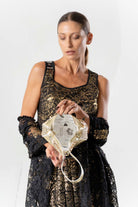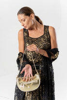 Diese kleine Abendtasche besticht durch ihren stilvollen, glänzenden Goldton und die elegante halbrunde Form. Das kompakte Design macht sie zum idealen Begleiter für festliche Anlässe, während das schimmernde Finish jedem Outfit einen edlen Akzent verleiht. Praktisch und zugleich modisch setzt sie subtile Highlights und rundet Ihr Abendstyling perfekt ab.