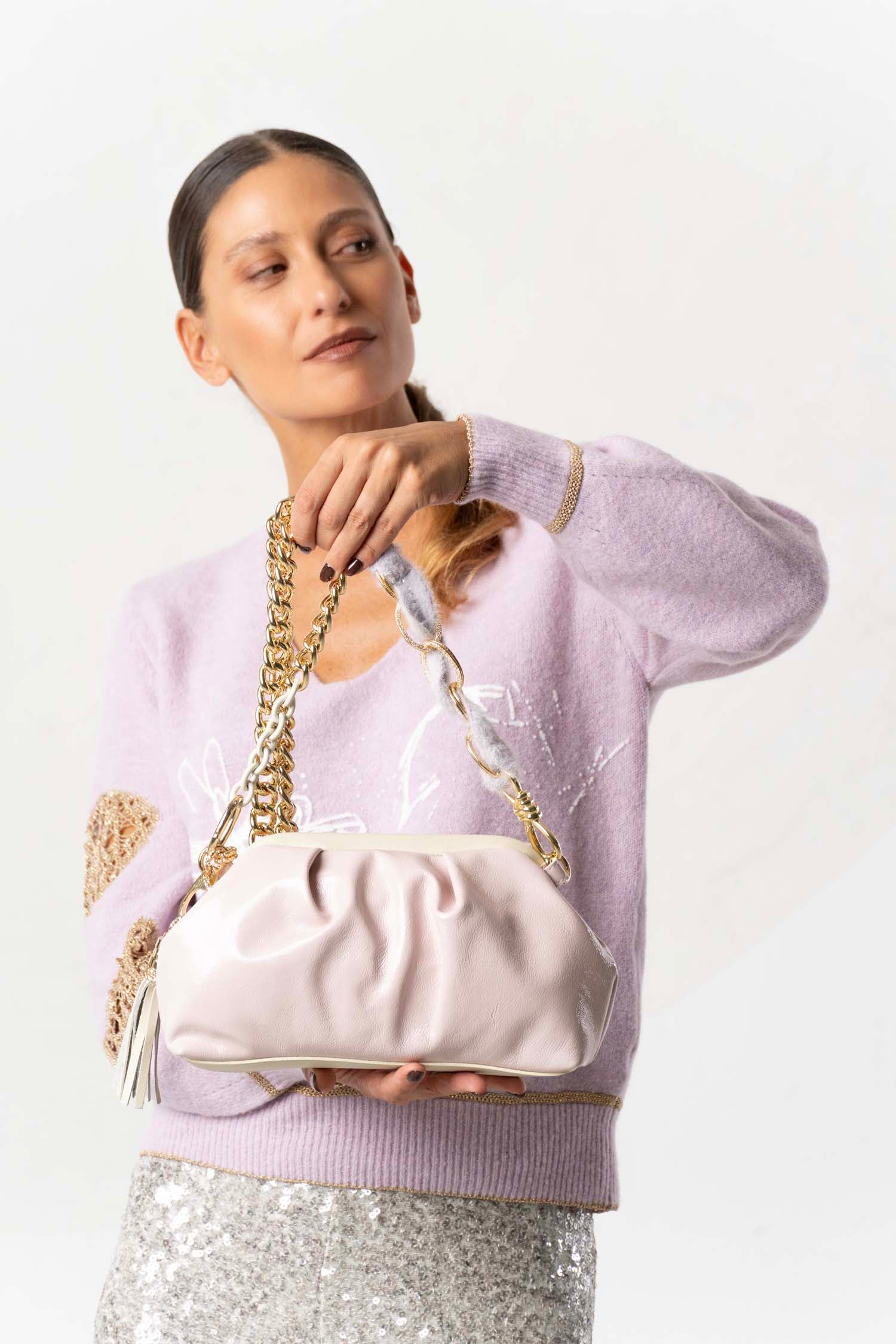 Diese kleine, stylische Tasche aus echtem Leder besticht durch hochwertige Verarbeitung und zeitloses Design. Erhältlich in den frischen Farben Mintgrün und Lila, verleiht sie jedem Outfit eine elegante Note. Ideal für den Alltag, bietet sie ausreichend Platz für die wichtigsten Essentials bei gleichzeitig kompaktem Format.