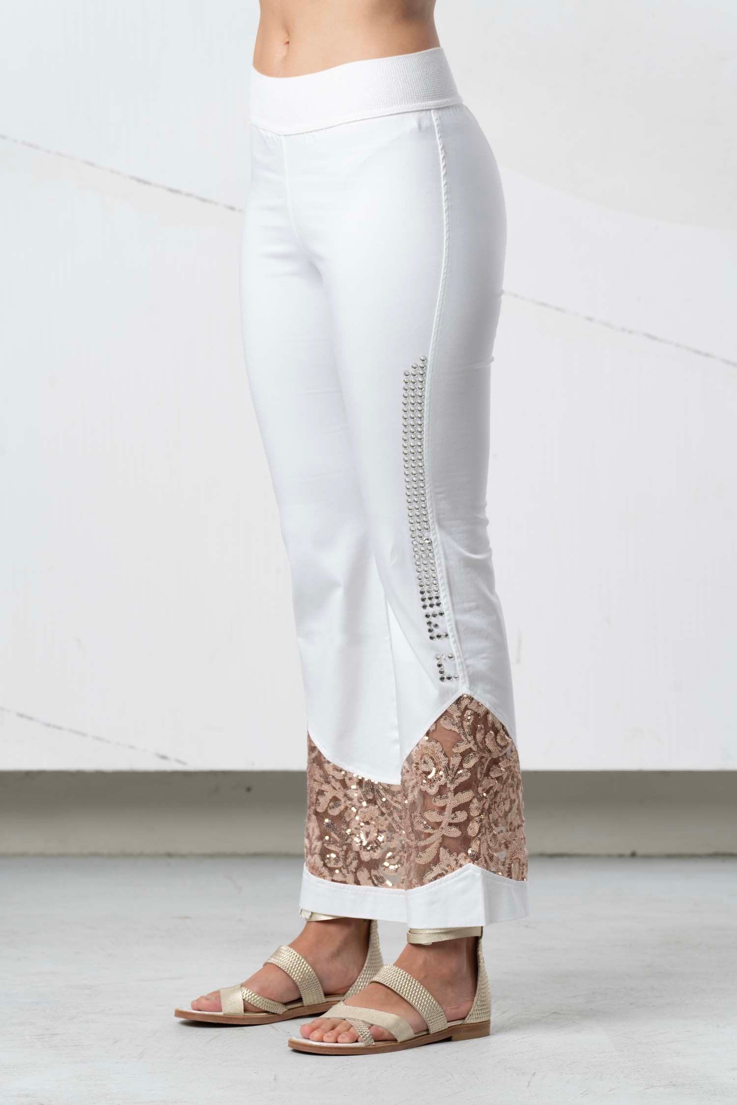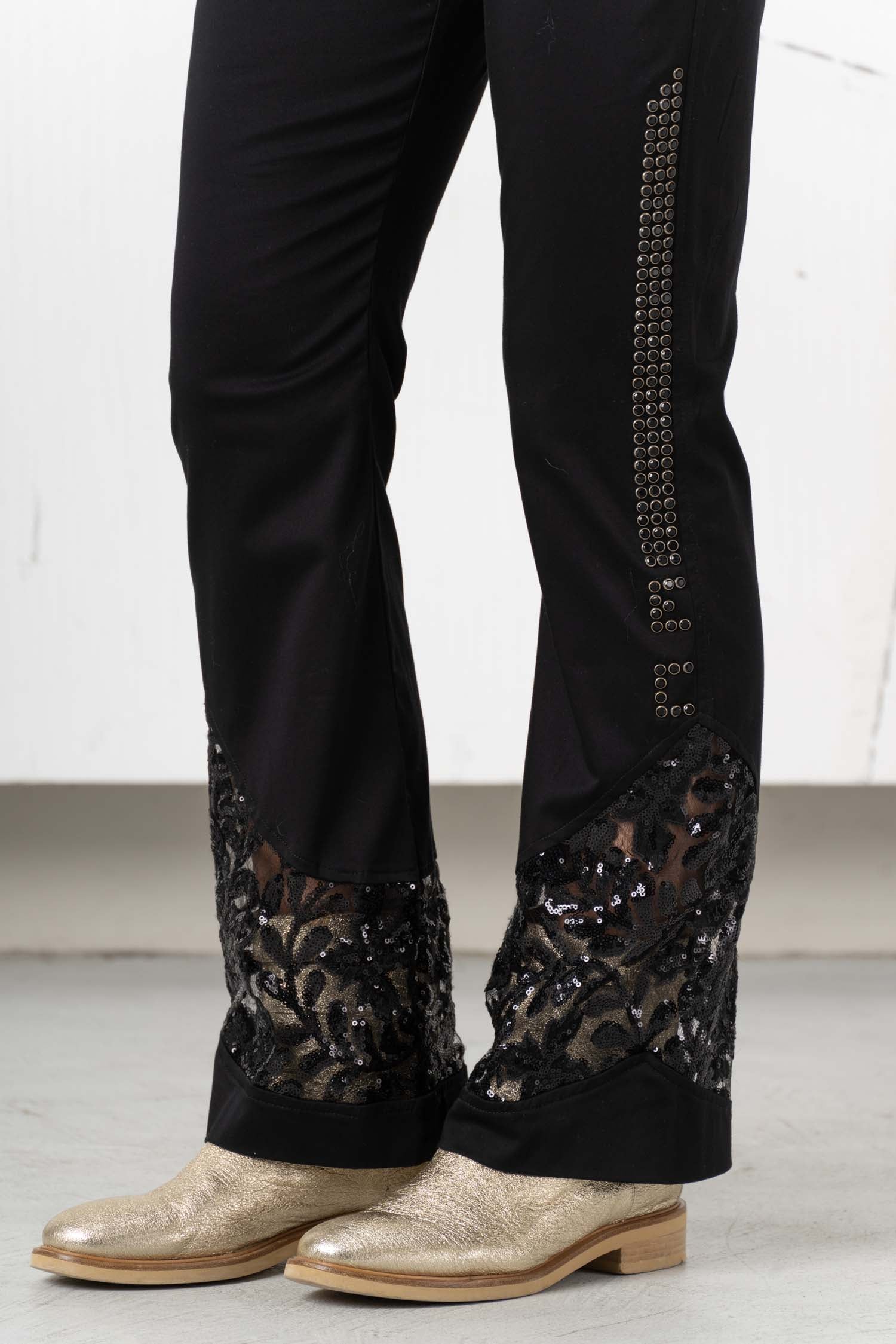 Diese stylische Leggings in den Farben schwarz und weißist ein absolutes Must-Have für jeden modischen Kleiderschrank! In schwarz gehalten und mit feiner Spitze, schimmerndem Glitzer und funkelnden Strasssteinen verziert, sorgen sie für einen extravaganten Look und setzen jedes Outfit gekonnt in Szene. Holen Sie sich jetzt diese einzigartigen Leggings und überzeugen Sie mit Stil und Eleganz!