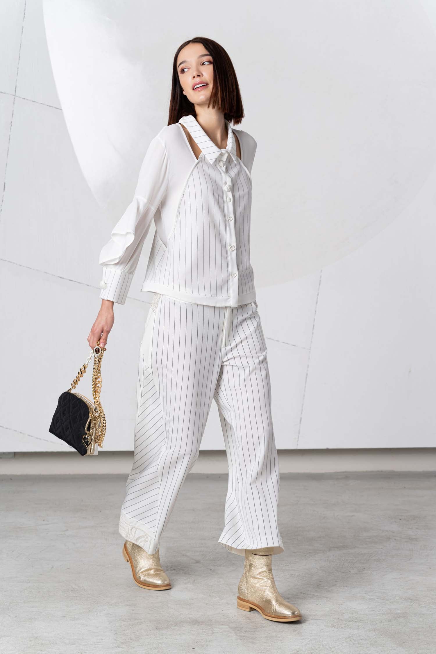 ELISA CAVALETTI weiße Bluse mit Nadelstreifen