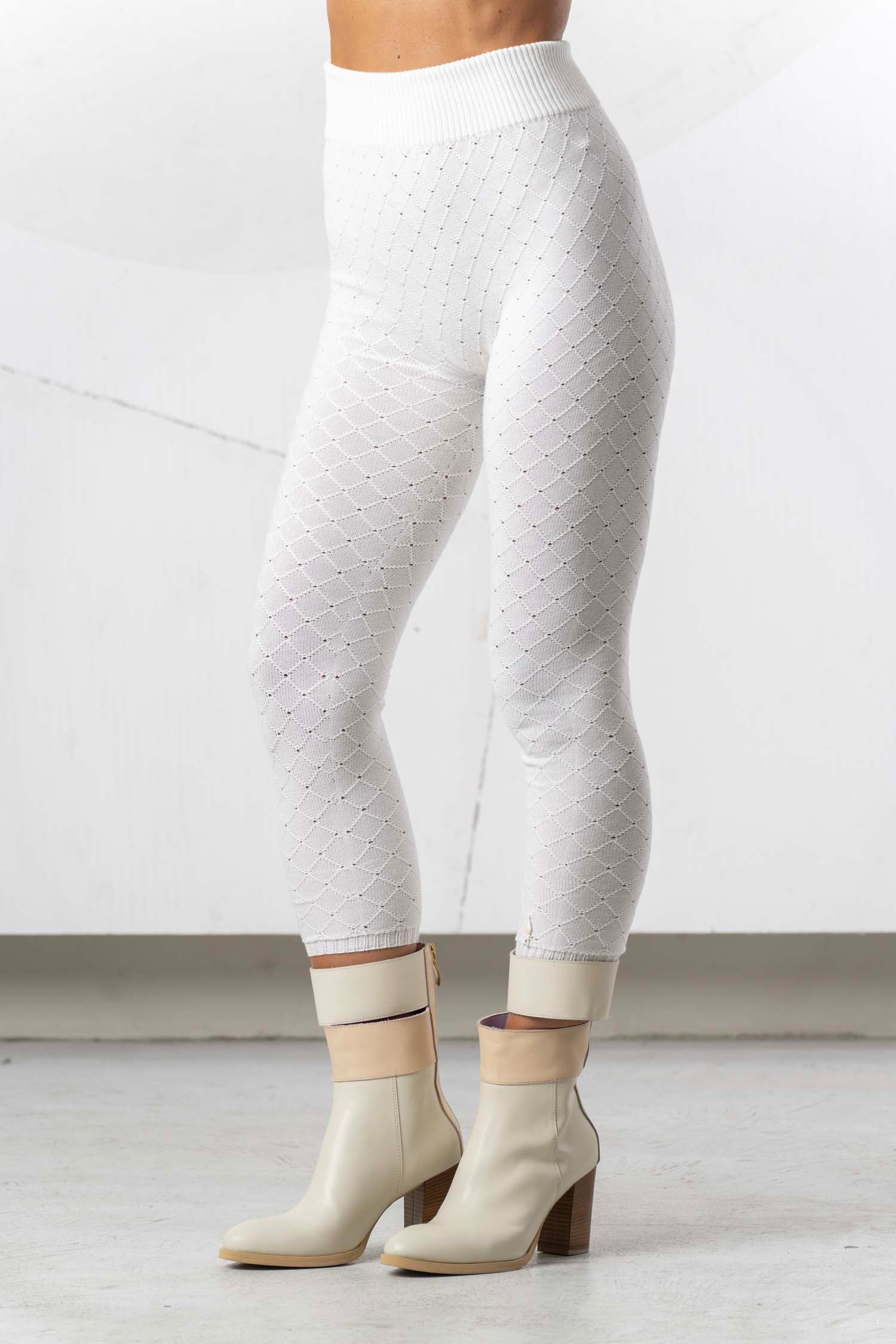 Die schwarze Strickleggings besticht durch ihr modernes Lochmuster, das einen stilvollen Akzent setzt. Ihr enger Schnitt sorgt für eine angesagte Silhouette und lässt sich vielseitig kombinieren – ideal für trendbewusste Fashionliebhaber, die zeitgemäßen Komfort schätzen. Die hochwertige Verarbeitung garantiert eine angenehme Passform und lange Haltbarkeit.
