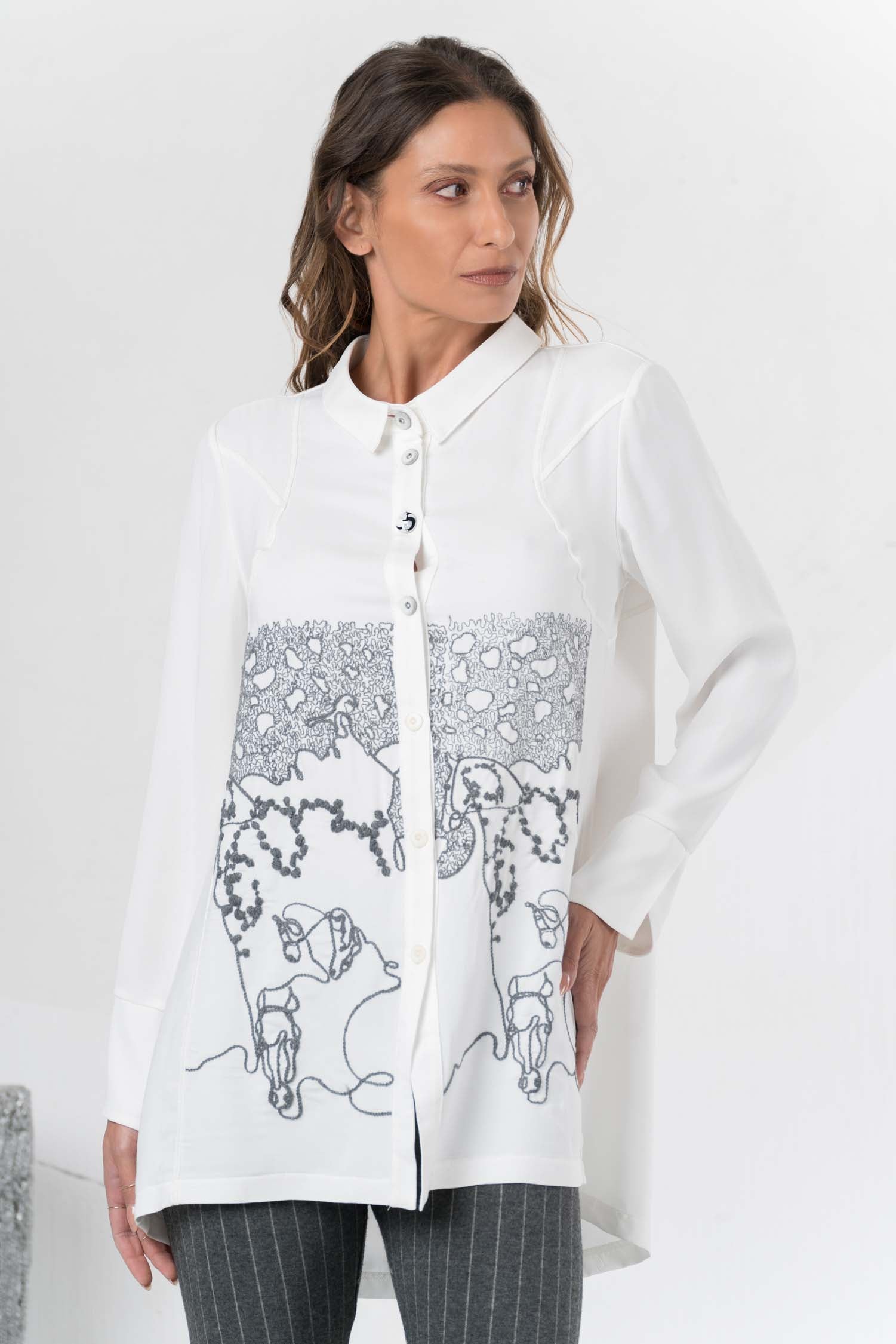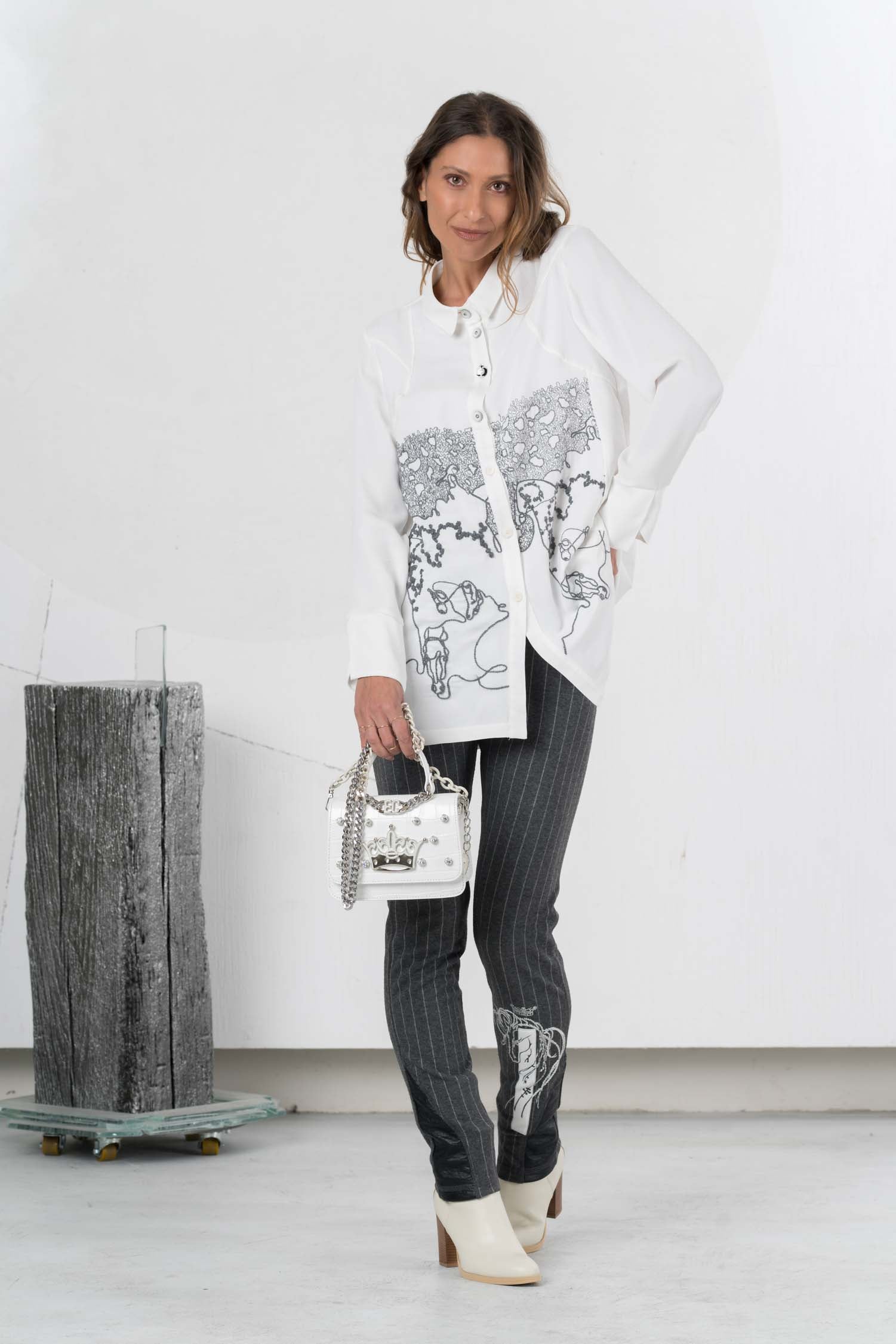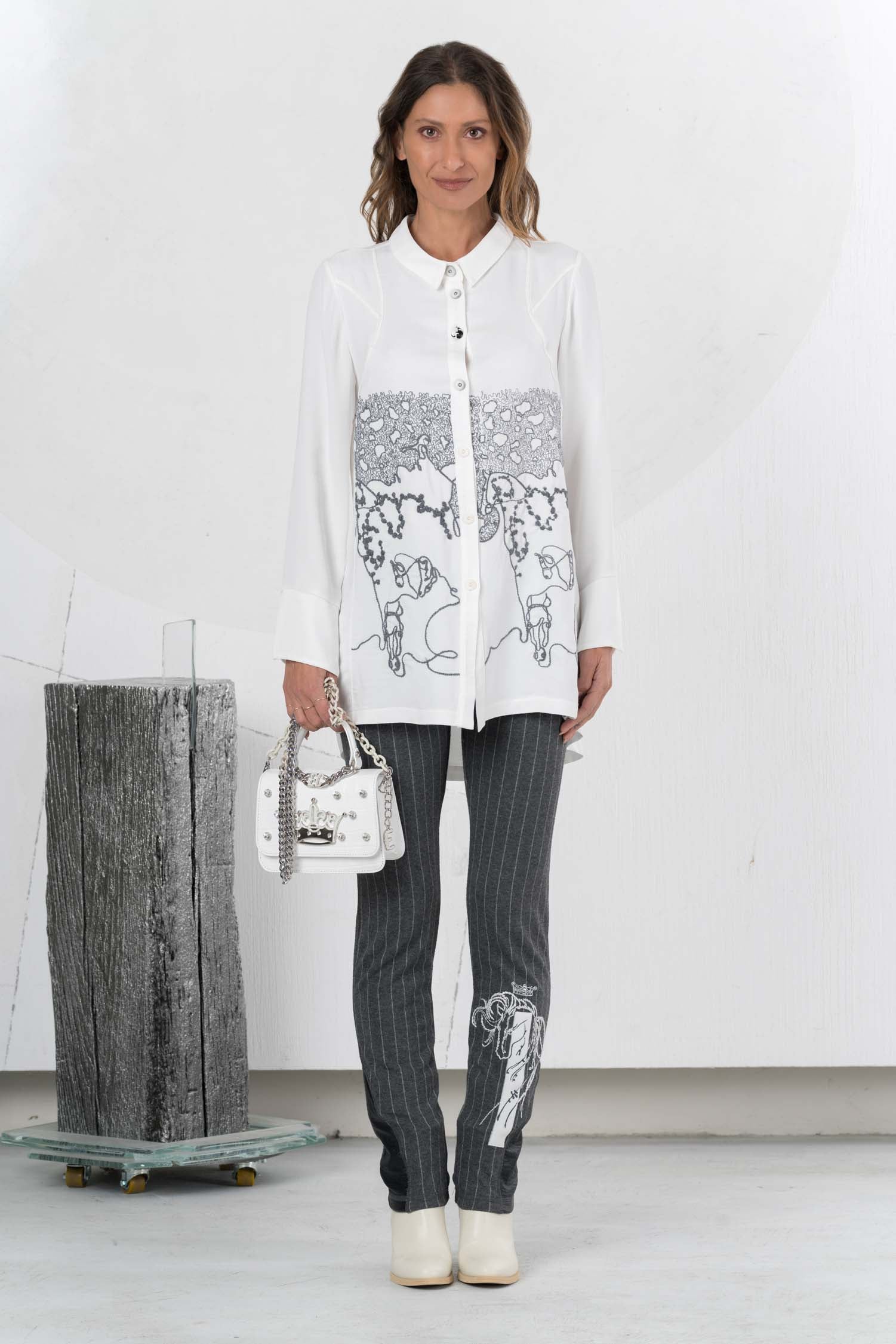 Die Bluse Incontro besticht durch ihr stilvolles Design in klassischem Weiß, das durch einen kontrastreichen schwarzen Aufdruck elegant ergänzt wird. Dieses Modell vereint zeitlose Eleganz mit moderner Raffinesse und eignet sich ideal für anspruchsvolle Looks im Alltag oder besonderen Anlässen. Hochwertige Verarbeitung garantiert Komfort und Langlebigkeit.