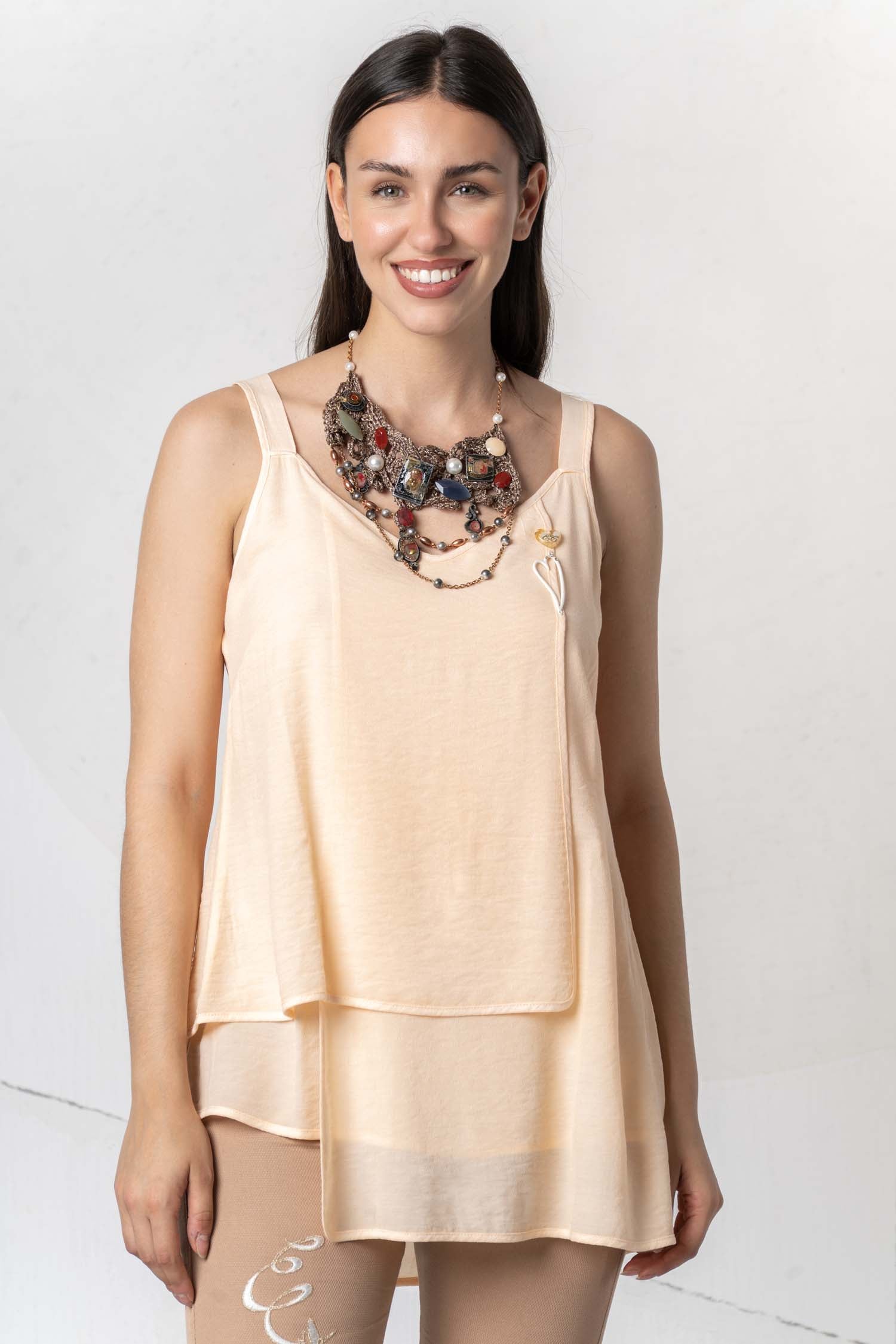 Das lang geschnittene Trägertop besticht durch seinen stilvollen und locker fallenden Schnitt, der für eine elegante Silhouette sorgt. Erhältlich in zwei unterschiedlichen Farben, bietet es vielseitige Kombinationsmöglichkeiten für verschiedene Looks. Die hochwertige Verarbeitung garantiert hohen Tragekomfort, ideal für warme Tage oder als modische Basis für Lagenoutfits.