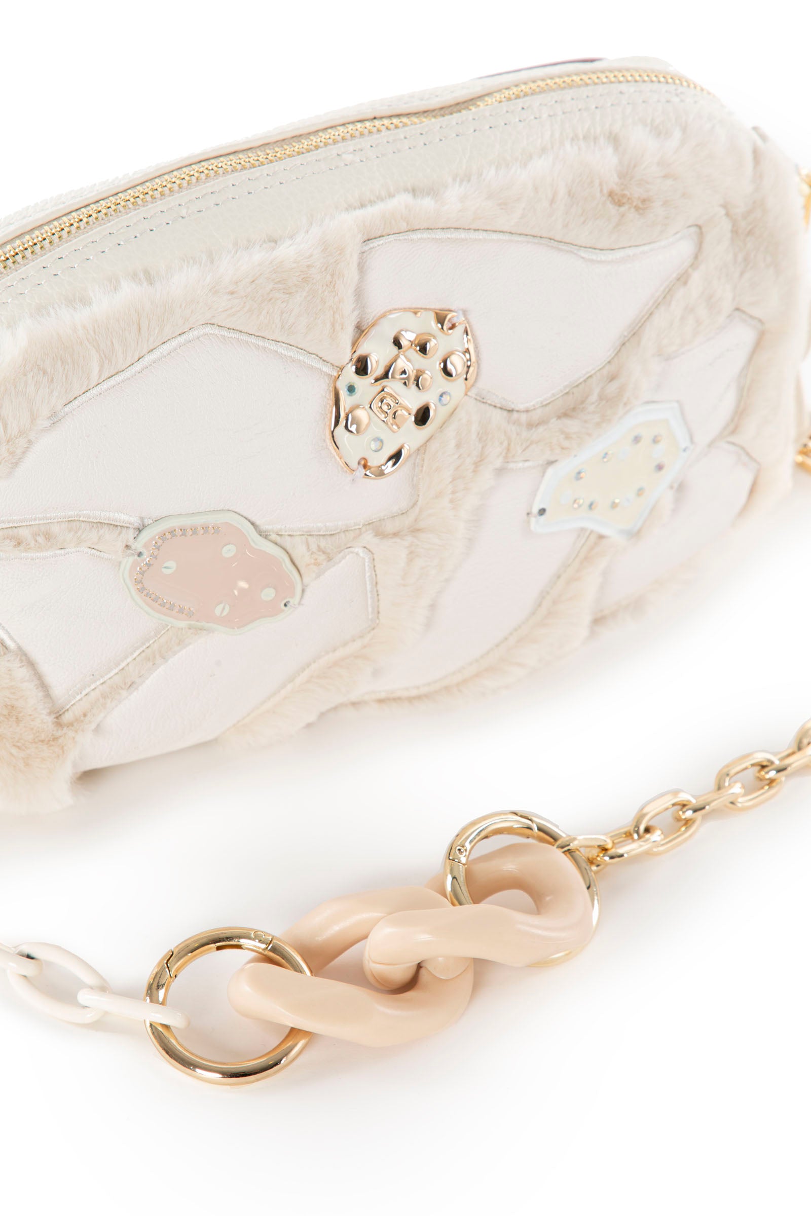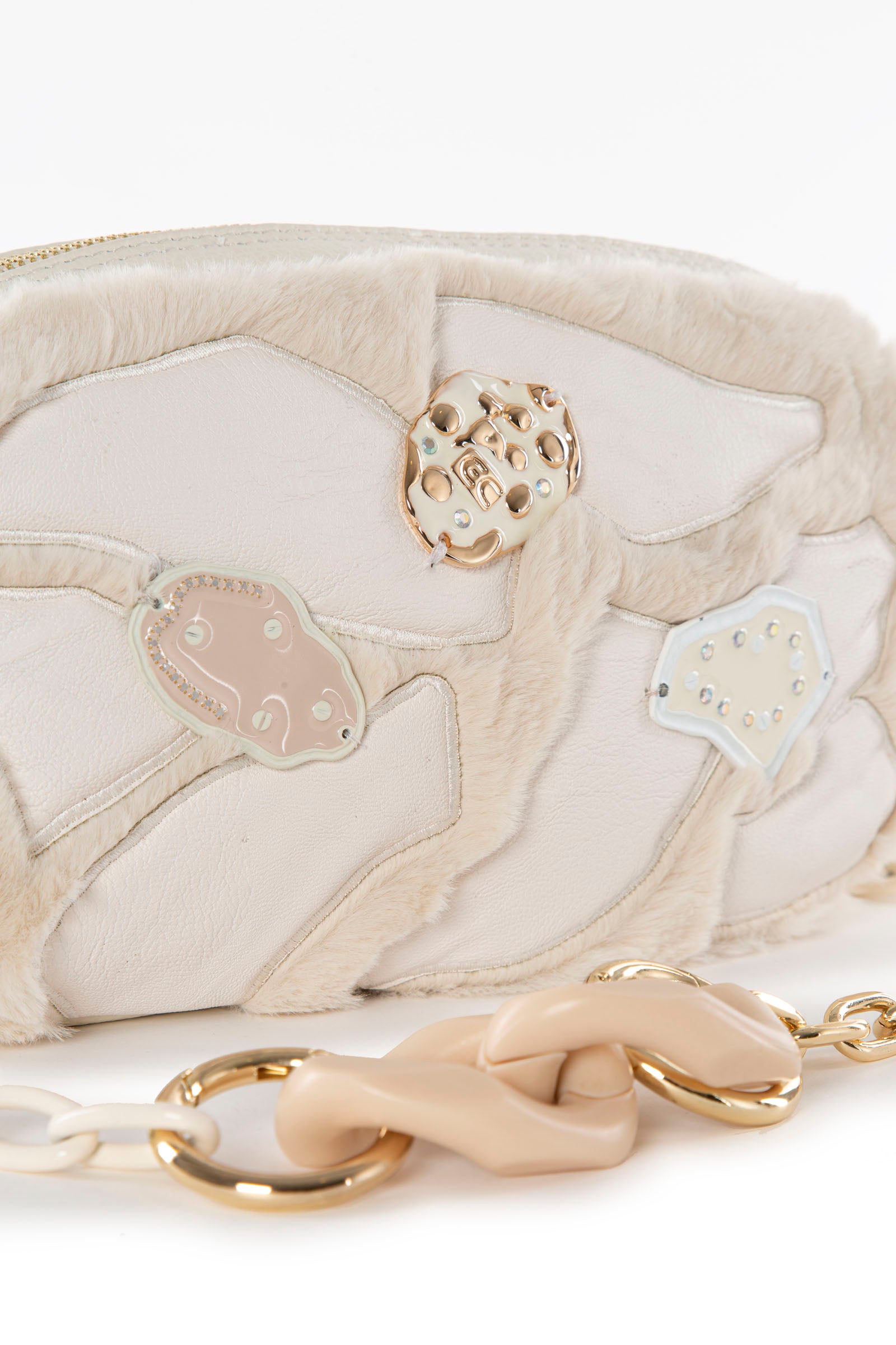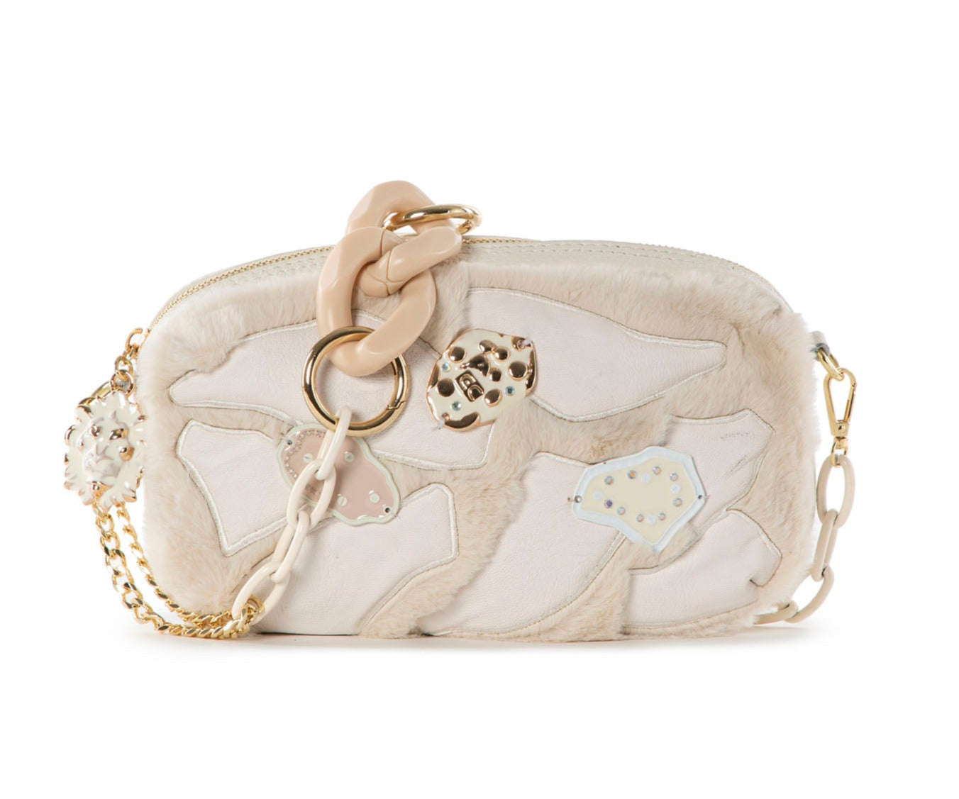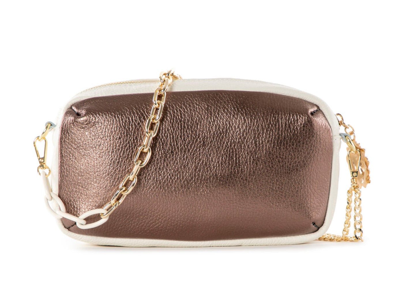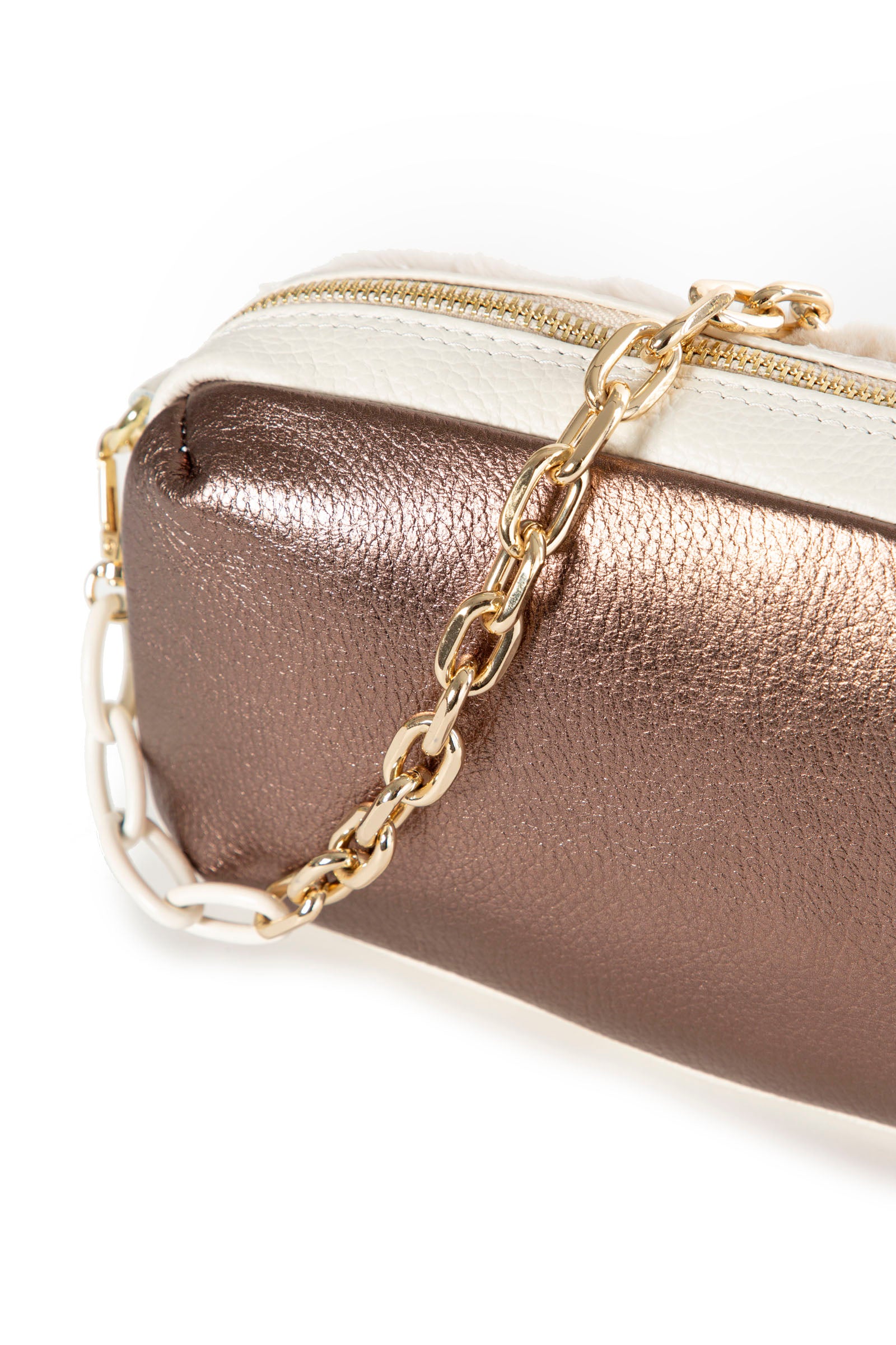 Mit der DANIELA DALLAVALLE Clutch Incontro wirkt Ihr Look immer stilvoll und glamourös. Diese kleine Tasche aus weichem Echtleder begeistert mit einer goldenen Metallkette und verspielten Applikationen - ein echter Blickfang! Bewundern Sie die aufregende Eleganz und profitieren Sie von einem unvergesslichen Abend. Wollen Sie sich verzaubern lassen?