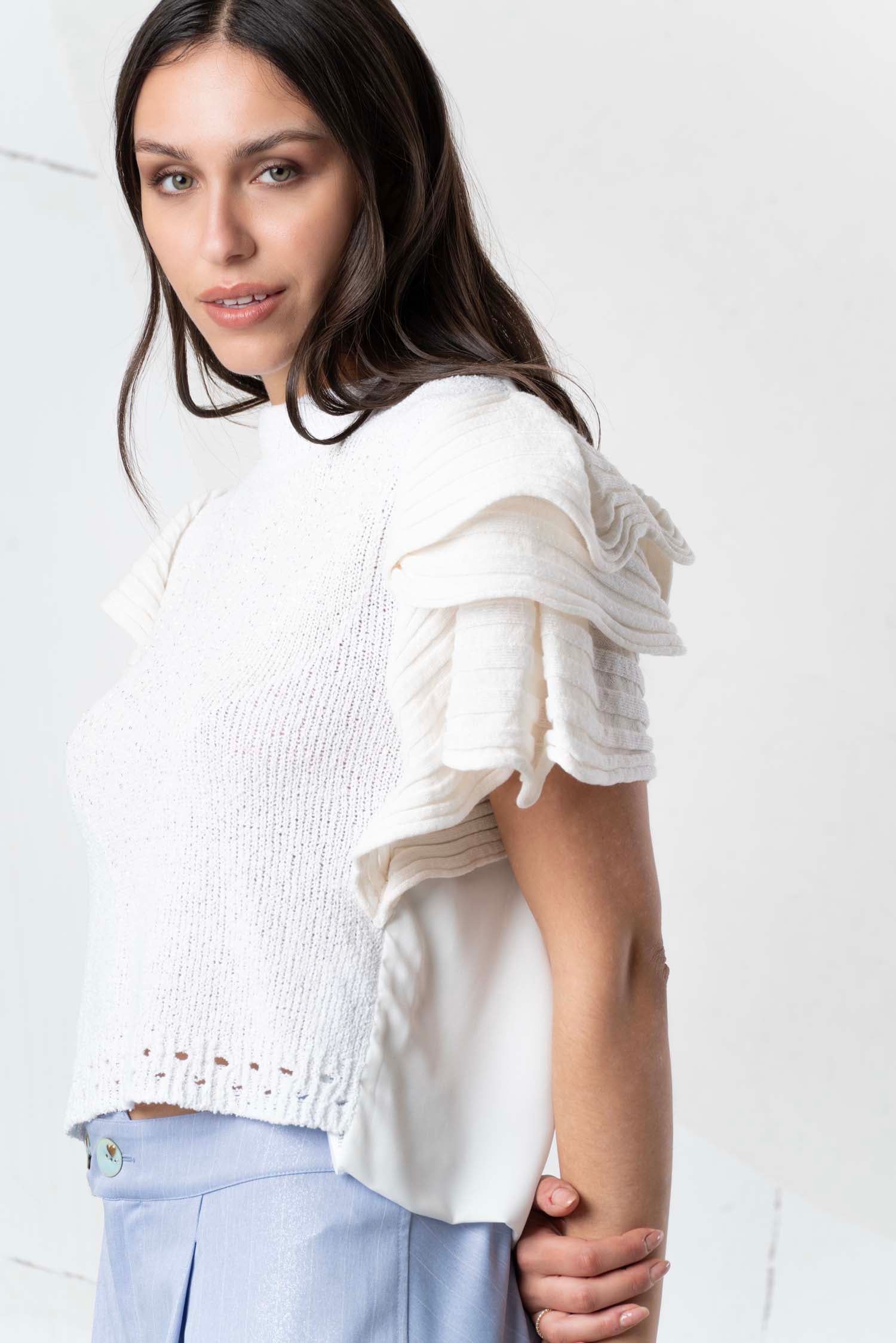 Schauen Sie modisch aus mit dem ELISA CAVALETTI Strickpullover kurzarm! Der extravagante Pullover in altweiß ist nicht nur ein absoluter Hingucker, sondern verleiht Ihnen auch einen stylischen Look. Die schicken Rüschen an den Ärmeln verleihen dem Pullover das gewisse Etwas. Gönnen Sie sich diesen luxuriösen Pullover und fühlen Sie sich selbstbewusst und elegant!