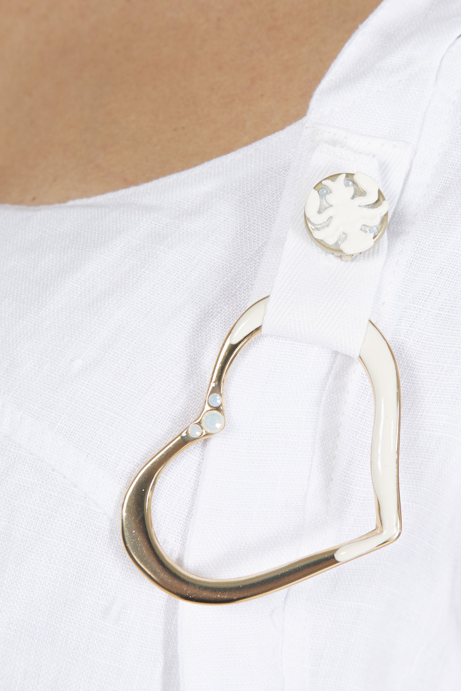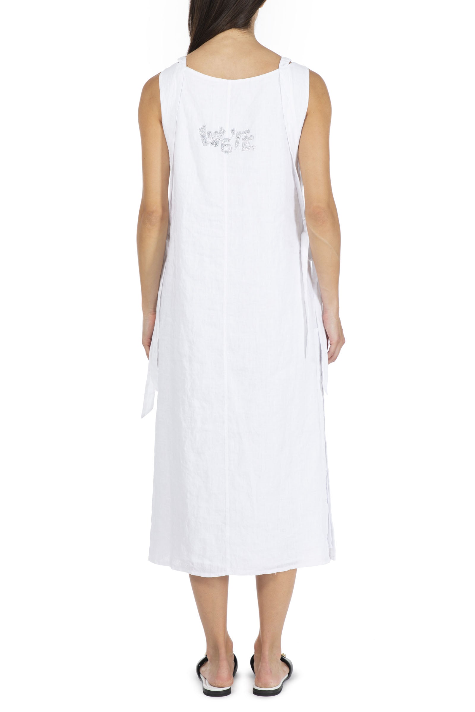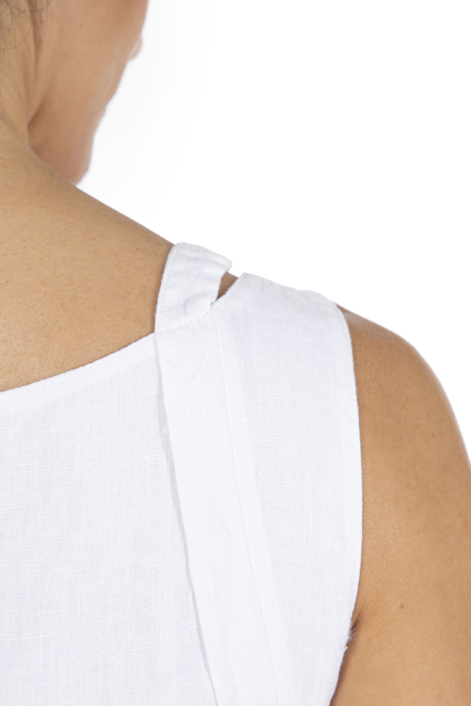 Dieses elegante Sommerkleid in strahlendem Weiß besticht durch seine breite Trägergestaltung, die angenehmen Halt und Komfort bietet. Der dezente Schriftzug verleiht dem Modell eine moderne, stilvolle Note, ideal für warme Tage, an denen Sie mühelos schick auftreten möchten. Ein zeitloses Kleidungsstück, das sowohl Alltag als auch besondere Anlässe bereichert.