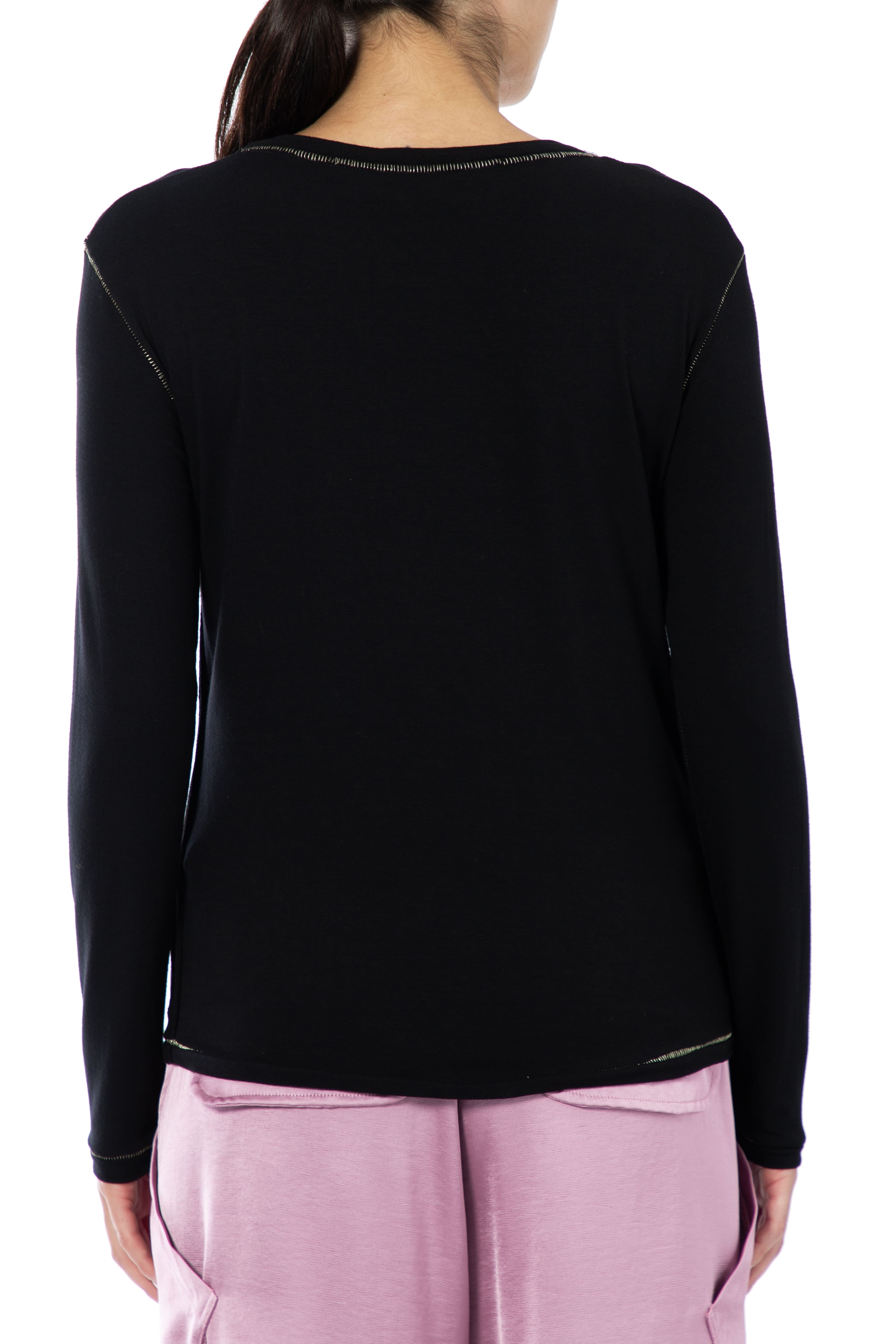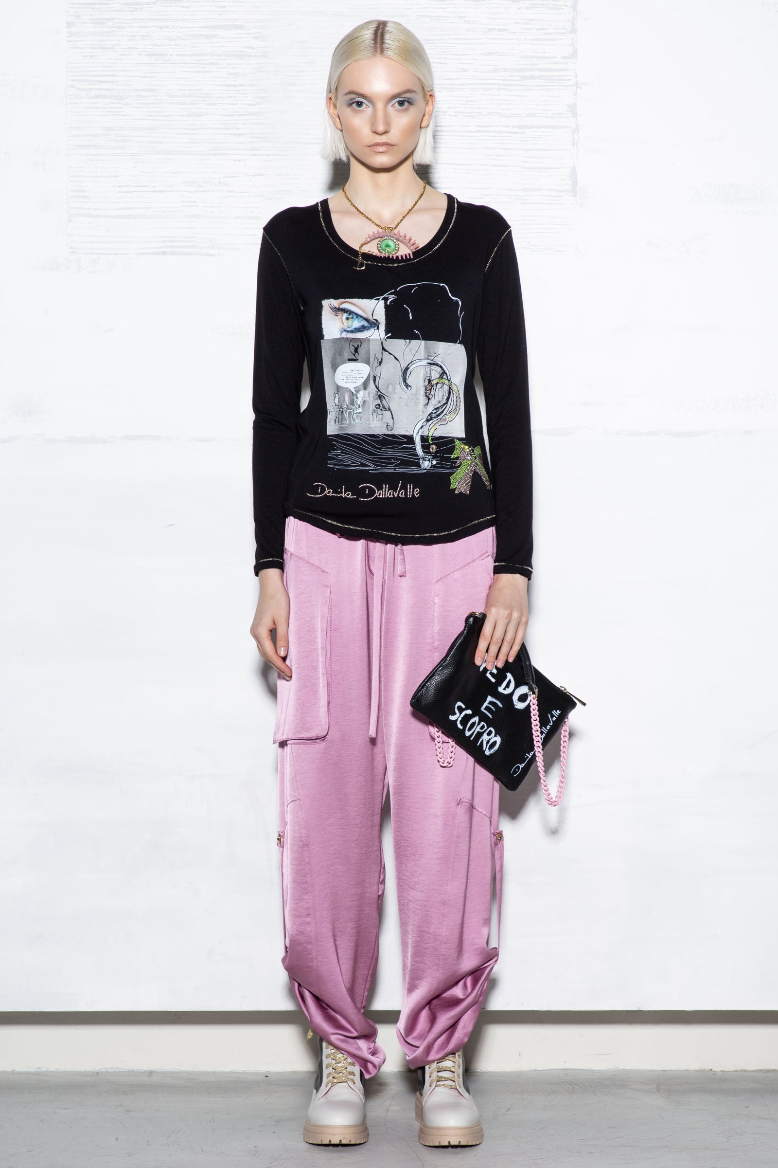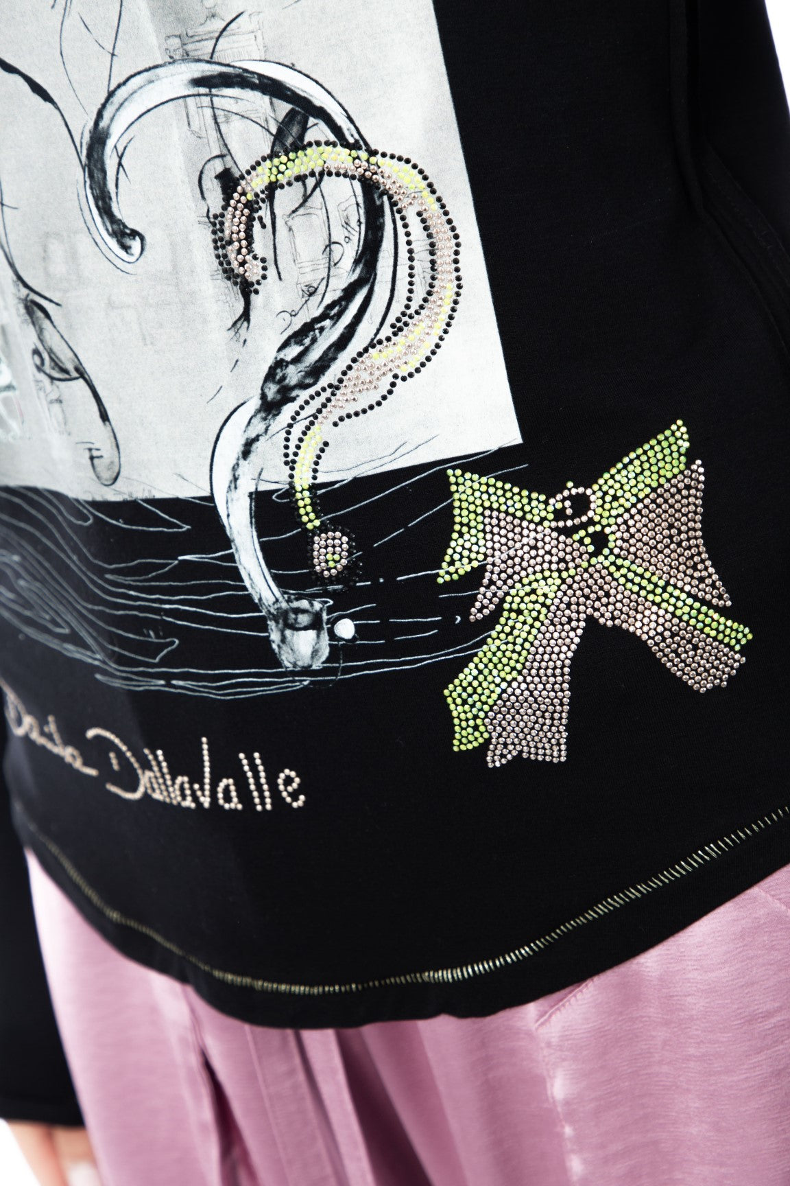 Entdecke DANIELA DALLAVALLES T-Shirt Brontolo! Ein stylisher Look mit einem komfortablen Rundhalsausschnitt, langen Ärmeln und einem schwarzen Stoff, auf dem ein farbiger Aufdruck mit einem Auge zu sehen ist. Dies ist die perfekte Wahl für Dein tägliches Outfit, das Haltbarkeit, Style und Komfort in sich vereint!