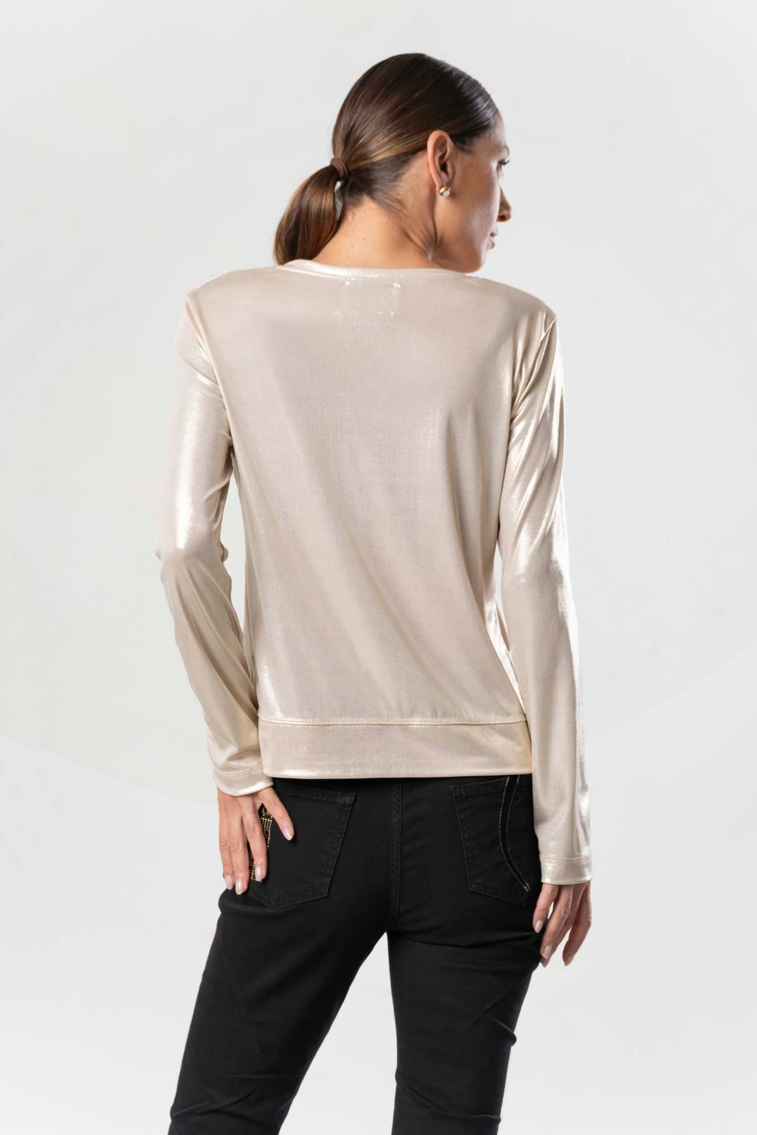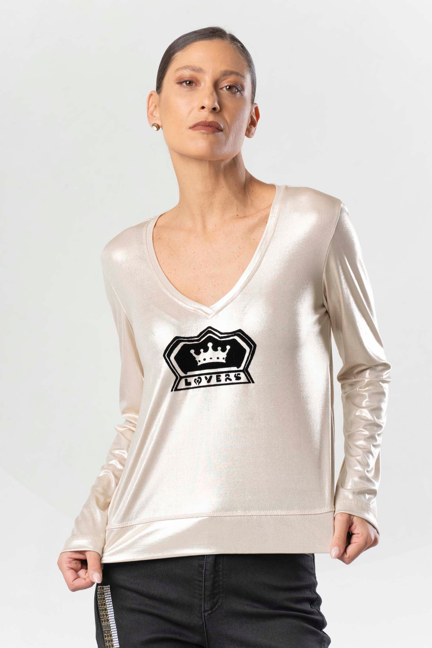 Entdecken Sie den ultimativen Style mit dem ELISA CAVALETTI Oro Nero Sweatshirt. Das langarmige Oberteil besticht durch seinen glänzenden Goldton und den V-Ausschnitt, während das schwarze Muster für einen edlen Look sorgt. Perfekt für einen modischen Auftritt mit einem Hauch von Luxus!