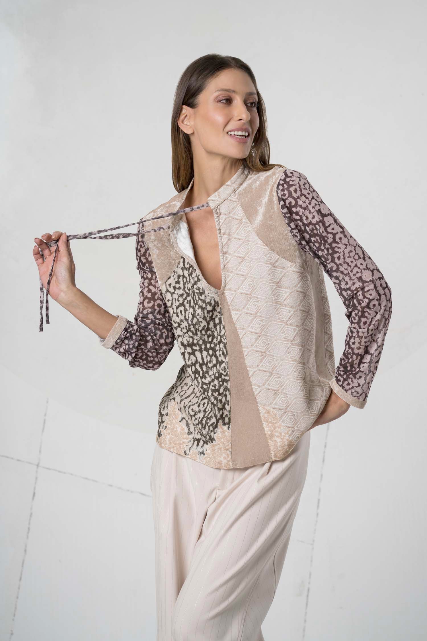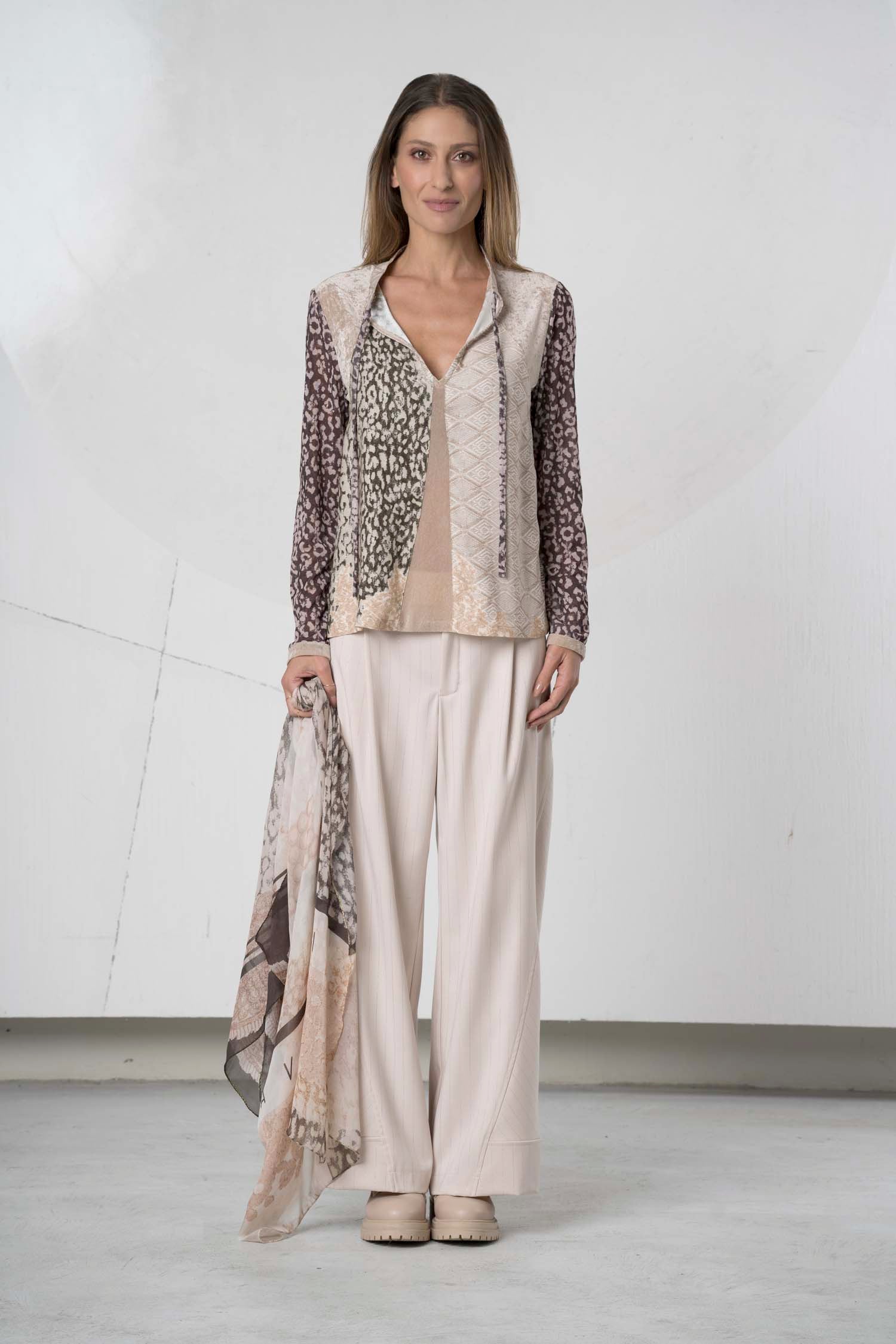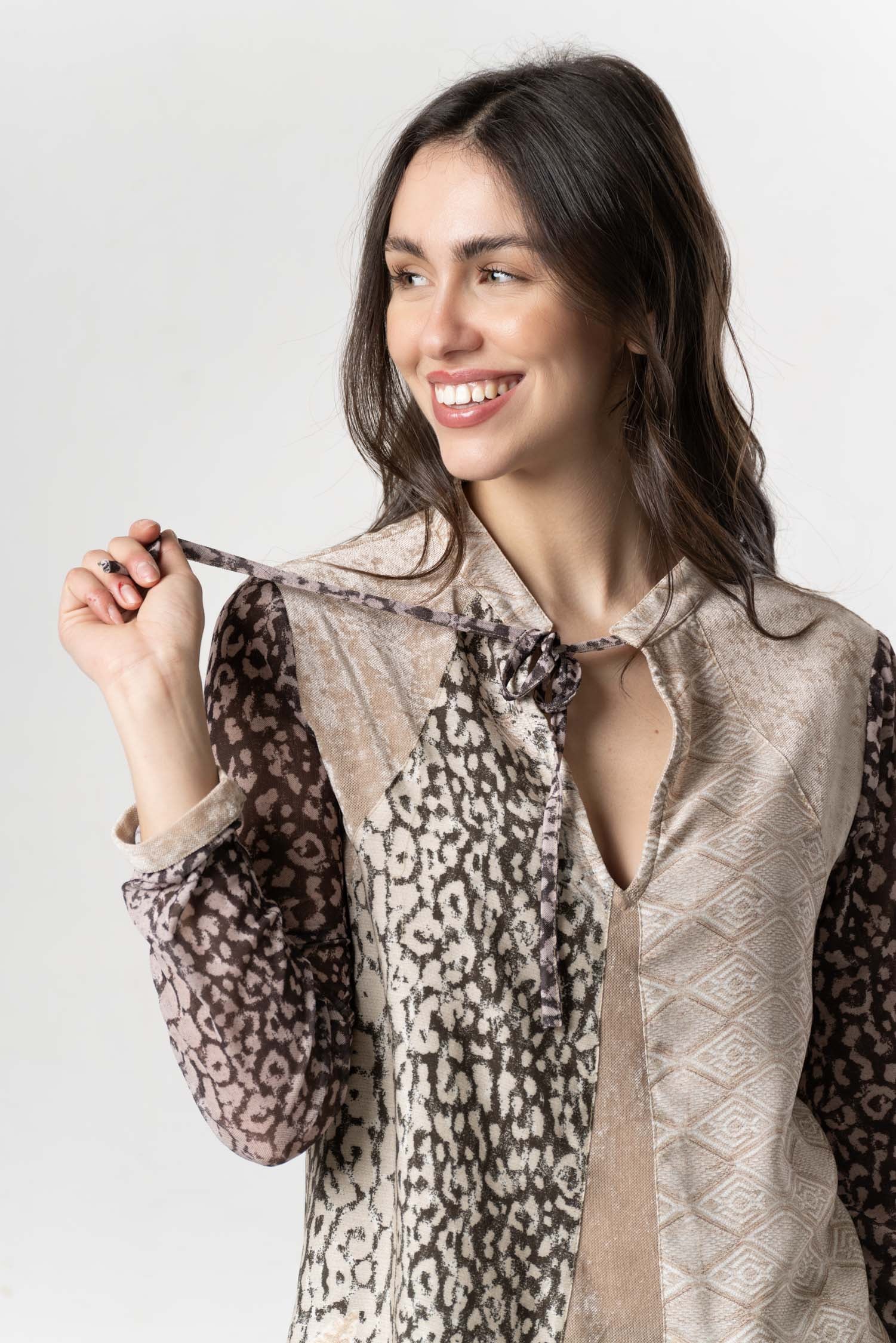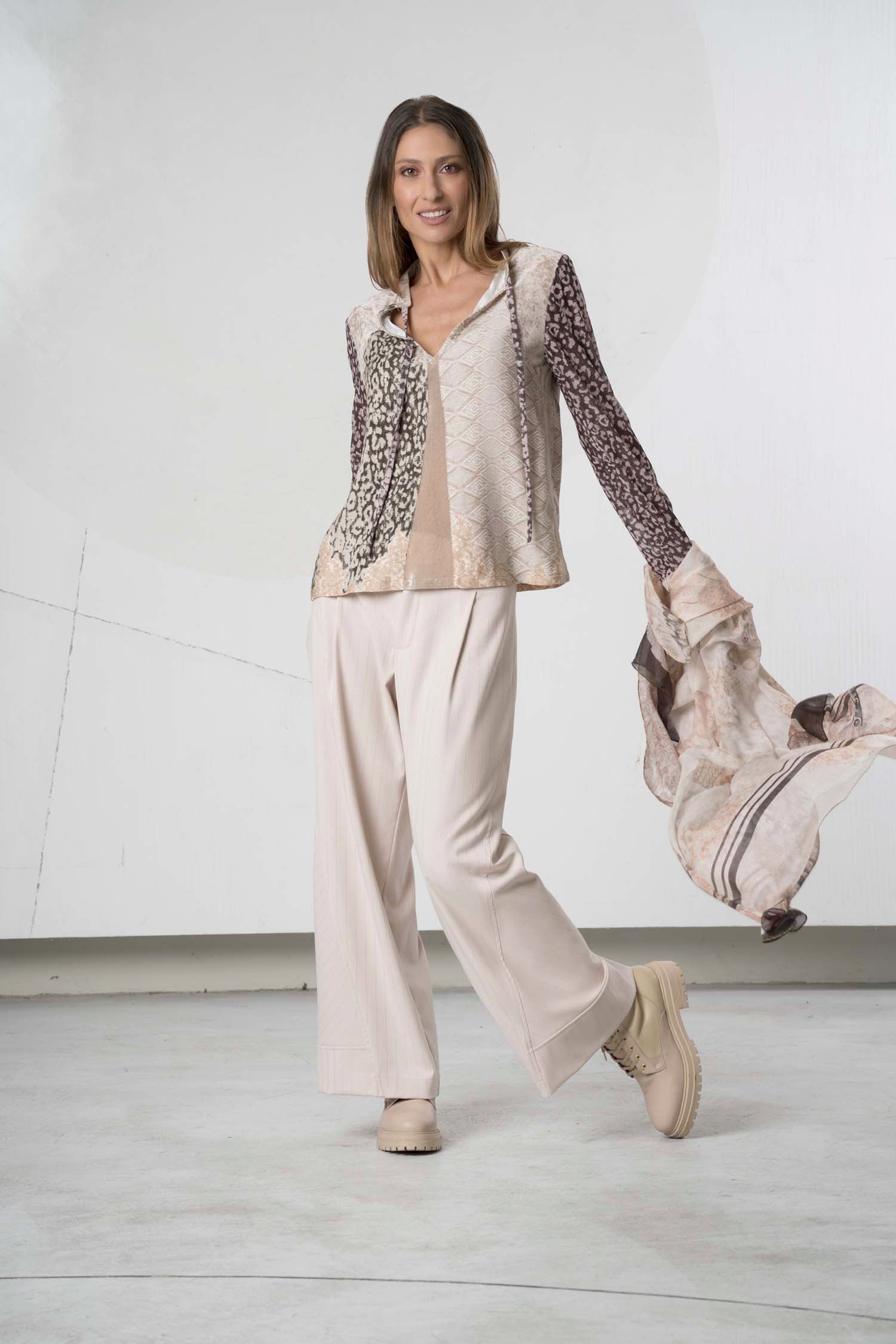 Diese elegante Bluse besticht durch ihr zeitloses Leoparden-Muster in warmen Beige- und Brauntönen. Das durchdachte Design kombiniert hochwertige Materialien – von feiner Baumwolle bis zu edlen Wollmischungen – für optimalen Tragekomfort und Langlebigkeit. Die Farbpalette harmoniert perfekt mit klassischen Basics und verleiht jedem Outfit eine subtile Raffinesse. Ideal für stilbewusste Frauen, die Wert auf Qualität und zeitlose Eleganz legen.