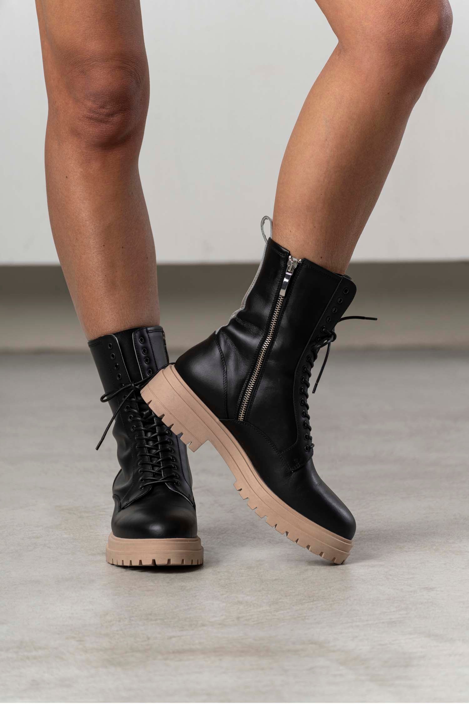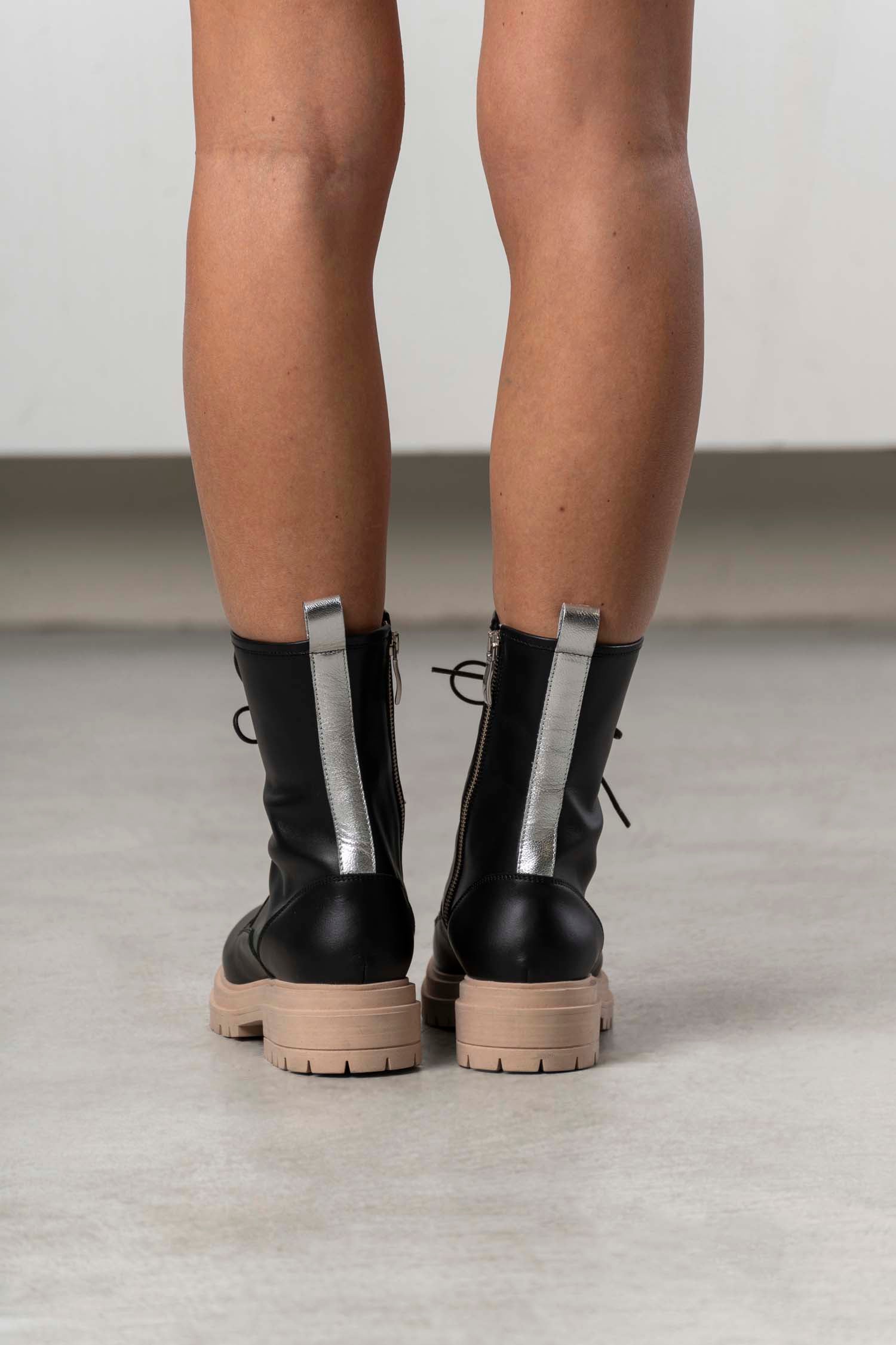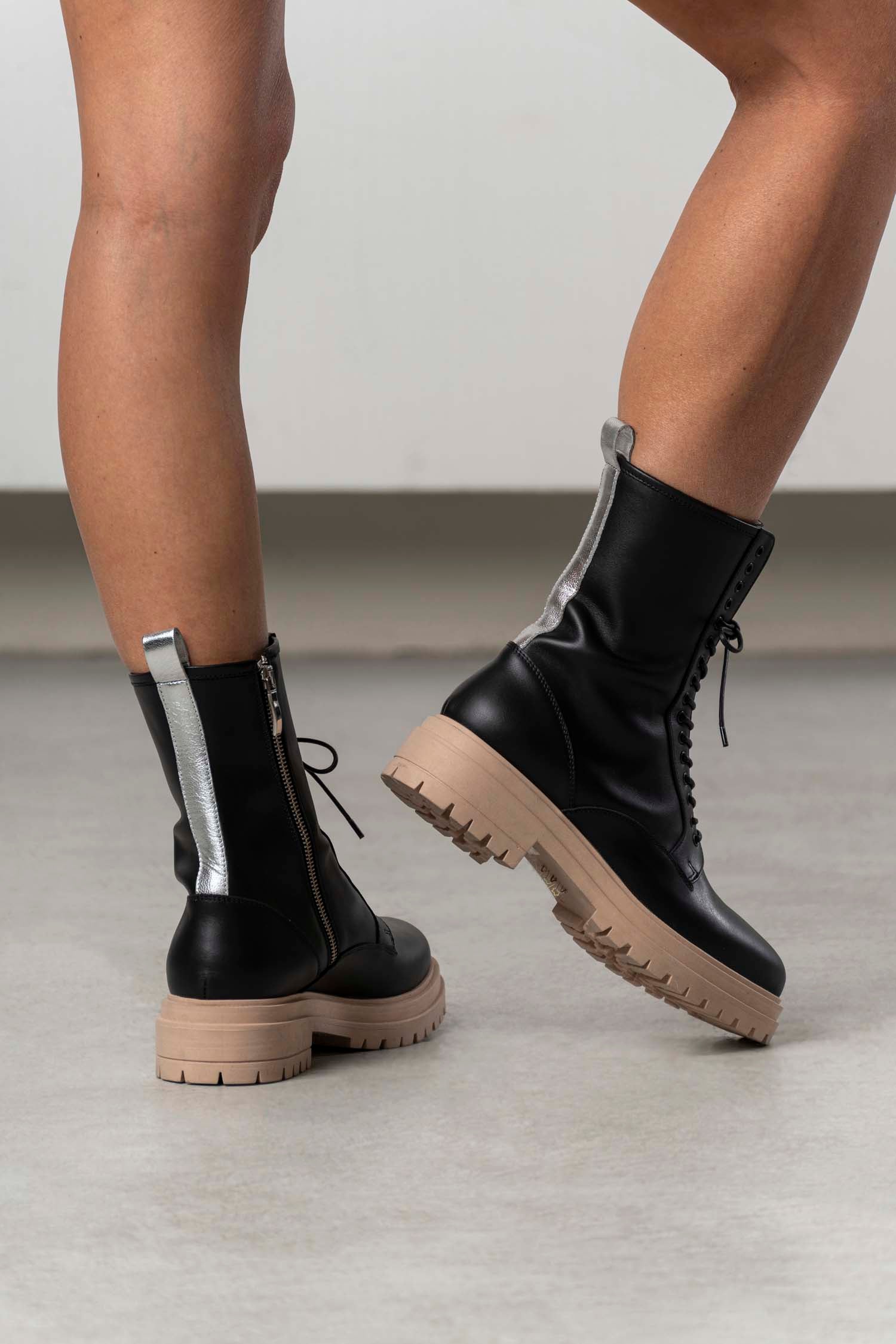 Das knielange Kleid besticht durch die Kombination verschiedener Stoffe in Schwarz und Cremefarbend, die eine elegante und strukturierte Optik erzeugen. Die langärmelige Gestaltung unterstreicht die anspruchsvolle Silhouette und macht das Modell zu einer vielseitigen Wahl für stilbewusste Frauen, die Wert auf hochwertige Verarbeitung und zeitloses Design legen.