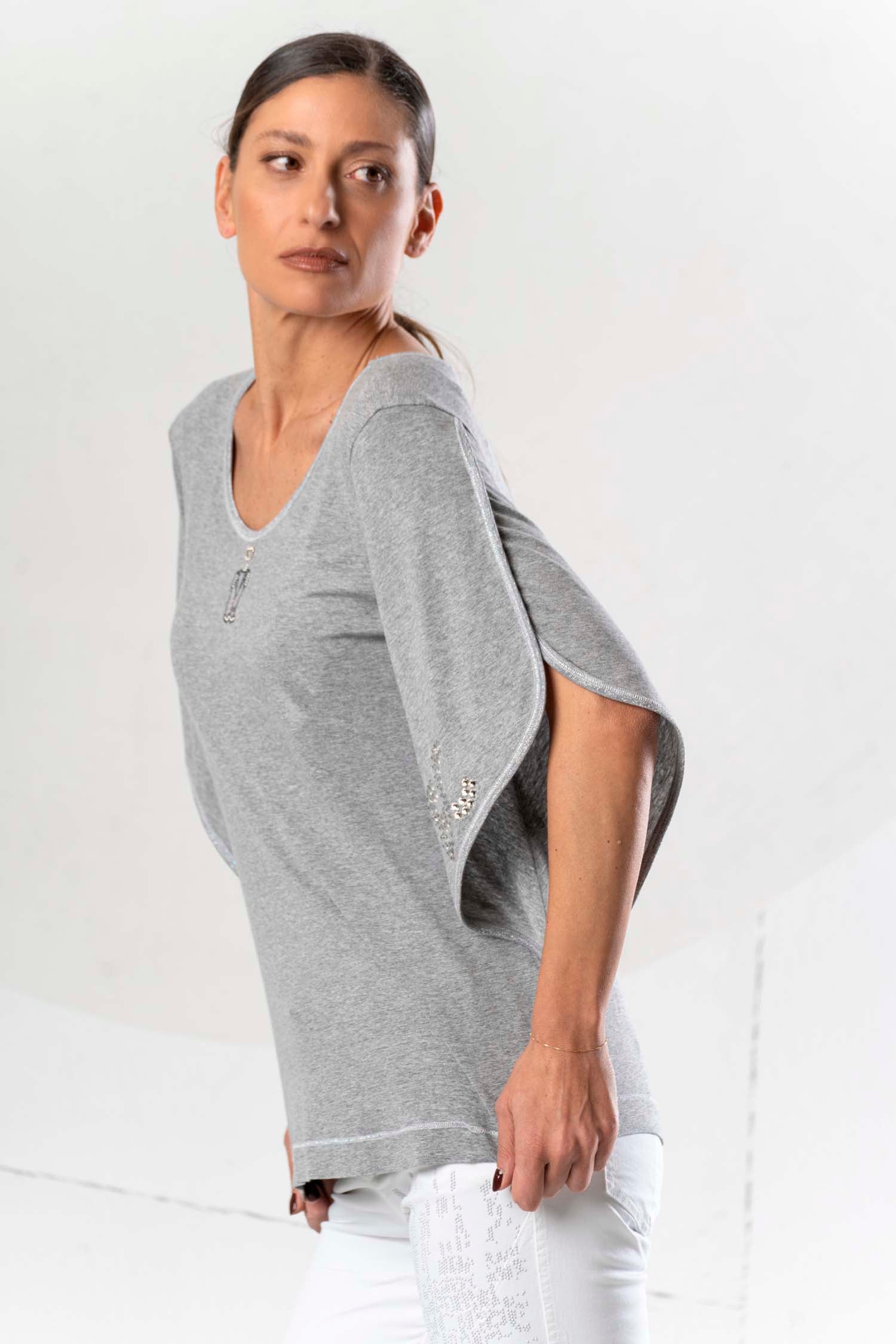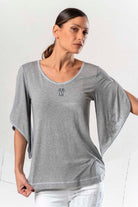 Lockeres Shirt mit Fledermausärmeln und Glanzdetails