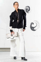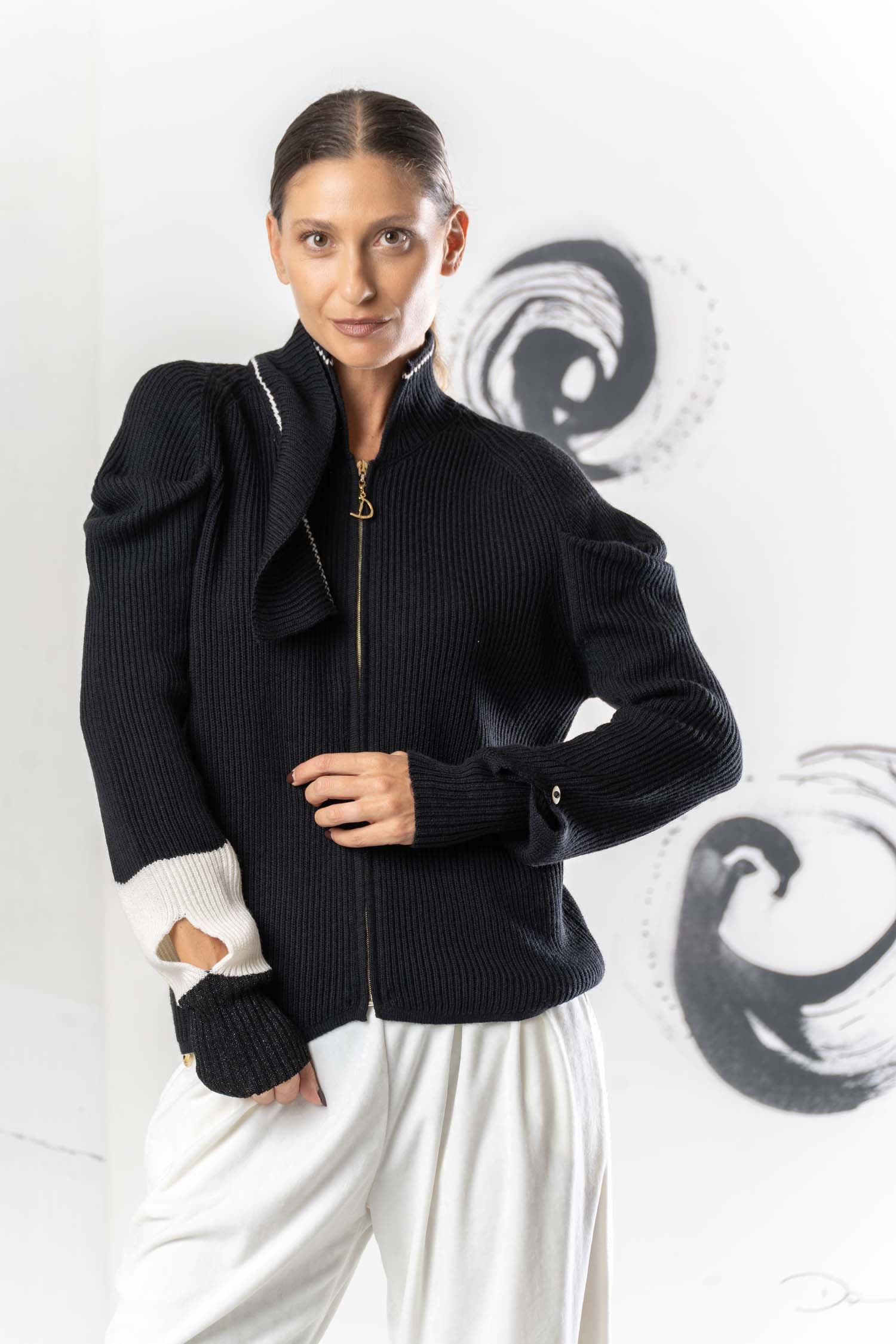 Inspiring, stylish, and chic – the DANIELA DALLAVALLE Brontolo cardigan is the perfect addition to any look. The timeless black is expertly enhanced by white details, creating a distinctive style. Get this stylish cardigan and let its elegance enchant you!