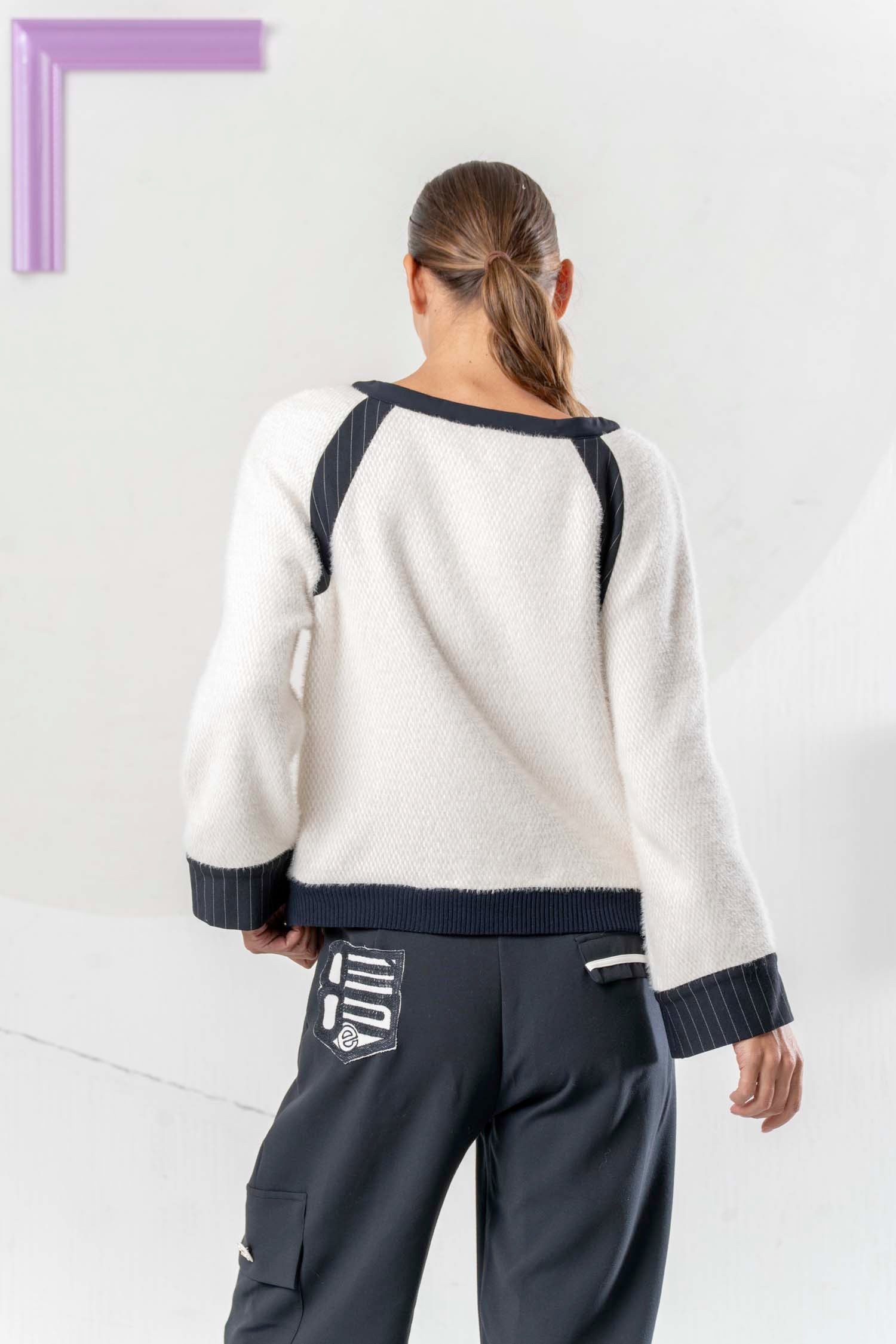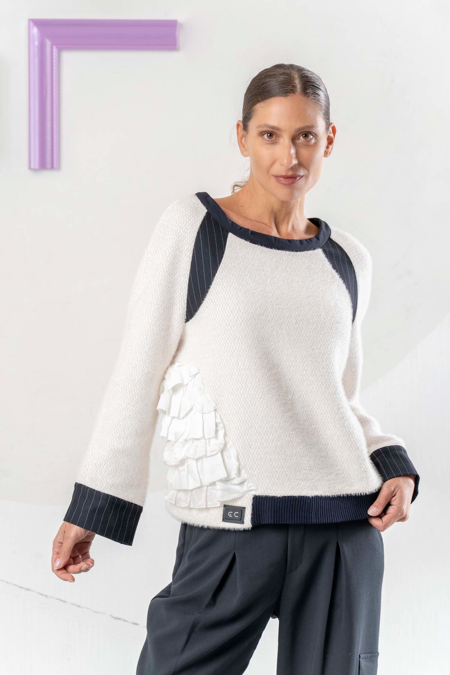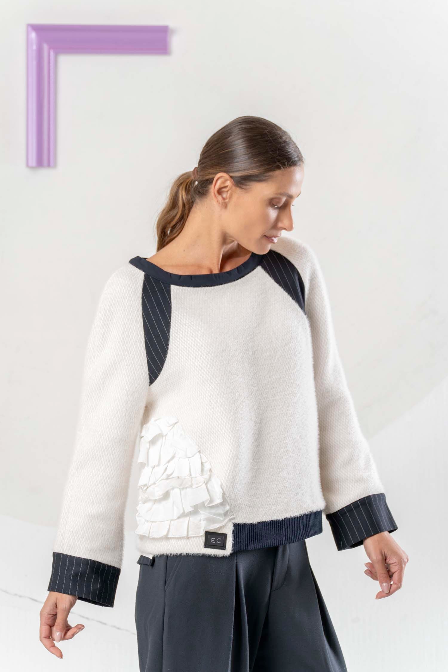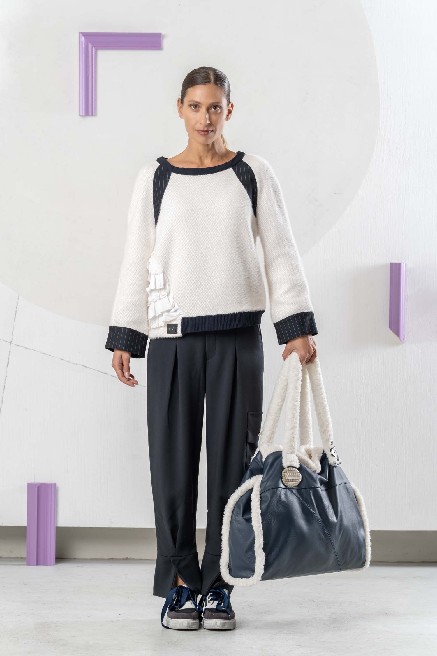 This sophisticated knit sweater impresses with its timeless black and white striped pattern – a classic that never goes out of style. The high-quality knit offers maximum comfort and feels wonderfully soft against the skin. The elegant design can be effortlessly combined with various outfits, while the cozy texture provides warm comfort on chilly days. A versatile favorite for every wardrobe, combining style with coziness.