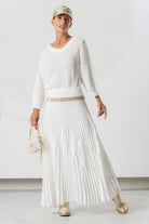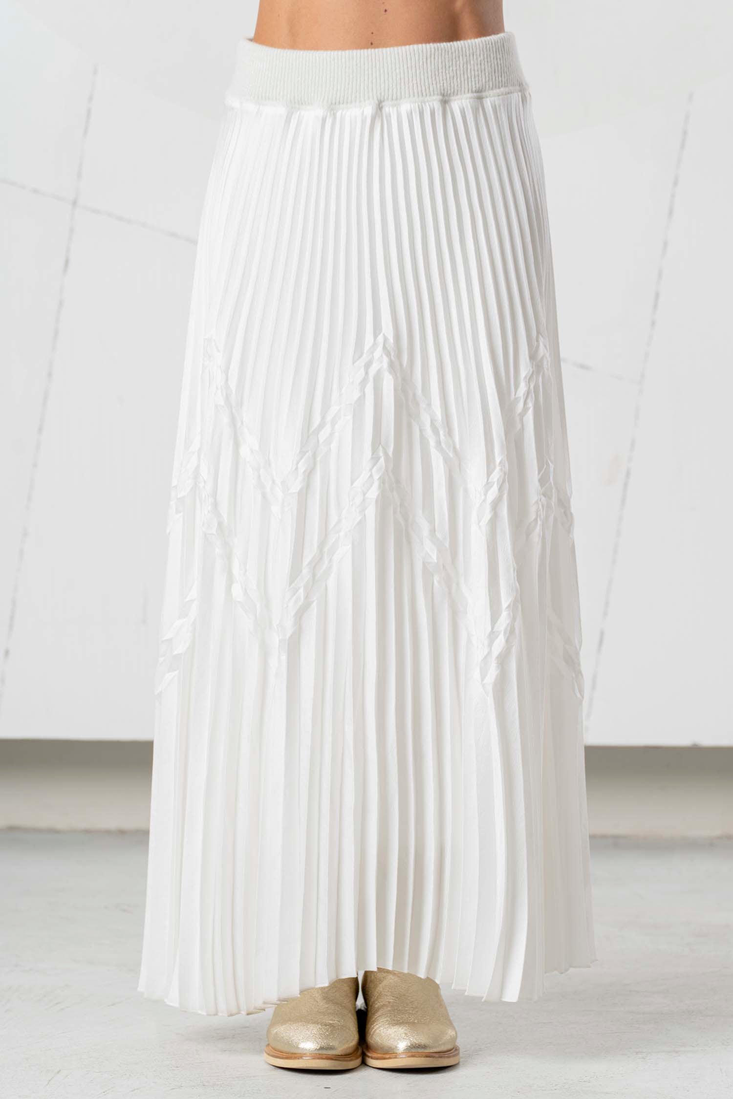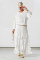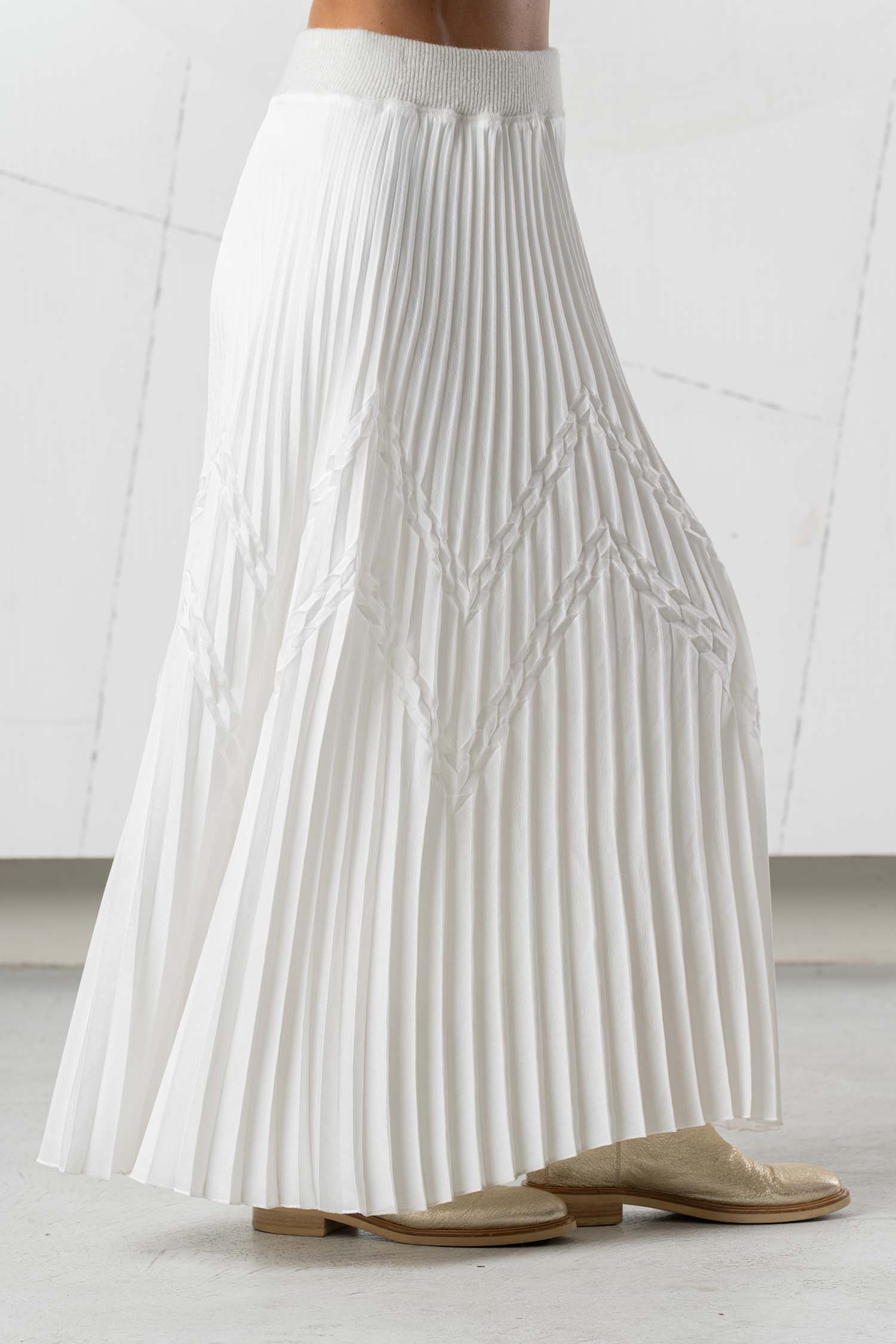 This elegant, long pleated skirt impresses with its high waistband, which creates a flattering silhouette and ensures a comfortable fit. The timeless pleats give the skirt movement and flow, while the versatile color selection offers numerous styling options. A high-quality piece that adds a stylish touch to both the office and festive occasions.