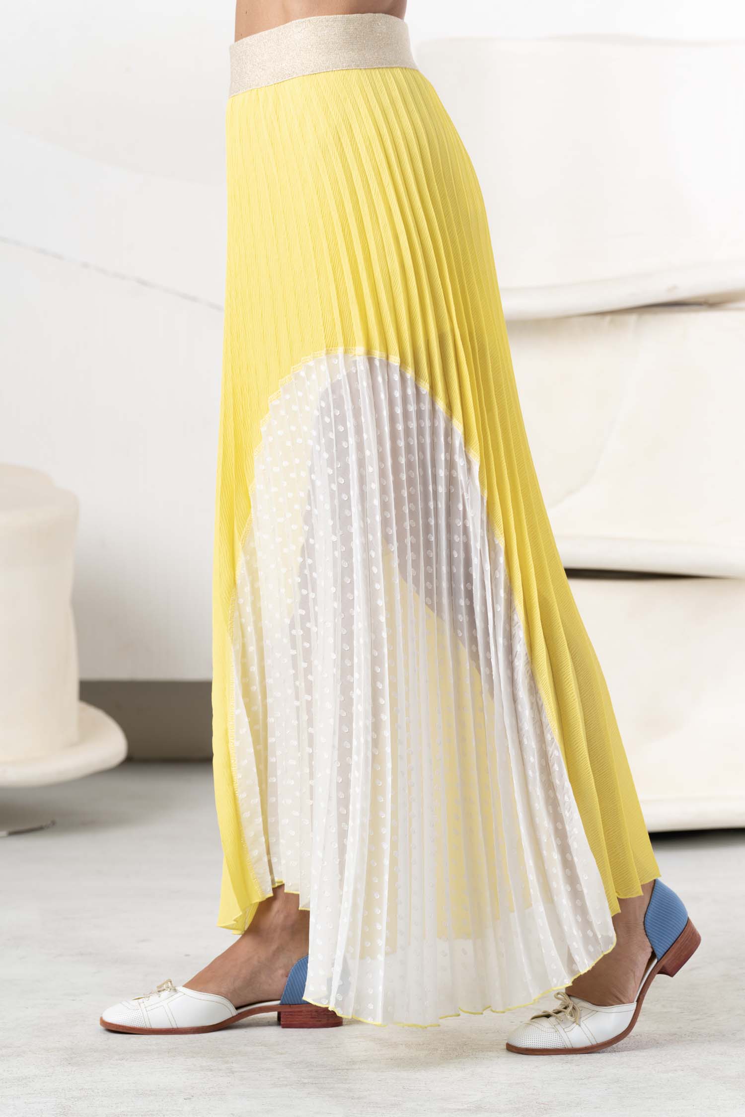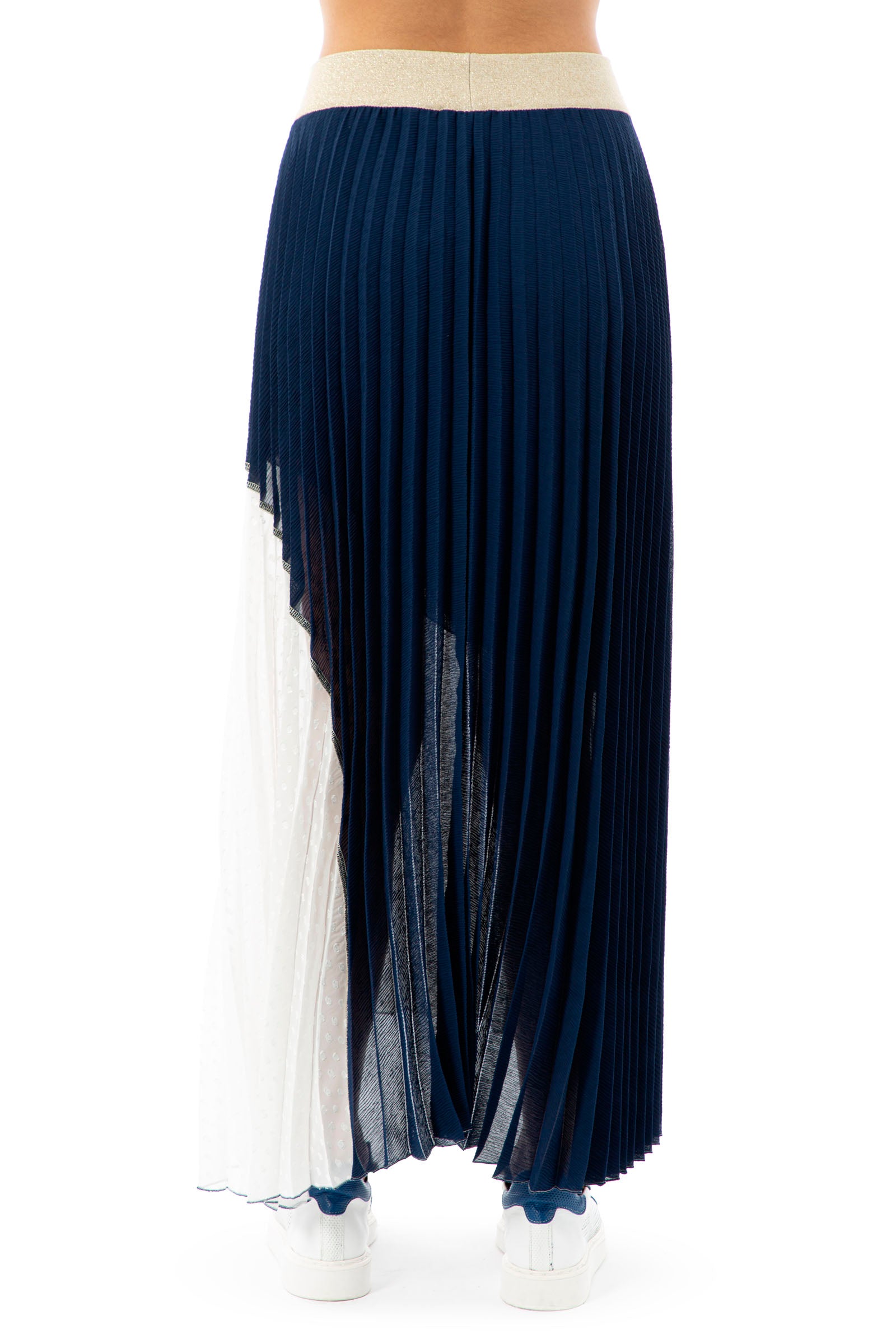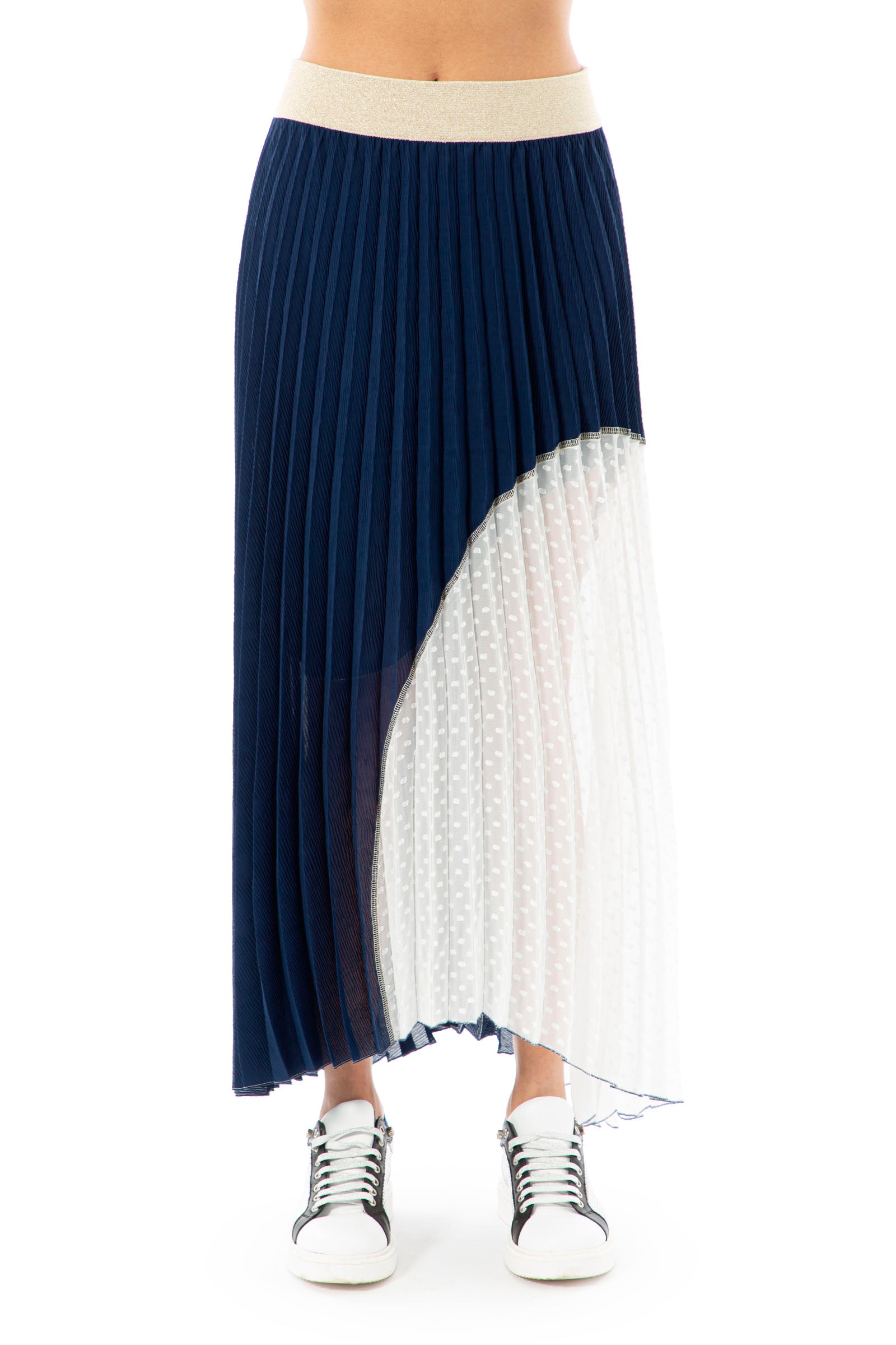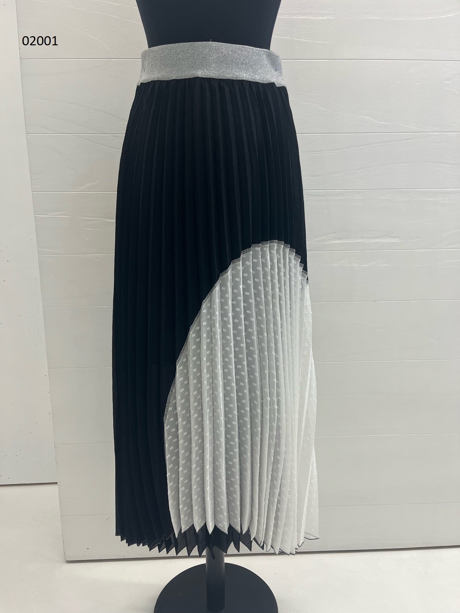 This pleated skirt impresses with its stylish color combination featuring white, creating a fresh and modern look. Thanks to its trendy design, it can be combined in many ways and adds an elegant touch to any outfit. Ideal for fashion-conscious women who appreciate contemporary and sophisticated details.