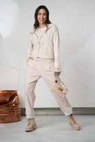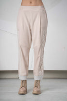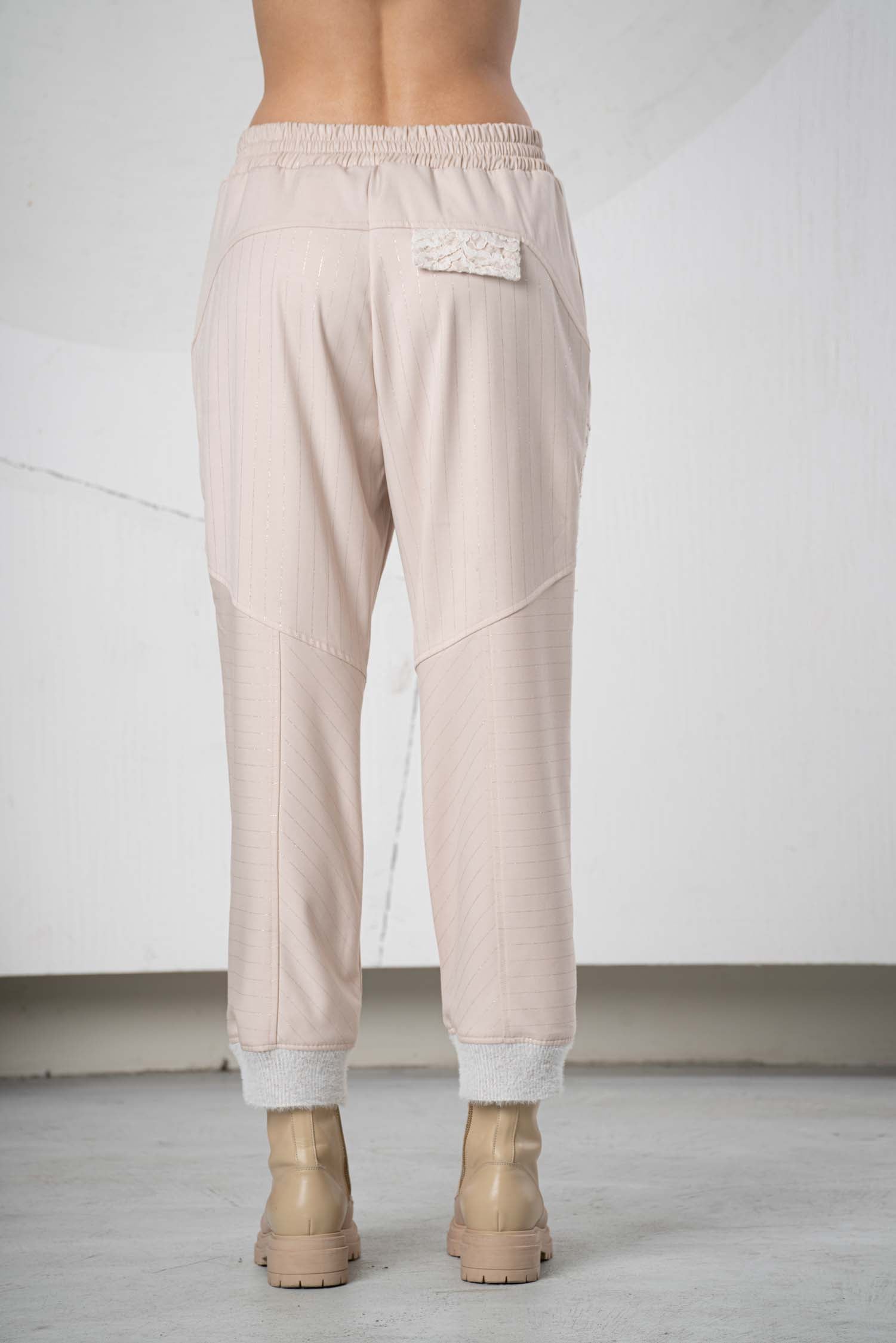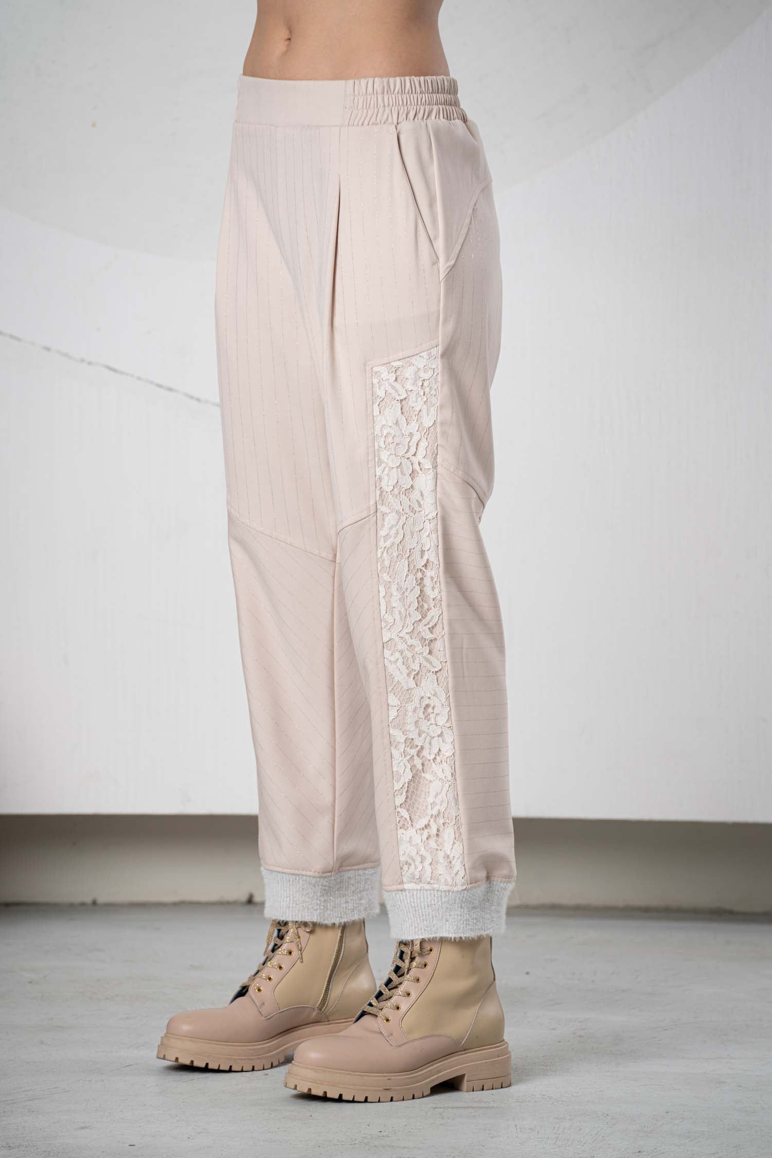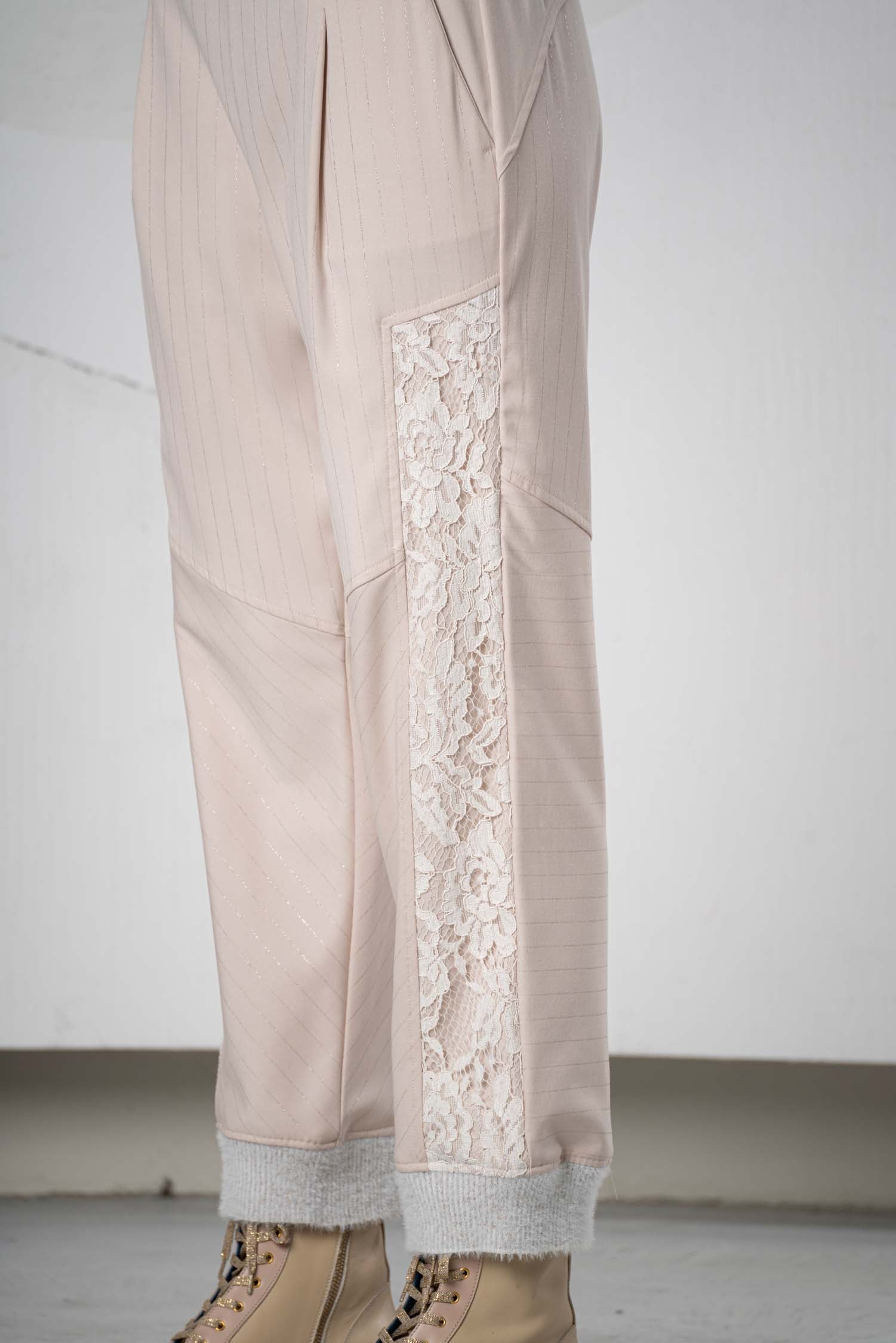 Diese Freizeithose bietet eine stilvolle Kombination aus locker sitzendem Komfort und eleganten Details. Der Bund sorgt für einen sicheren Sitz, während feine Spitzeneinsätze und der zurückhaltende Nadelstreifen-Look das Design raffiniert abrunden. Erhältlich in den Farben Rosa und Schwarz, verbindet sie modischen Anspruch mit vielseitiger Tragbarkeit für entspannte und dennoch anspruchsvolle Looks.