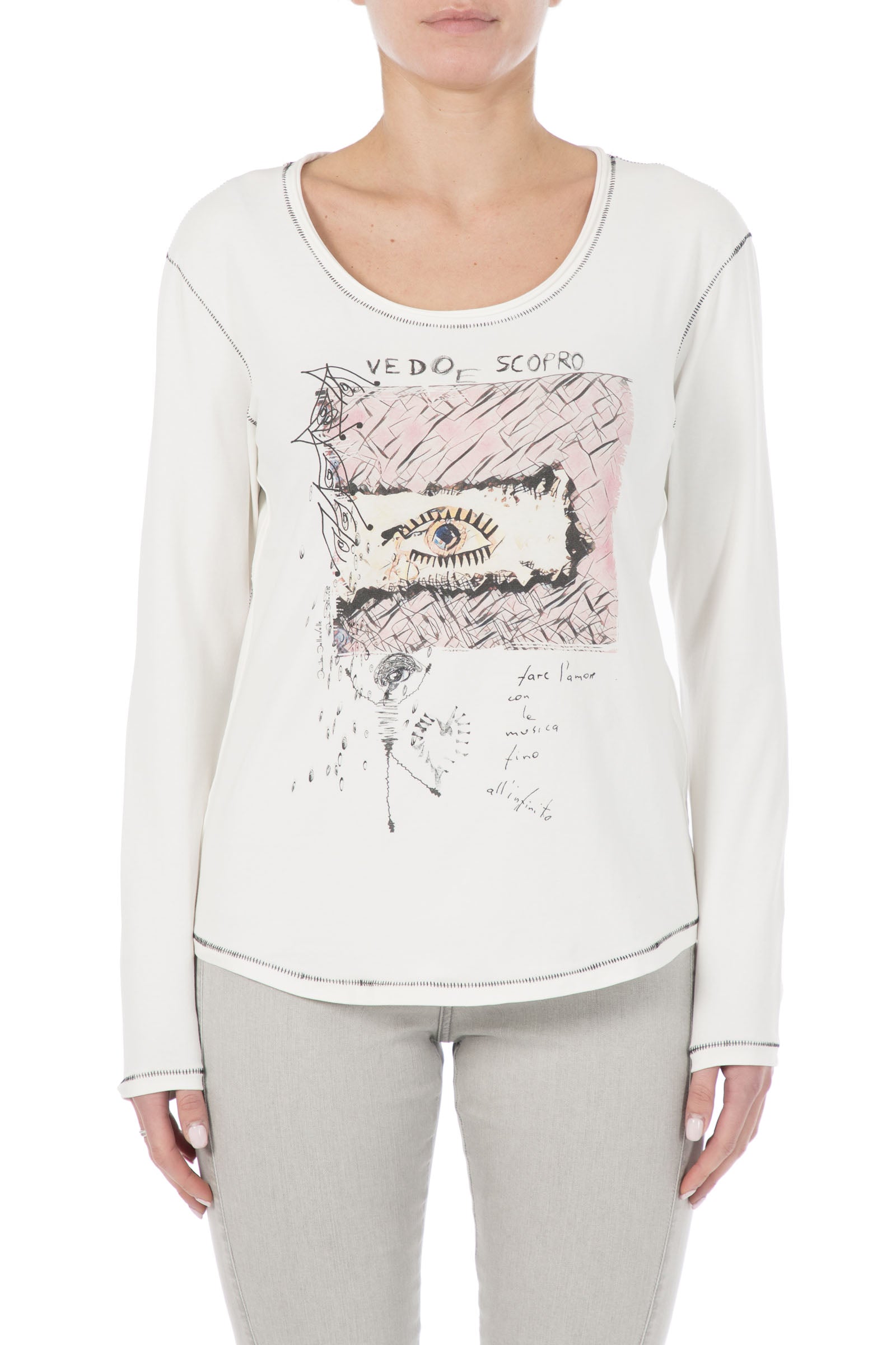 Cream-colored sweatshirt with a signature eye motif. This high-quality piece impresses with its minimalist elegance and timeless color. The iconic design element makes a subtle statement and transforms the sweatshirt into a versatile basic for the modern wardrobe. Perfect for casual everyday looks with exceptional comfort.