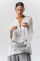 This small evening bag captivates with its stylish, lustrous gold tone and elegant semi-circular shape. Its compact design makes it the ideal companion for festive occasions, while the shimmering finish adds a touch of sophistication to any outfit. Practical yet fashionable, it creates subtle highlights and perfectly completes your evening look.