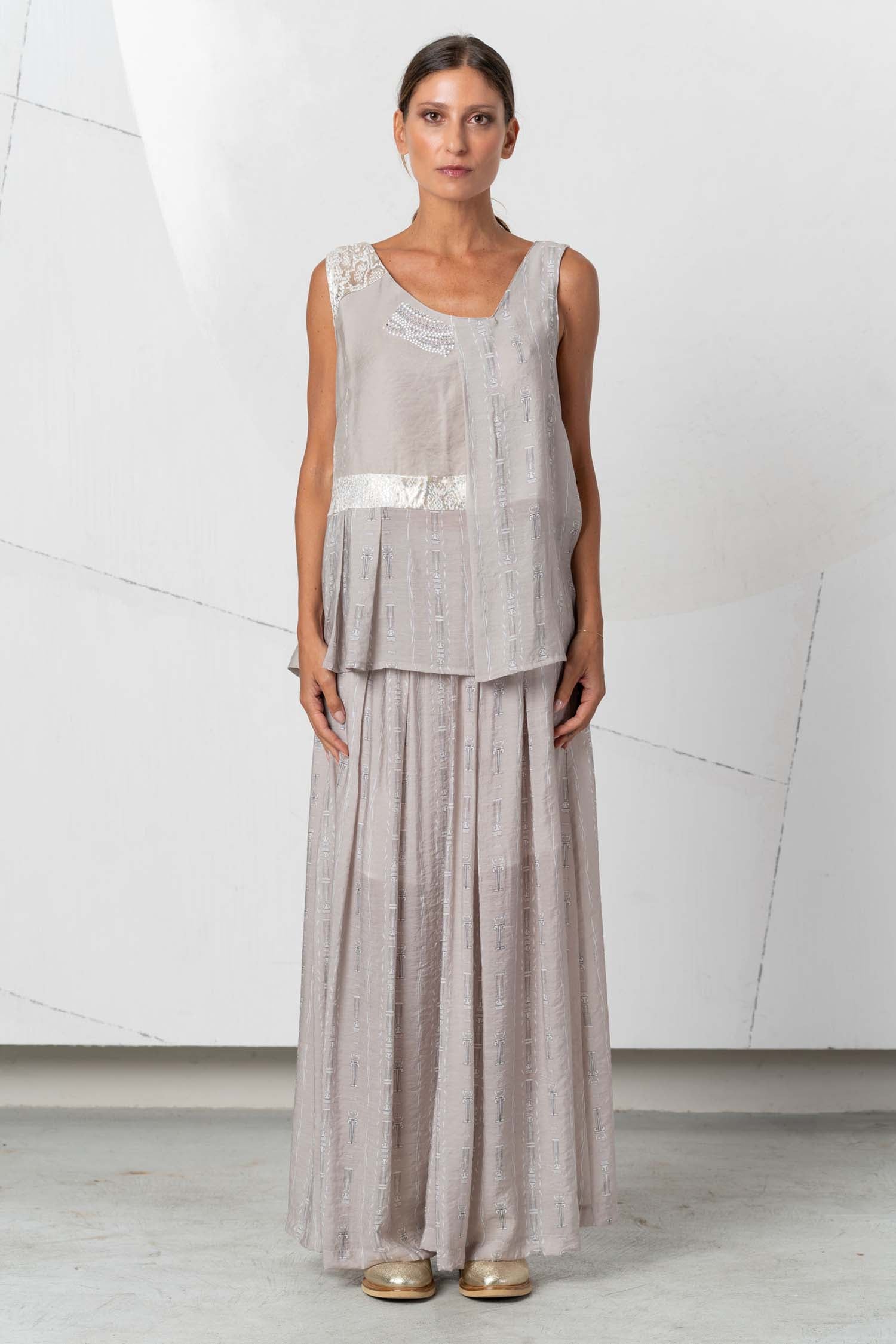 This stylish, airy beige tank top from ELISA CAVALETTI is perfect for summer. It adds a touch of elegance and lightness to any outfit. The high-quality material also ensures a comfortable feel. Get the St. Neoclassico tank top now and feel like a goddess!