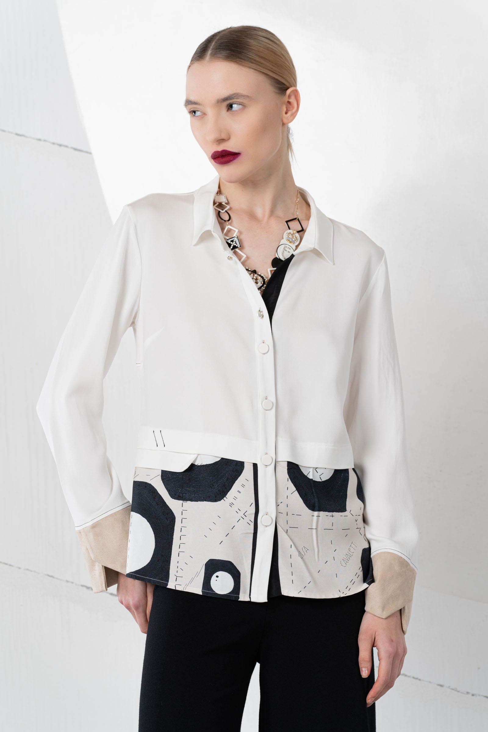 This white blouse impresses not only with its stylish design but also with its beautiful motif. A perfect choice for anyone who likes to stand out from the crowd and make a stylish impression. Create unique and inspiring looks with this blouse!