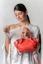 Diese modische Handtasche in strahlendem Korallenrot setzt Akzente mit ihrem auffälligen Ketten-Accessoire. Ideal für den Alltag oder besondere Anlässe, bietet sie nicht nur genug Platz für Ihre Essentials, sondern verleiht Ihrem Look auch einen eleganten Touch. Perfekt für stilbewusste Frauen, die ein Statement setzen möchten!