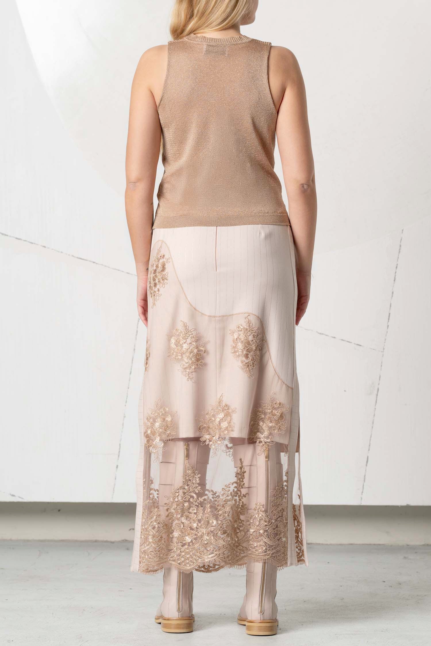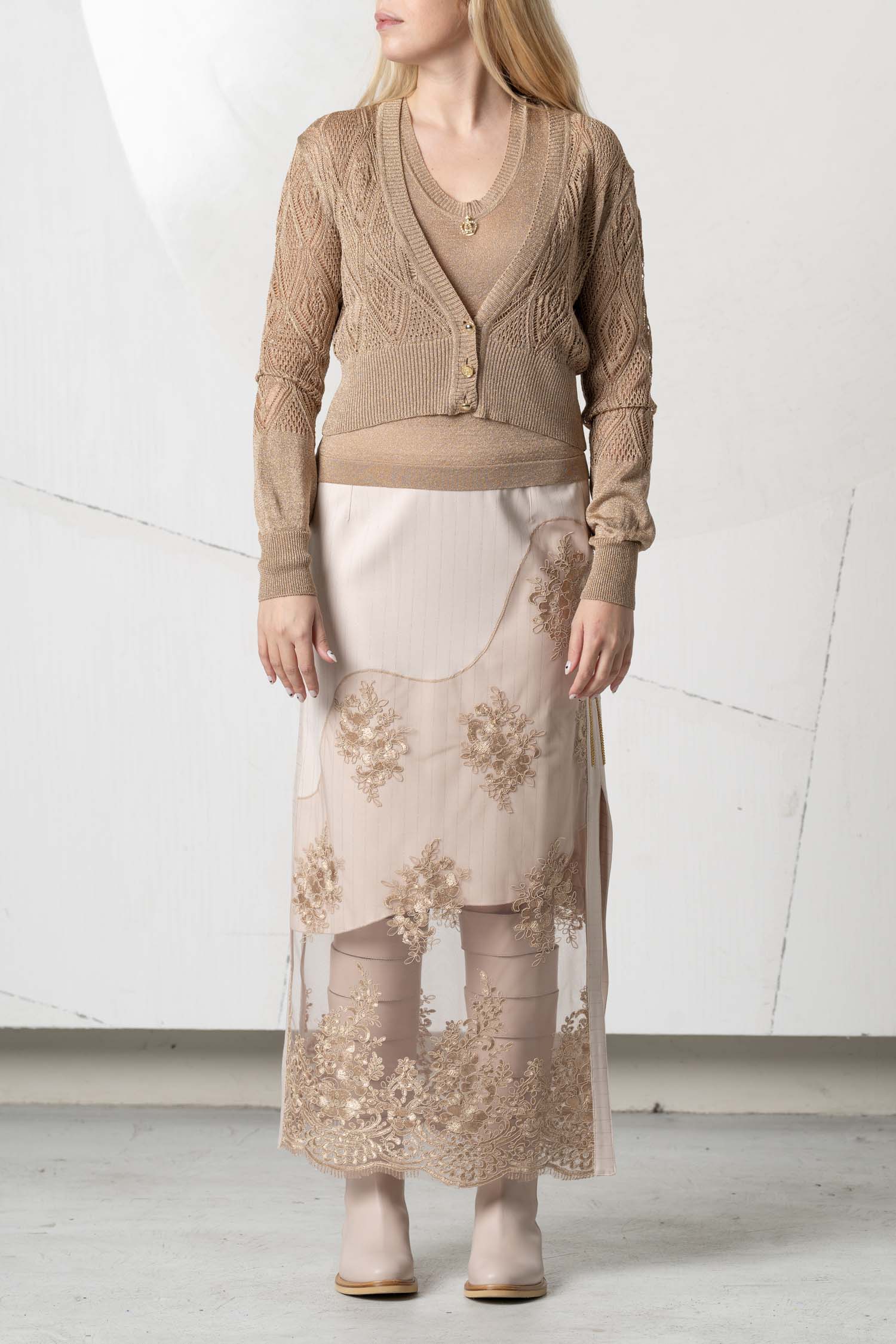 This knitted top impresses with its light brown hue and wide straps, creating a stylish and elegant look. The high-quality workmanship guarantees comfortable wear and versatile styling options – perfect for sophisticated outfits.