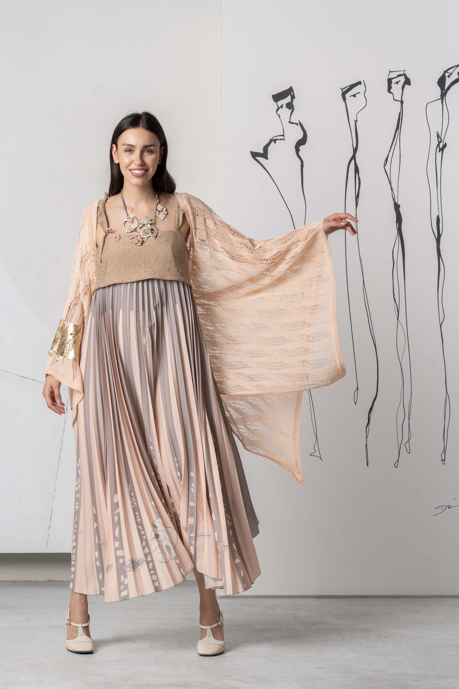 The ELISA CAVALETTI Immaginario knit cardigan combines stylish extravagance with a harmonious interplay of beige, orange, and pink. The high-quality knit fabric ensures comfortable wear and adds a special touch to any outfit. This style is ideal for fashion-conscious women who value individual accents and superior craftsmanship.