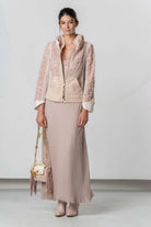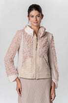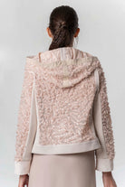 Elegante Jacke mit Kapuze und aufwendig strukturierter Oberfläche. Die Kombination aus feinen Pailletten, weichen Materialeinsätzen und dekorativem Reißverschluss verleiht dem Modell eine edle, moderne Ausstrahlung. Vielseitig kombinierbar und ideal für stilvolle Alltags- und Anlasslooks.