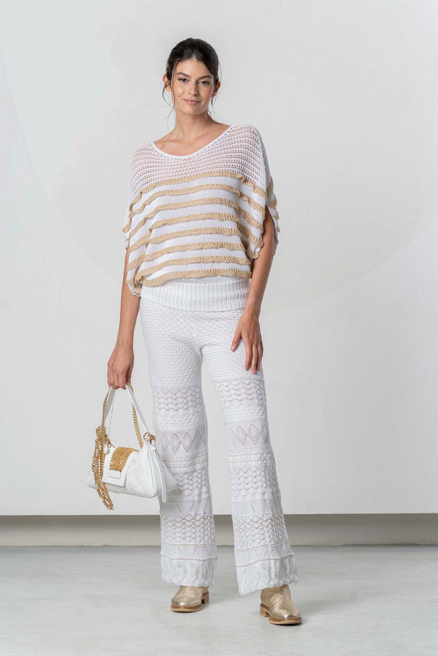 ELISA CAVALETTI Streifenstricktop in Weiß und Beige