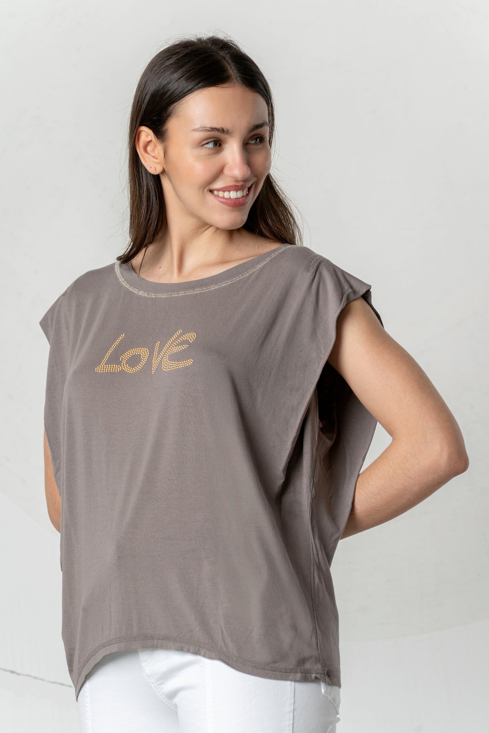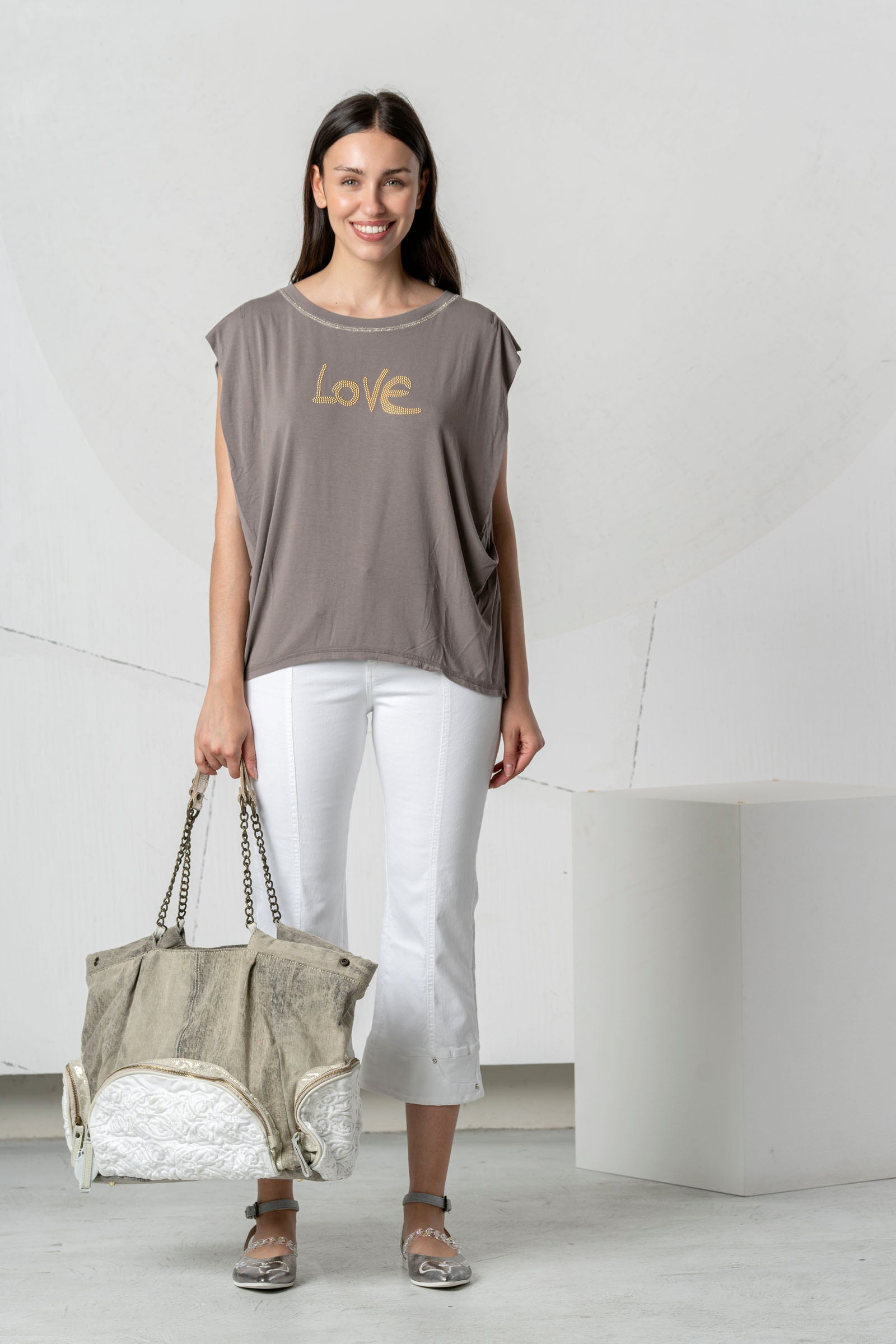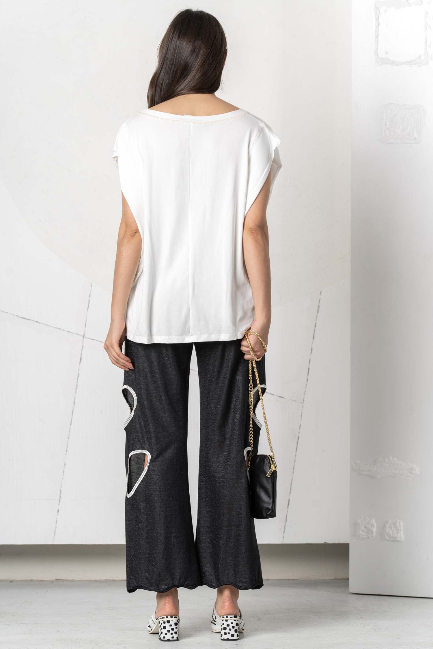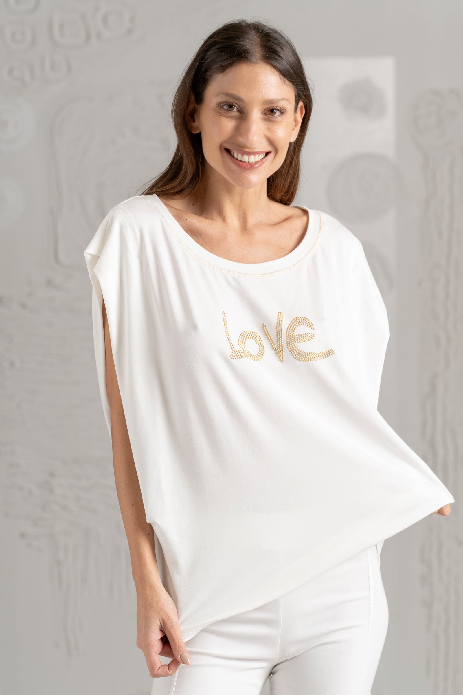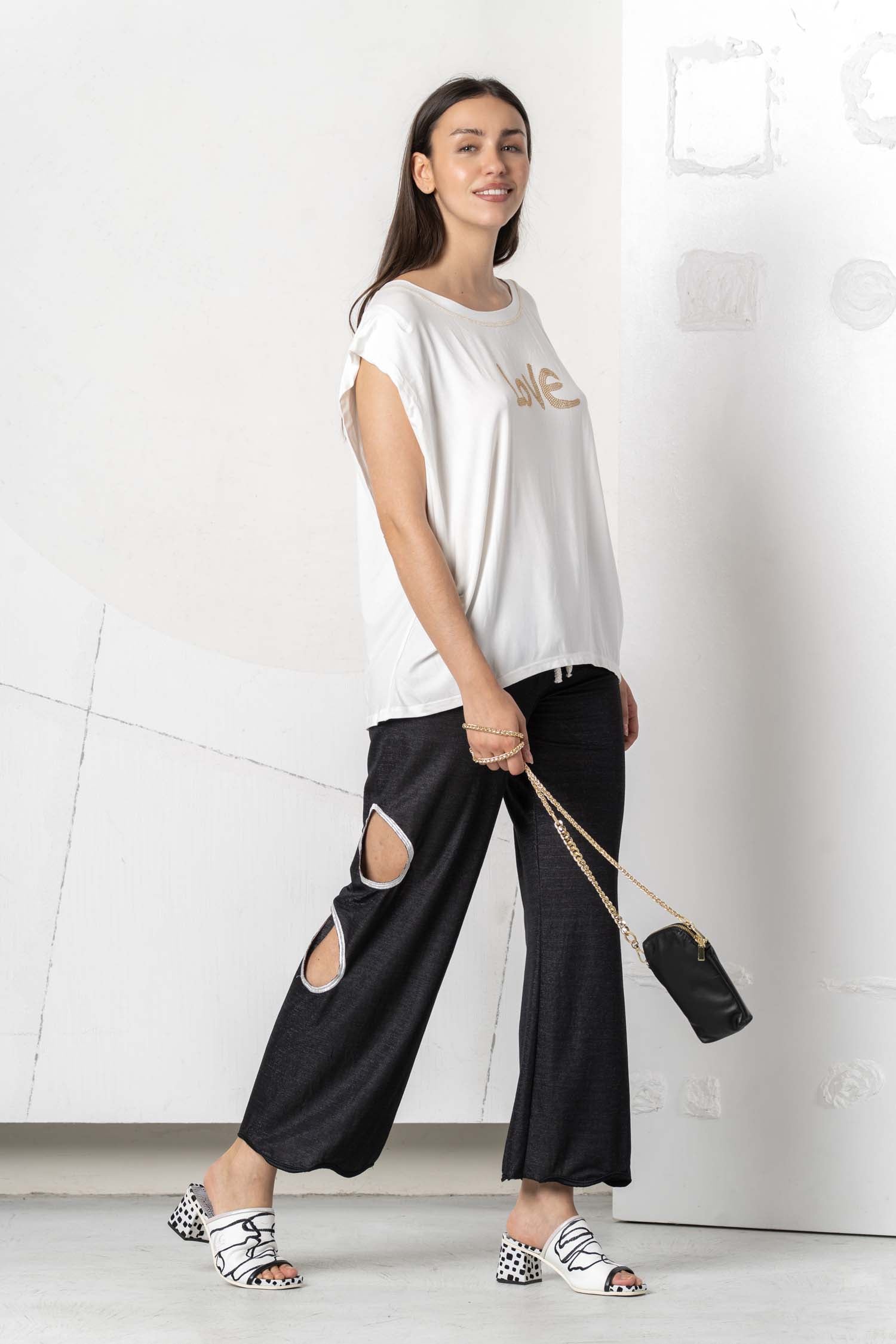 Discover the beautiful ELISA CAVALETTI T-shirt in white, light blue, and dark blue. Featuring the word "Love," this T-shirt is a real eye-catcher. Show your love of fashion and own this unique T-shirt, which impresses with its design and colors!