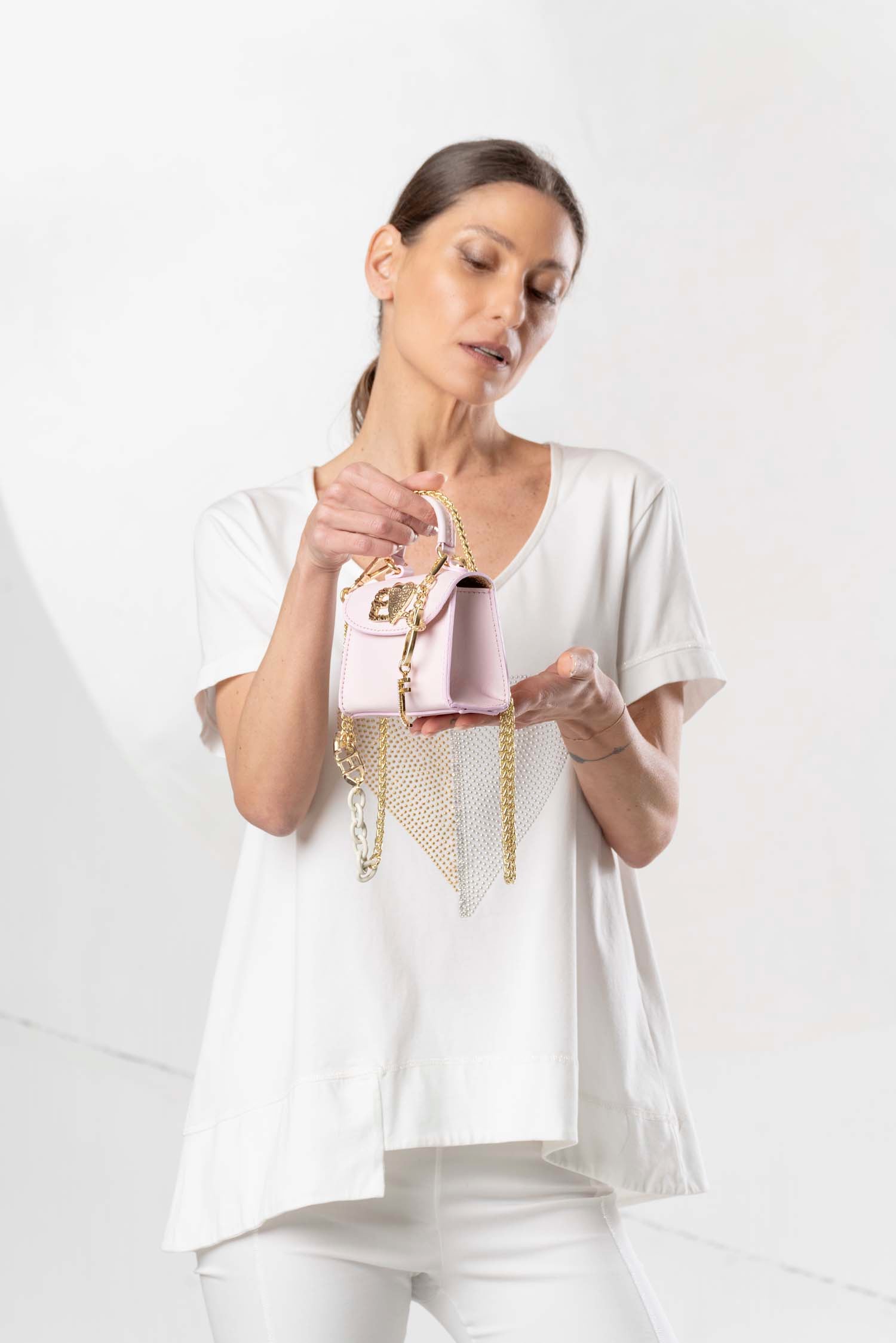 Add a touch of luxury to your outfit with this small genuine leather bag. The gold-tone hardware gives the bag a special touch. Available in various colors, this bag is an essential accessory for any occasion.