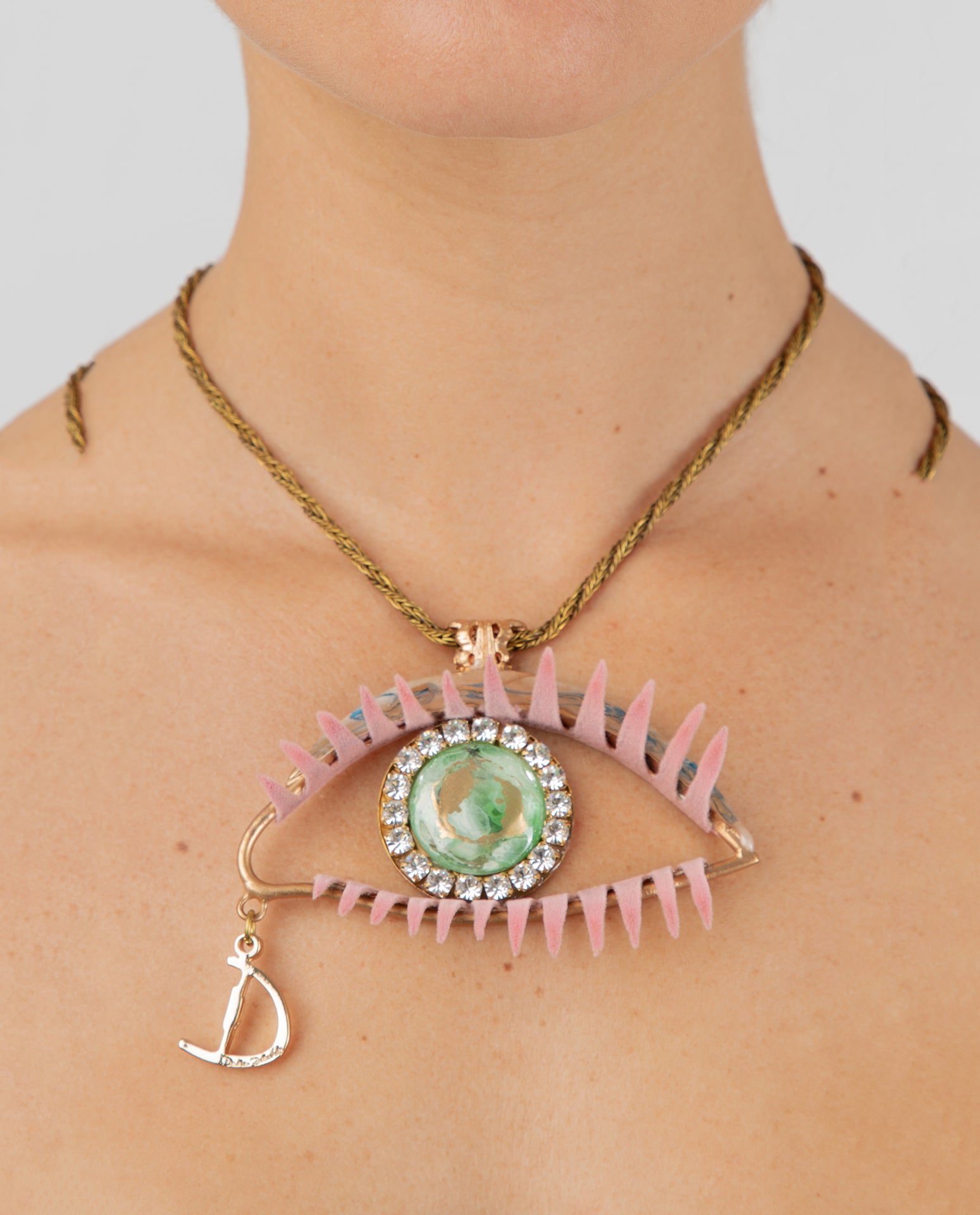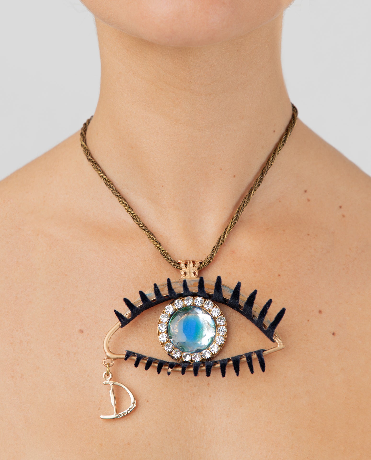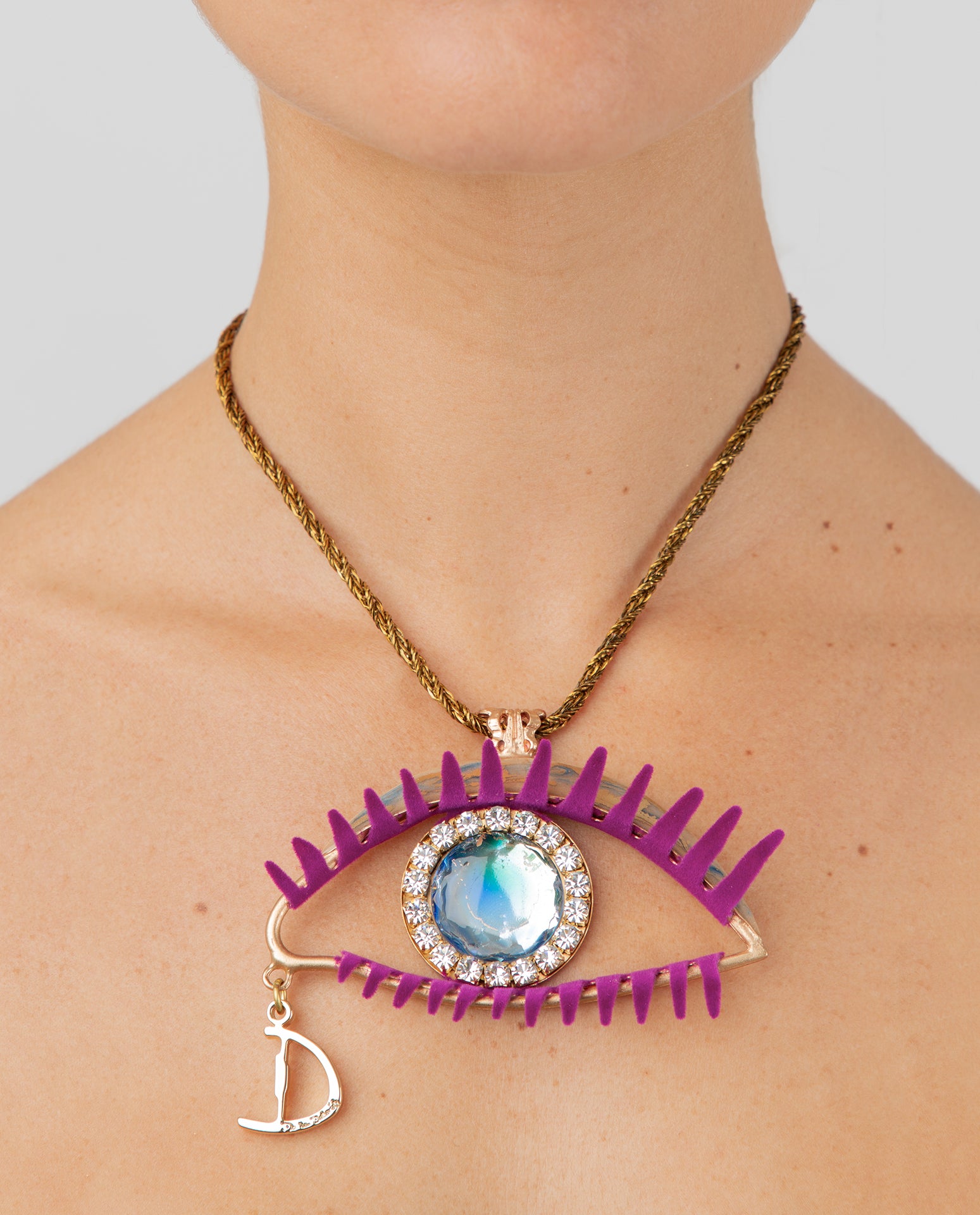Discover your beauty with the DANIELA DALAVALLE Eye Necklace! Shine with this extravagant piece of jewelry from DANIELA DALAVALLE. The necklace is adorned with a large eye with eyelashes. Let yourself be enchanted by the elegance and surreal charm of this piece!