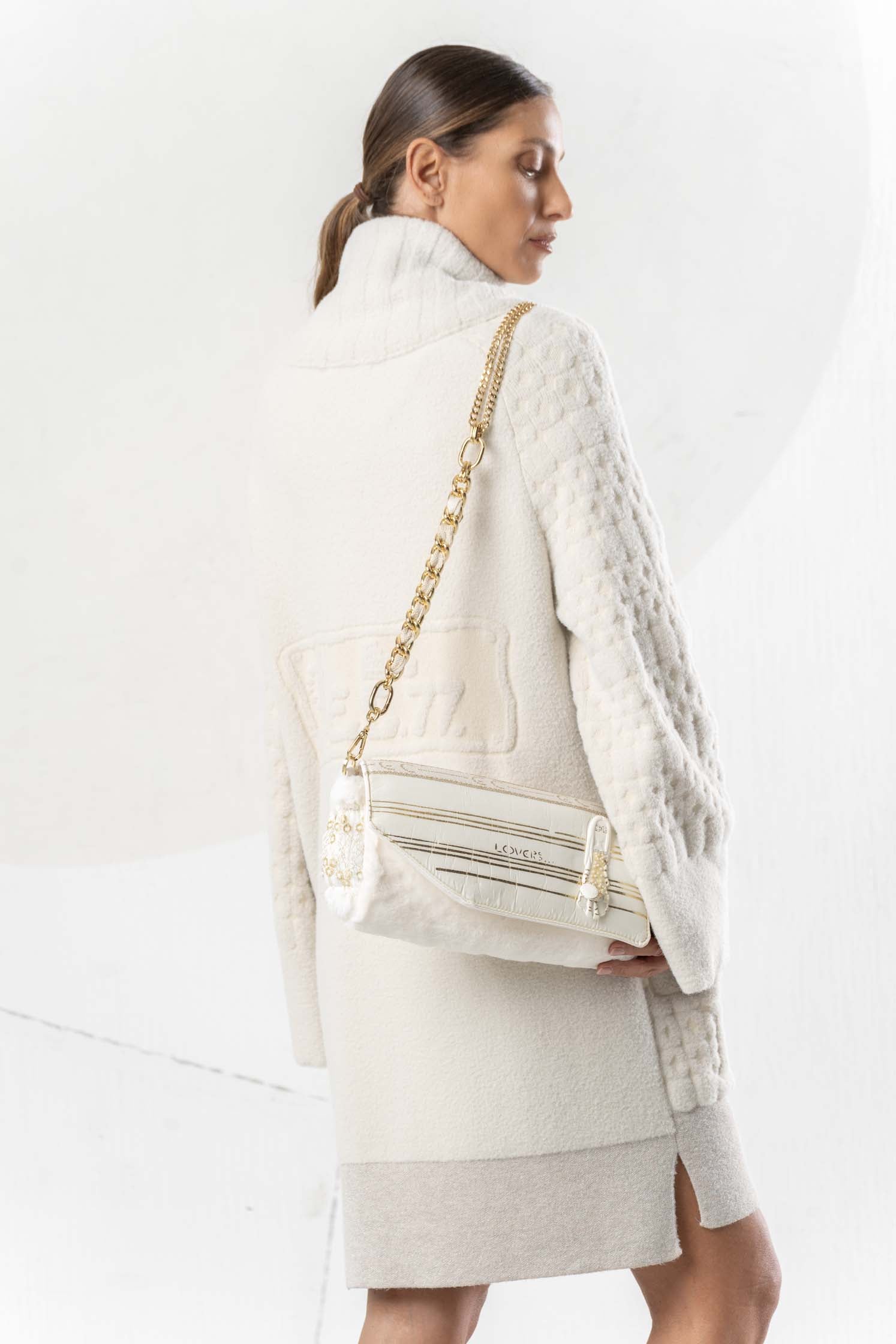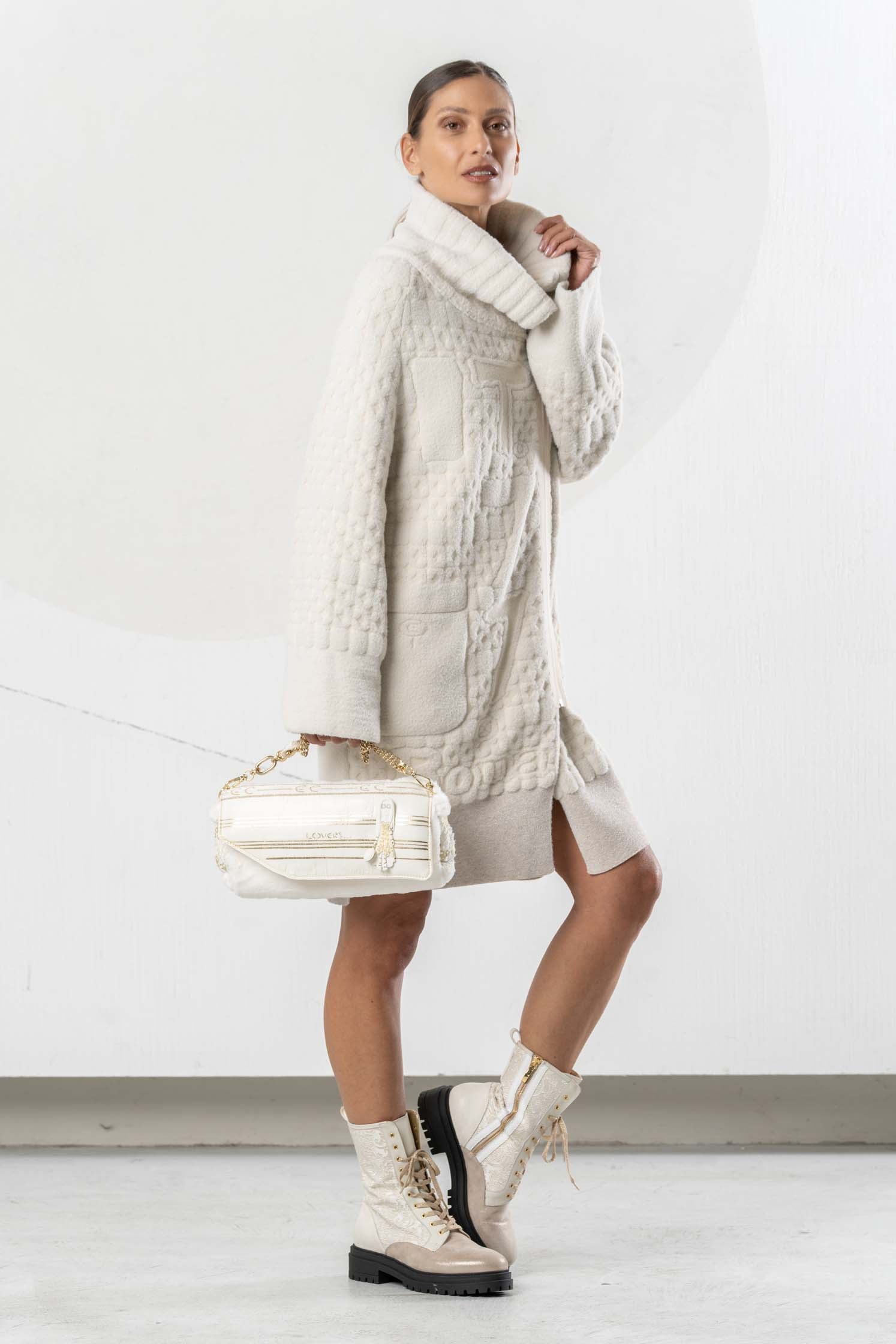 The perfect companion for every occasion: This rectangular baguette bag in elegant cream impresses with its timeless design and luxurious faux fur material. Its compact shape fits easily under the arm, yet offers ample space for your essentials. Its sophisticated look instantly adds a touch of refinement to any outfit – whether for dinner, shopping, or everyday wear. A must-have for anyone who appreciates stylish accessories.