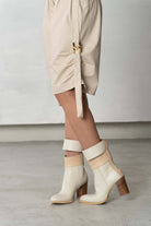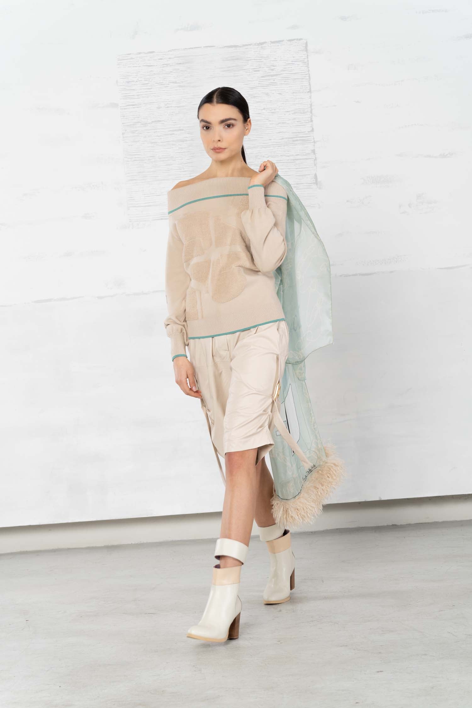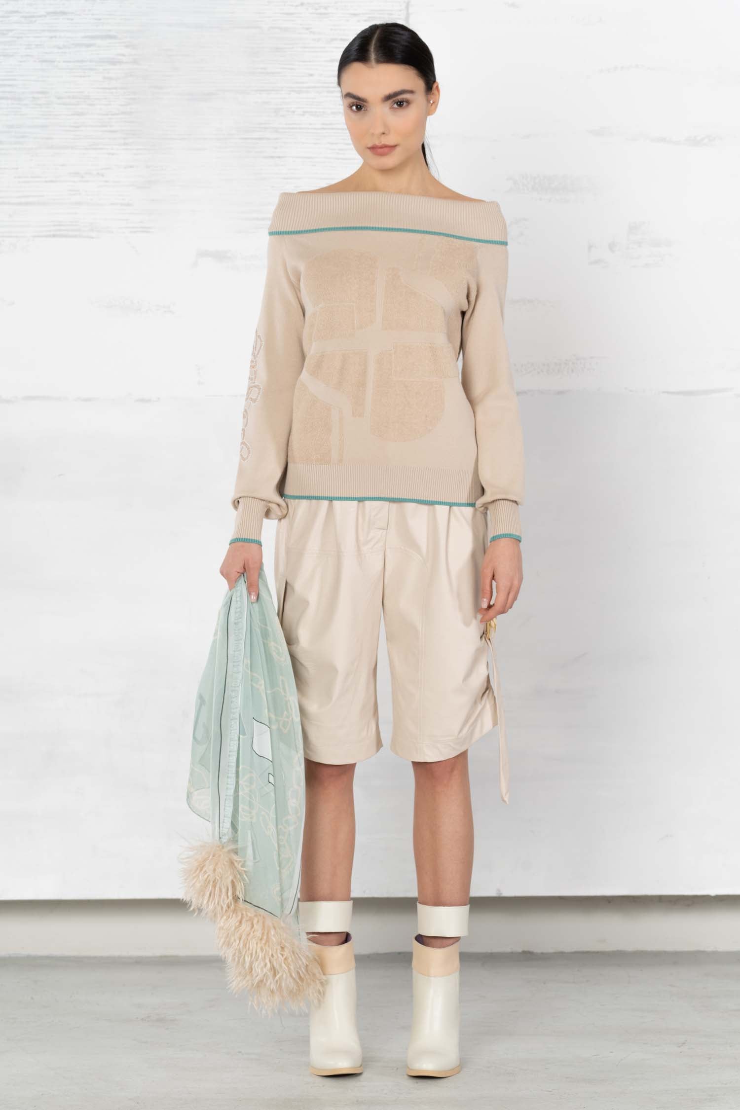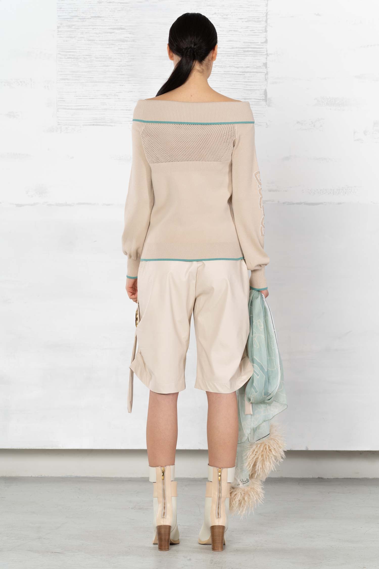 These knee-length trousers impress with their stylish, understated beige color and the sophisticated ruching that ensures a customized fit. The design combines elegance and comfort, ideal for sophisticated looks with a modern touch.