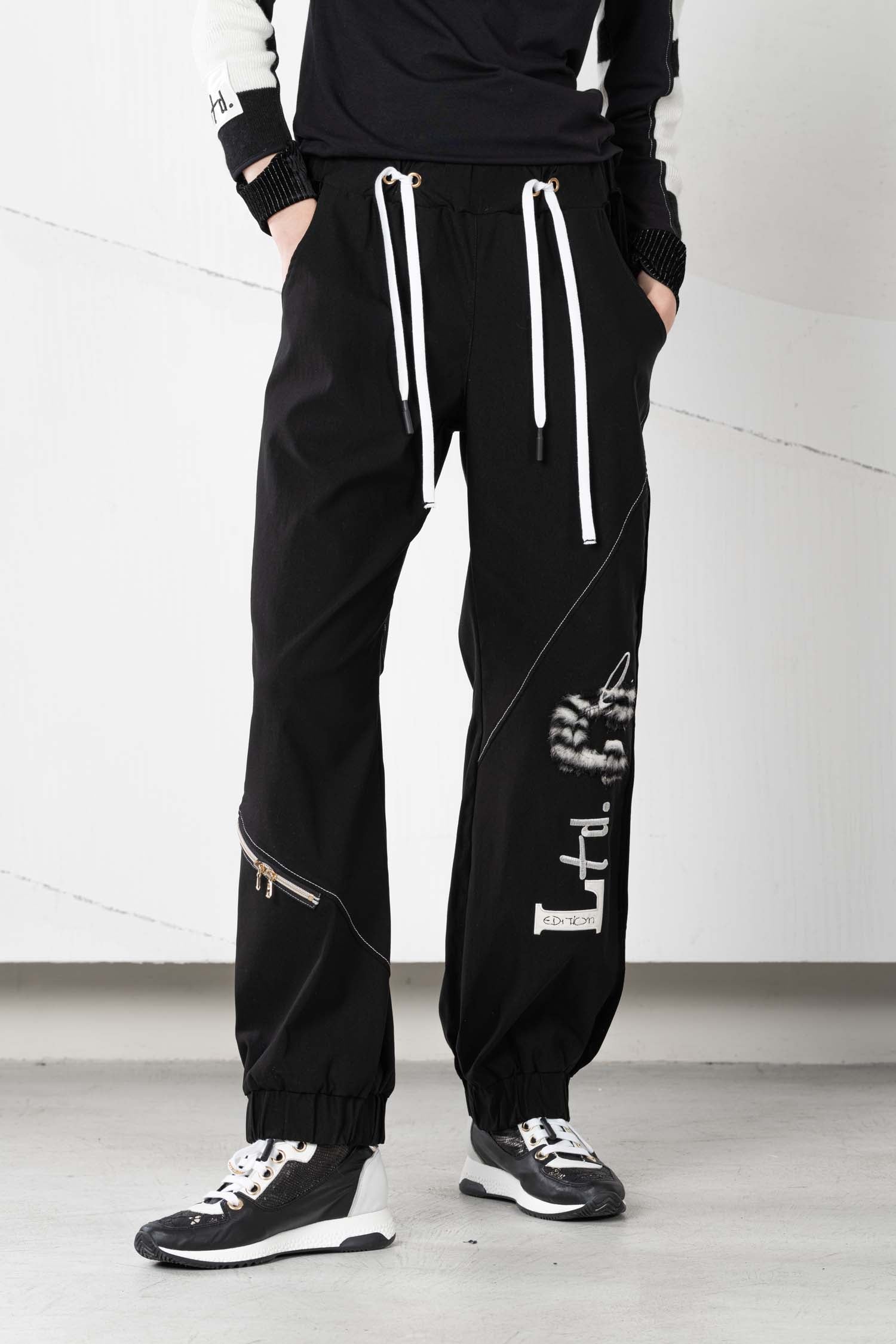 The ELISA CAVALETTI Nero casual trousers are the perfect choice for relaxed leisure activities. In stylish black with white drawstrings, they offer maximum comfort and a casual look. Add that certain something to your leisure outfit!