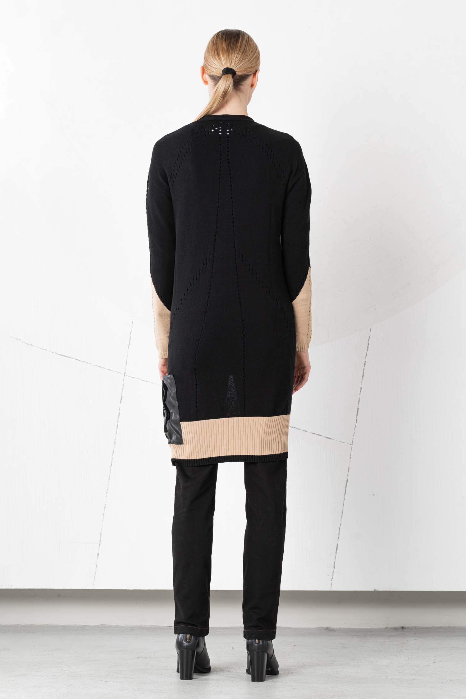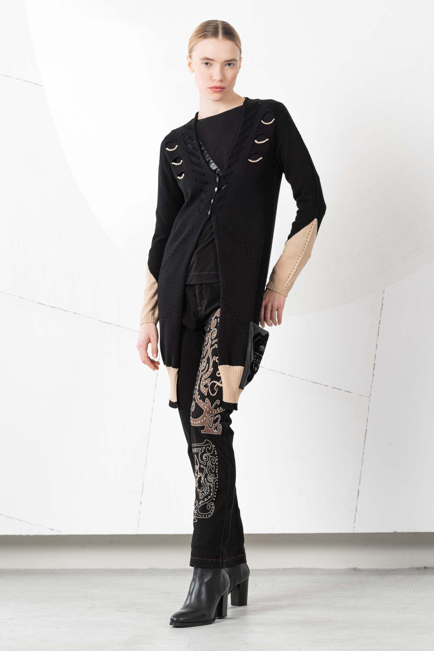 Discover the elegance and versatility of the ELISA CAVALETTI Nero Frizzante cardigan. With its knitted design and long length, it offers not only warm and cozy protection but also a stylish look in black and brown. Perfect for any occasion and every day!