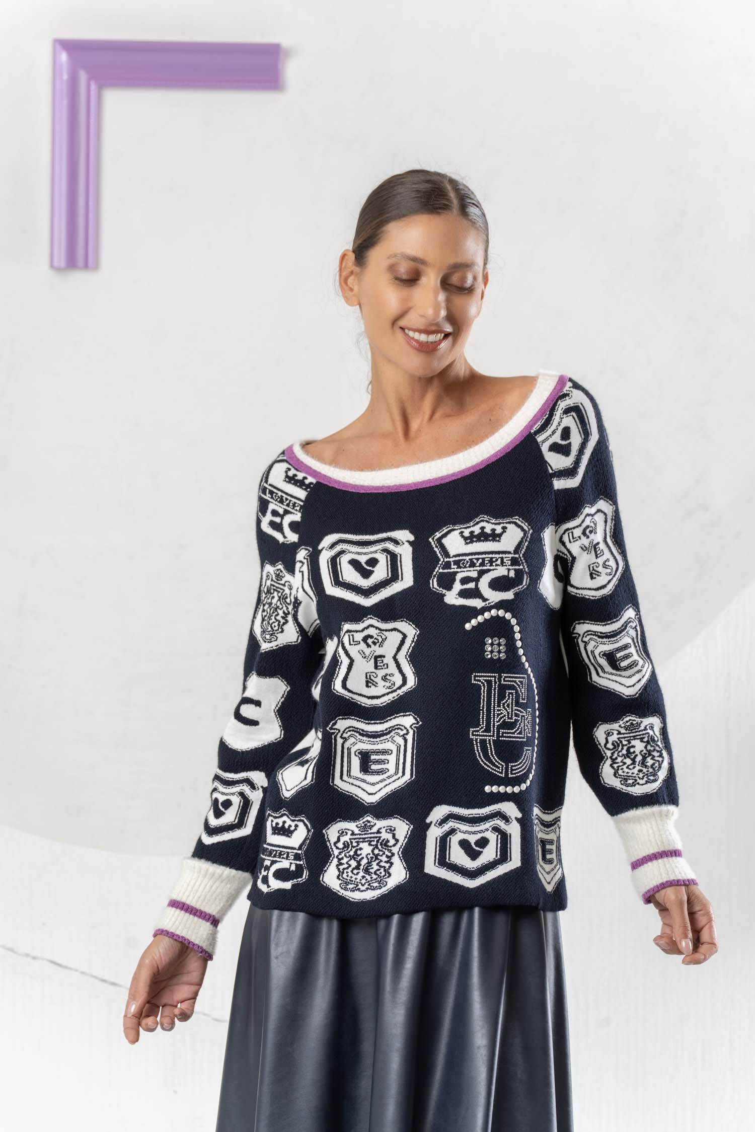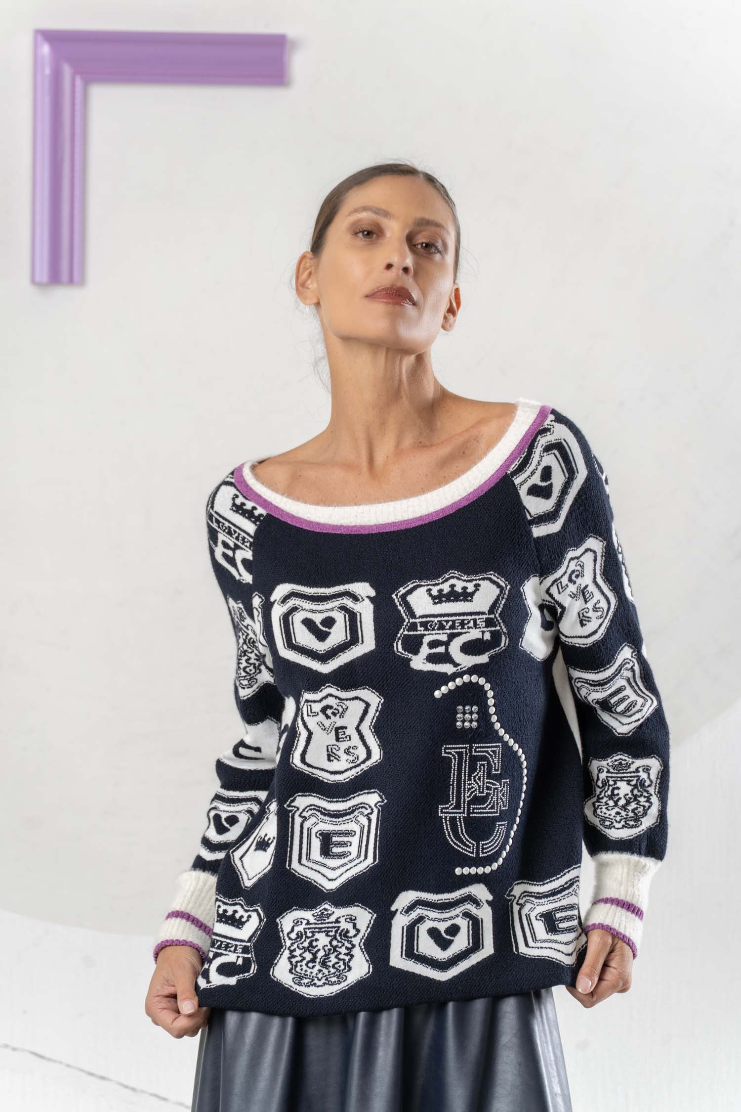 Treat yourself to the cozy ELISA CAVALETTI Donna knit sweater in dark blue with white patterns. Stay warm and stylish while you enjoy your day. Perfect for any occasion, it will make you shine.
